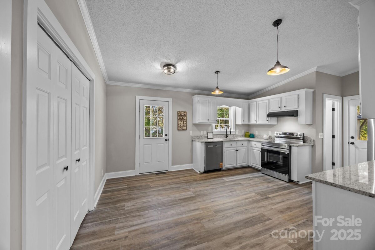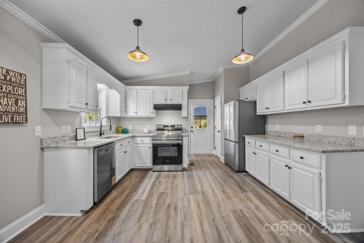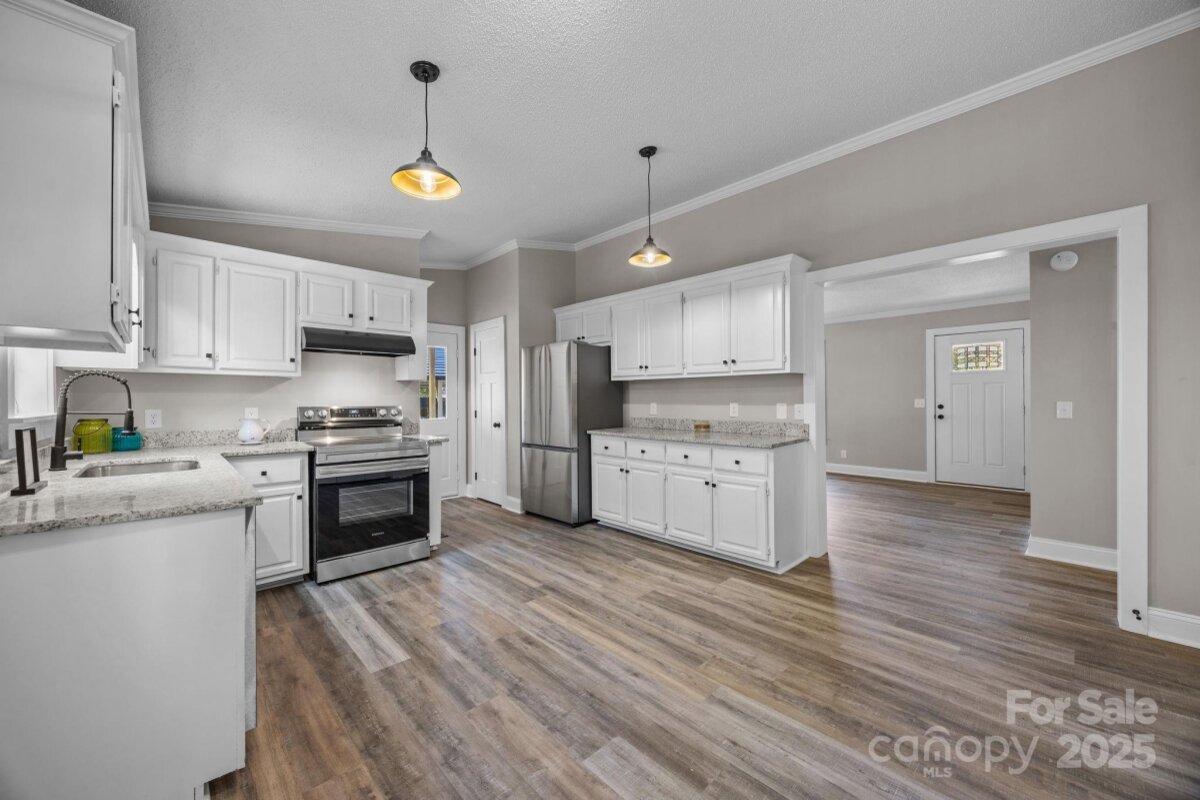 This beautifully renovated home showcases exceptional attention to detail throughout. Step inside to find an inviting floorplan featuring a spacious living room and a large, modern kitchen complete with granite countertops and stainless steel appliances. The home offers three generous bedrooms, including a primary suite with a walk-in shower. Enjoy outdoor living in the fully fenced backyard with a brand-new rear deck and custom aluminum handrails. Additional features include a detached carport and storage building, perfect for extra parking and organization. Recent updates include: new roof, new siding, new oversized guttering, new electrical and plumbing fixtures, new interior and exterior doors, new flooring (carpet and LVP), new appliances, fresh interior and exterior paint, new moisture control system and sump pump in the crawlspace, new front porch columns, and more! This home is truly move-in ready and packed with upgrades—don’t miss your opportunity to make it yours!