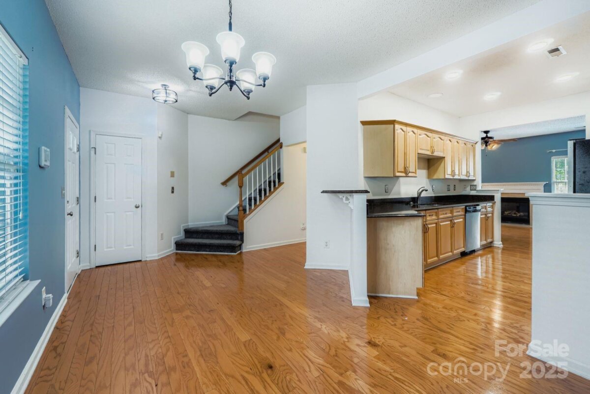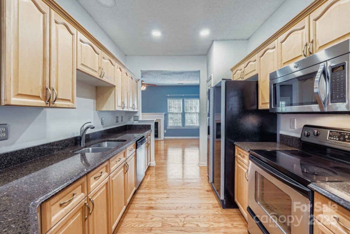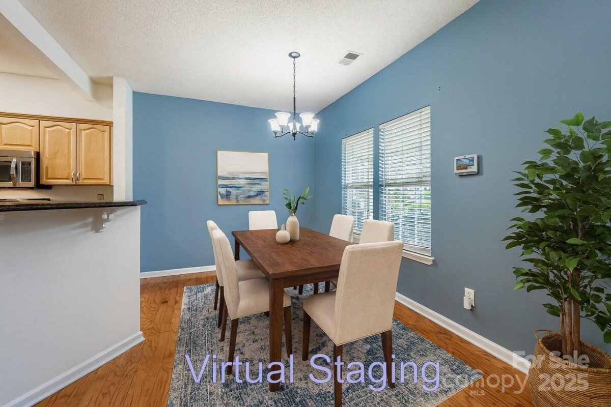 Discover Low-Maintenance Living with Resort-Style Amenities! Enjoy the convenience of a vibrant golf cart community designed for today’s lifestyle. This inviting two-story townhome offers comfort and style throughout. The main level features an informal dining area with wood flooring, a galley-style kitchen equipped with granite countertops, an electric smooth-top range, a refrigerator, a dishwasher, a pantry, a breakfast bar, and ample cabinet space. The great room at the back of the home boasts wood flooring, a cozy gas log fireplace, and windows overlooking the fenced-in backyard and patio. A half bath and laundry area complete the main level. Upstairs, the primary suite includes a tray ceiling, wood flooring, an ensuite bath with a garden tub, dual sinks, and an oversized walk-in closet. The spacious second bedroom features three windows, wood flooring, a ceiling fan, and a double-door closet. A second full bath offers a tub/shower combo for added convenience. Additional highlights include a pull-down attic with storage space, an outdoor storage closet off the patio, an HVAC system replaced in 2020, a Water heater less than 1 year old, carpet and upstairs wood flooring installed in 2020, Driveway parking for one vehicle, and ample street parking in front & back. Residents have access to tennis courts, pickleball courts, and a catch-and-release pond, as well as year-round holiday events. Within the neighborhood, you’ll also find restaurants, preschools, after-school programs, daycare, an animal hospital, and medical providers, making daily life seamless and stress-free. Easy access to major interstates puts Uptown Charlotte just minutes away. This home combines the best of low-maintenance living, modern upgrades, and a connected community—a perfect fit for today’s busy lifestyle.