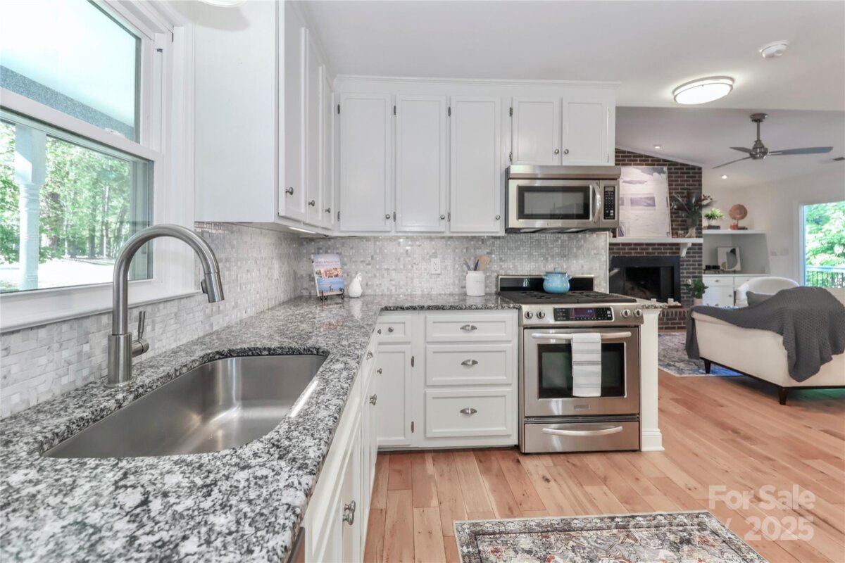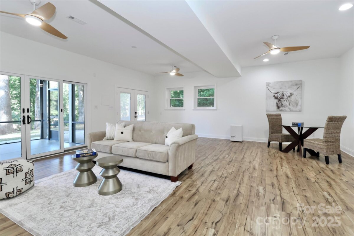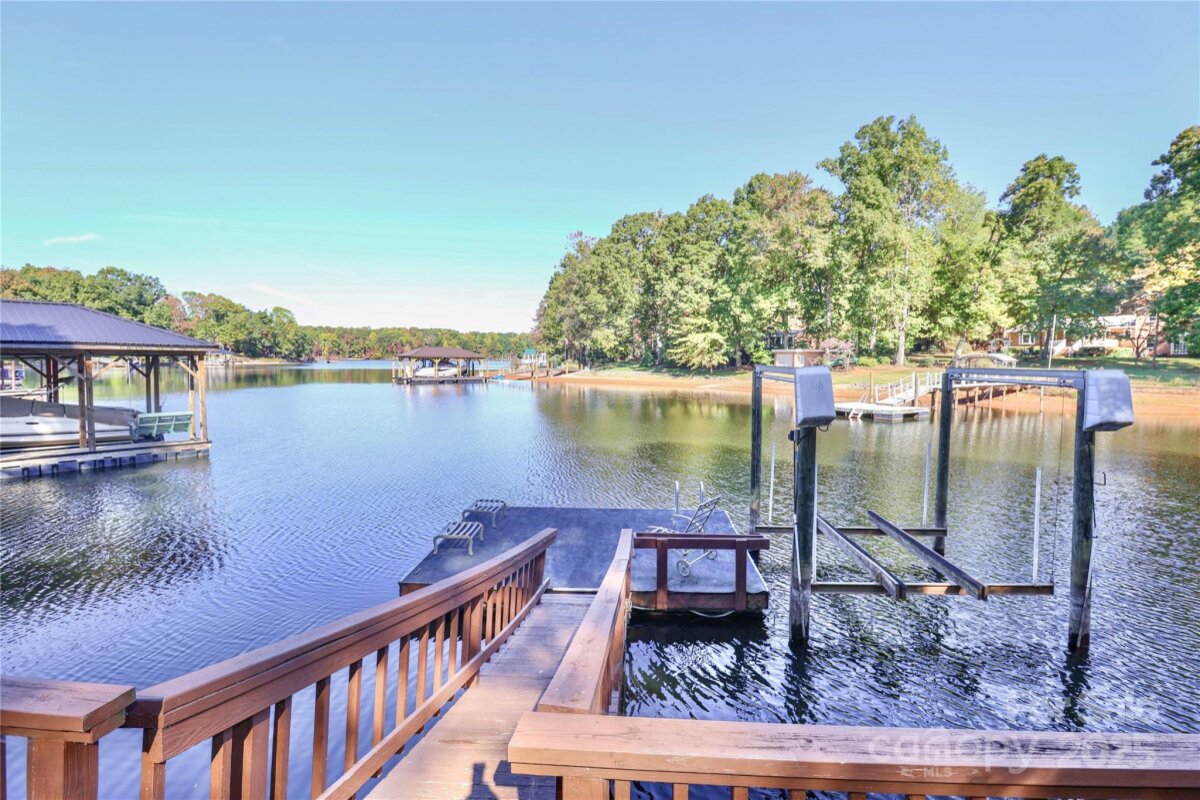 Charming WATERFRONT RANCH WITH FINISHED WALK OUT BASEMENT on beautiful Lake Norman! Enjoy peaceful lake views and relaxed living with NO HOA. The inviting wraparound porch transitions to a large back deck—perfect for entertaining or unwinding after a day on the water. Inside, the home features a bright kitchen with gas stove, cozy great room with gas fireplace and built-in, and a very spacious laundry room with cabinetry and mud sink. The finished basement adds incredible flexibility as a second living quarters with its own kitchen, washer/dryer, wood-burning fireplace, generous recreational space & flex room/office that can also function as 4th bedroom. With both interior and exterior entry, the basement makes for an ideal in-law suite, guest quarters, or vacation rental. Step out to the 12x24 screened porch, two patios, and hot tub overlooking the wooded yard and private dock with lift. Quiet cove just off main channel of the lake. Other highlights include two driveways, RV parking, a DETACHED 2 CAR GARAGE with epoxy flooring and openers, plus a storage shed for lawn equipment or lake toys. Major updates provide peace of mind - NEW ROOF & GUTTERS (2024), NEW basement HVAC (2022), NEW SEPTIC TANK (2022), UPDATED DOCK ELECTRIAL (2022), & a CONCRETE DRIVE ADDED in front of 2 car garage. Transferable termite bond in place. MOVE IN READY! Being sold as-is. This Lake Norman gem offers comfort, versatility, and true waterfront living—don’t miss your chance to make it yours!