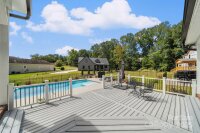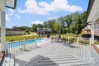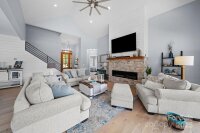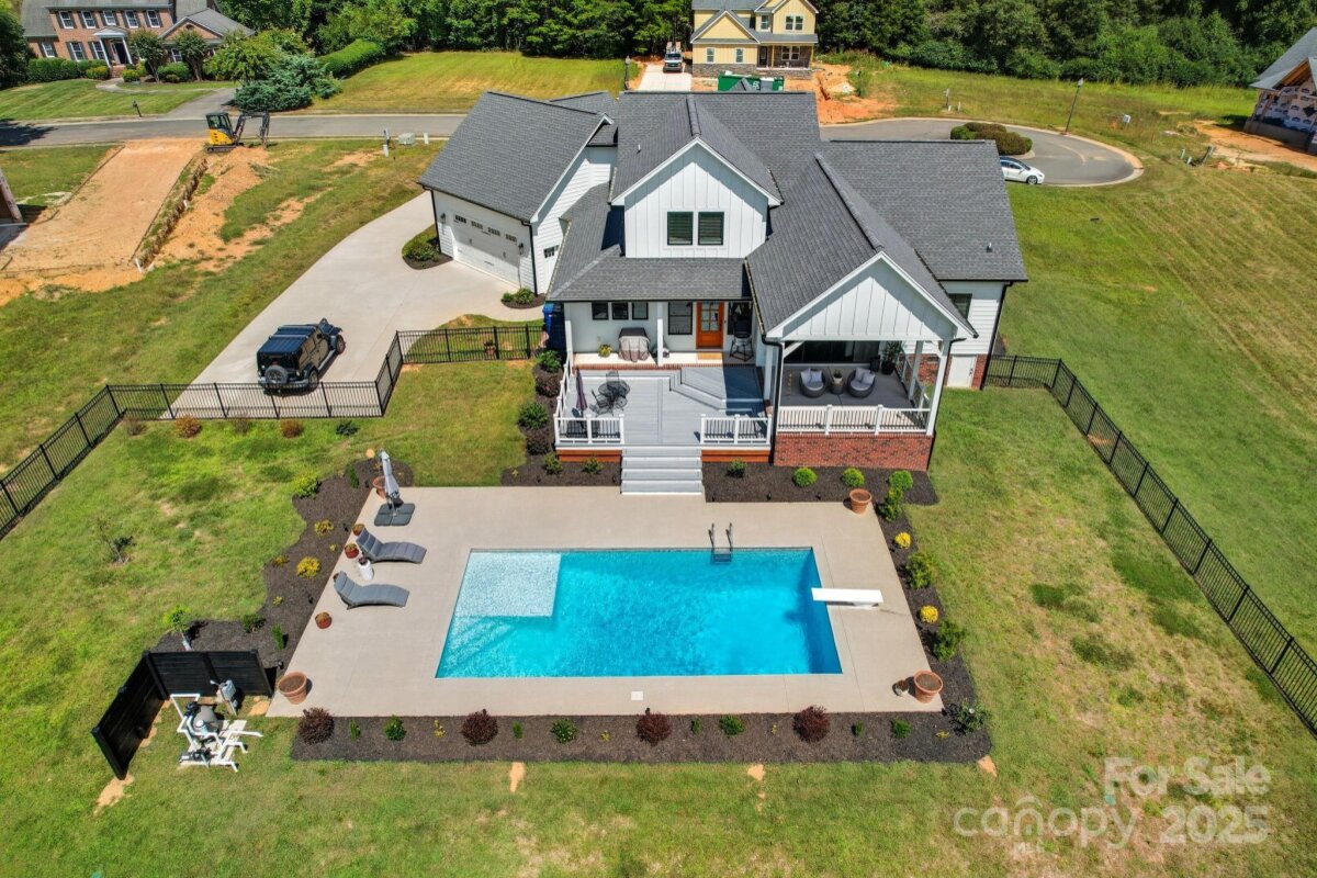 Just Like New! This stunning home, only a couple of years old, offers a spacious open floor plan designed for modern living and entertaining. Featuring 3 bedrooms, 2.5 baths, and an oversized bonus room, every detail has been carefully chosen with comfort and quality in mind. Step inside to find white oak hardwood floors, custom cabinetry with quartz countertops, and a 9x5 kitchen island perfect for gatherings. The living room showcases a 5’ linear gas fireplace with river rock and a mahogany mantle, surrounded by abundant natural light that fills the home from morning to evening. The home is built to last with 2x6 walls, Marvin windows, and excellent insulation, plus gas HVAC and a tankless water heater for efficiency. The oversized 26x26 garage, 4’ sidewalks, and mahogany front and back doors add both function and curb appeal. Outdoor living is at its best here! Enjoy the huge covered back porch, Trex decking with lighted rails, and a beautiful concrete swimming pool with tanning ledge, rock salt deck, and irrigation system. Additional highlights include: White Shaw carpet with upgraded stainmaster padding in select areas Custom finishes throughout This home truly combines elegance, efficiency, and lifestyle—all in one.