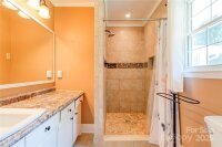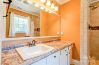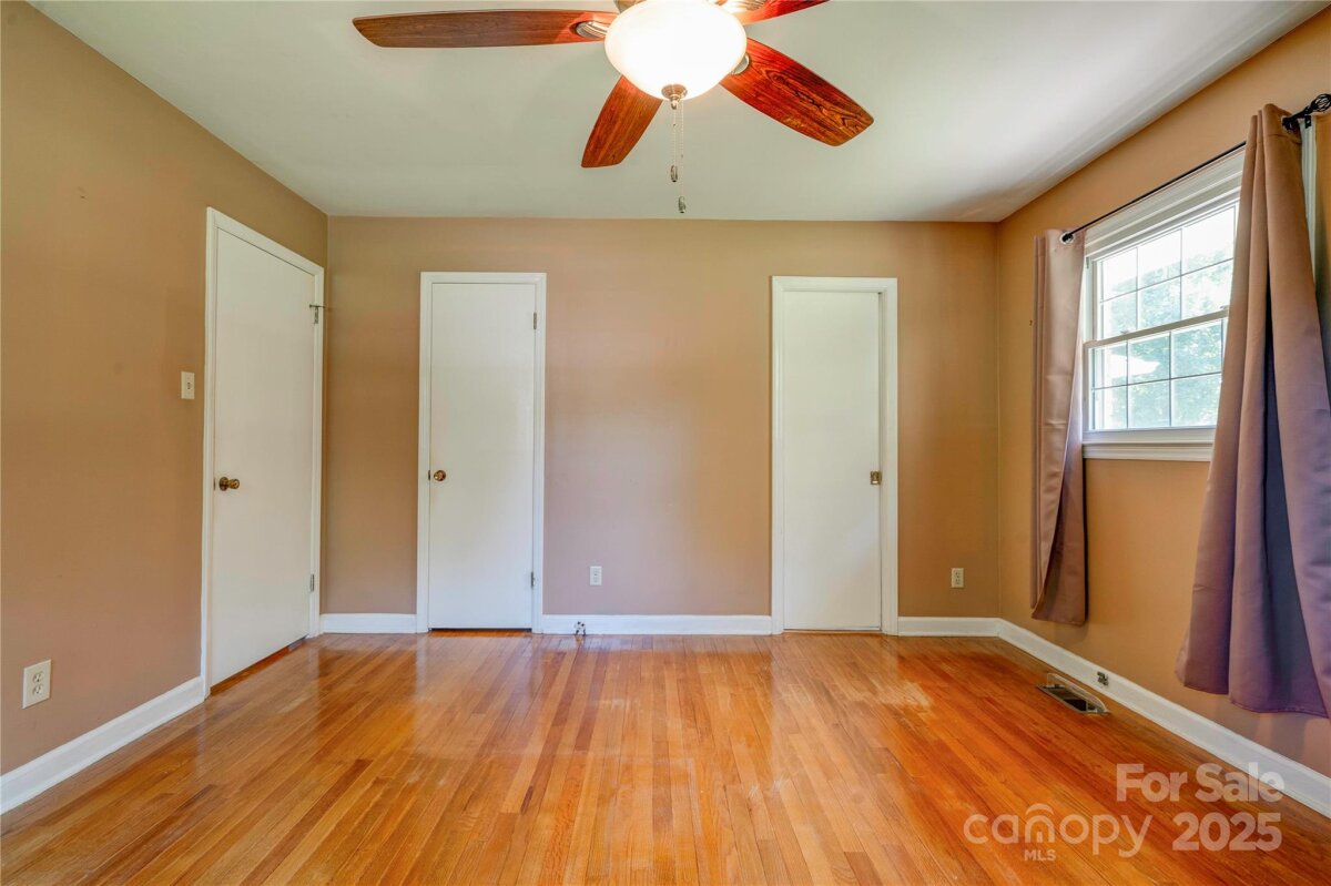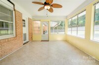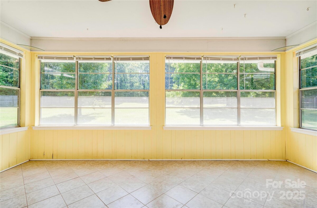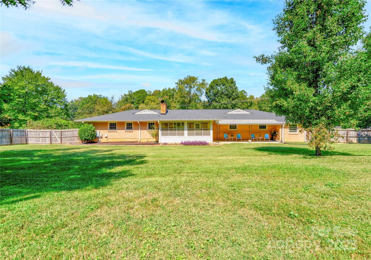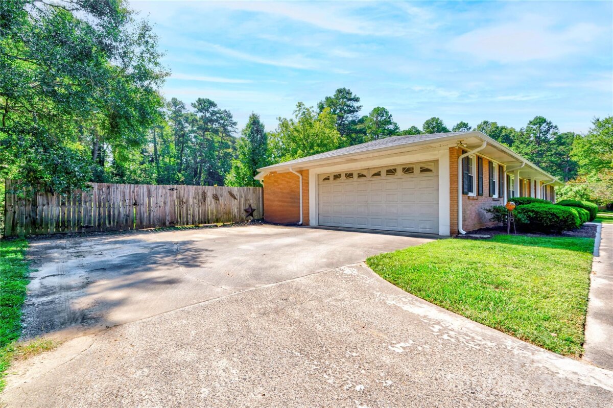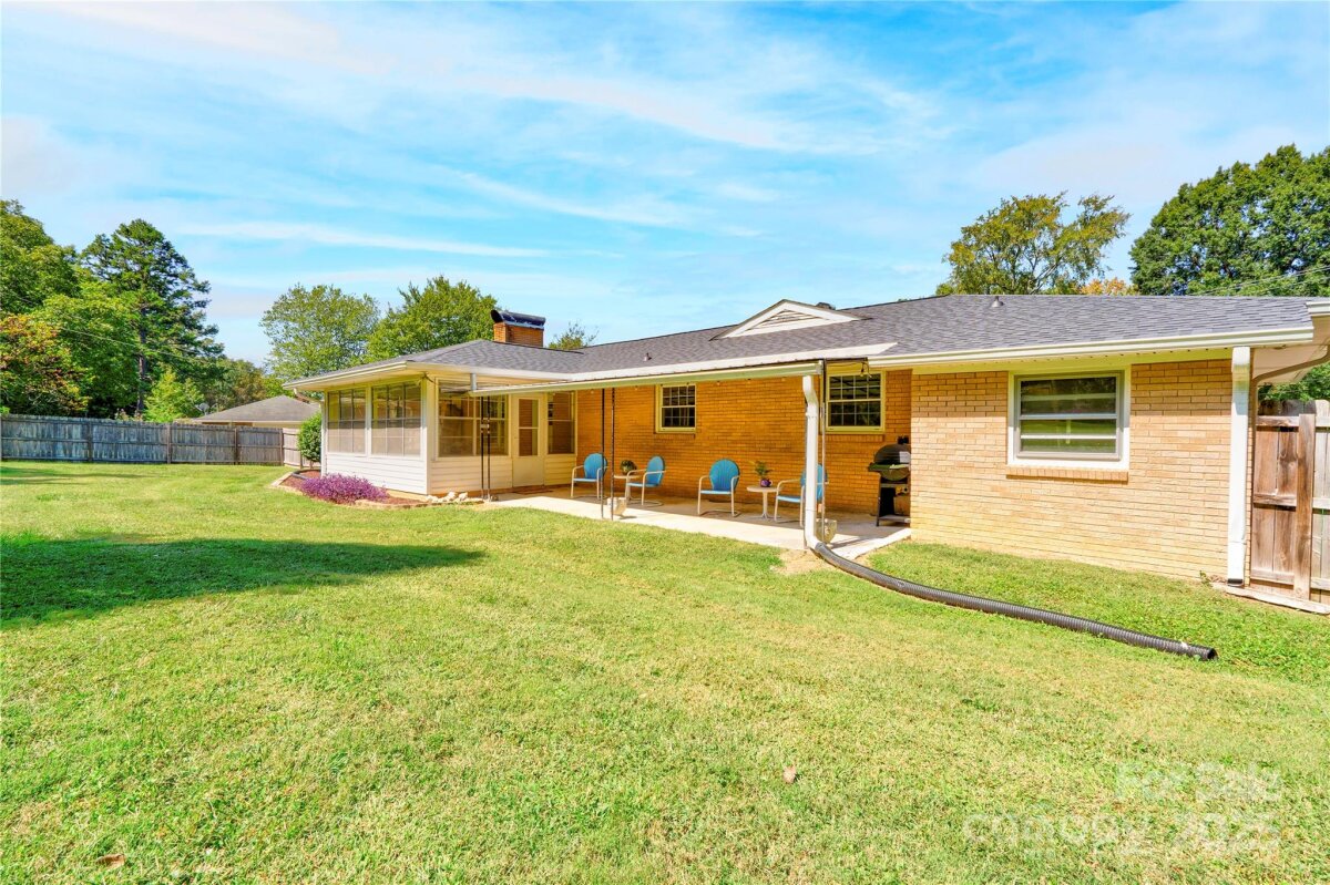 Classic brick ranch with 3 bedrooms and 2 bathrooms on 1.30 acres in Coulwood – no HOA! This established neighborhood with mature trees offers a peaceful, rural feel while being just minutes from shopping, dining, Uptown Charlotte, and Charlotte Douglas International Airport. Although there is no HOA, residents enjoy optional pool memberships, clubhouse rentals, and nearby parks and playgrounds. Inside, the foyer opens to the formal living and dining rooms with original hardwood floors and abundant natural light. The kitchen features original cabinets, granite countertops, a tile backsplash, and breakfast bar. The spacious laundry room off the kitchen provides extra cabinet storage and room for additional shelving. All kitchen appliances plus washer and dryer convey. The cozy den with wood-burning fireplace and built-ins opens to a sunroom (not heated) and covered patio, both overlooking the expansive fenced backyard. The kitchen, laundry, den, and sunroom feature tile flooring for extra durability, and the hardwood flooring continues down the hall and through the bedrooms – no carpet! The primary suite includes both a walk-in and large reach-in closet plus an en-suite bathroom with tiled shower. The second bathroom offers a tub/shower combo with tiled shower walls. Both bathrooms feature original cabinets with updated countertops and sinks, tile floors, and windows. Additional highlights include plentiful storage throughout, aluminum pull-down stairs to access the attic, 2-car side-entry garage with storage room, and storage shed in the backyard. This property is well-maintained with valuable updates: roof (2024), metal roof at back patio (2021), gutters (2020), HVAC (2021), water heater (2017), and garage door opener (2025). For added peace of mind, seller is including a one-year home warranty. If you are looking for space, character, and privacy in a convenient location, this is the one!