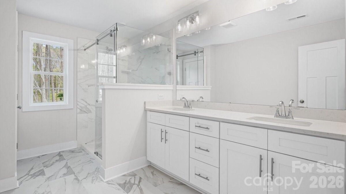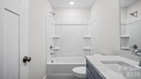 Welcome to this brand new custom home nestled perfectly in a quiet neighborhood just minutes from historic downtown Waxhaw. Enjoy the beautiful community park, coffee shops, boutiques, and local pubs just a quick stroll away from home. The main level is an open floor plan with 9 ft ceilings, beautiful wide hardwoods throughout including the staircase, and upper-level hallways. The kitchen is thoughtfully designed featuring a huge island, SS farm sink, Quartz counter-tops, large pantry with solid shelving, a double oven, 42" wall cabinets, soft-close doors + drawers, along with under-cabinet LED lighting. You'll also find a mudroom with a built-in drop-zone with a bench and cubbies, a well-placed half bath, and laundry room with additional storage. Sliding doors off of the dining area leading to the back deck and back yard for family fun or relaxation. Upstairs, you'll find a massive primary suite with walk-in closet and en-suite bathroom. Primary bathroom features tall double vanities and designer tile & frameless walk-in shower. The secondary bedrooms are generously sized, and closets all have solid shelving. All bedrooms are pre-wired for ceiling fans. Fully finished and painted, attached 2-car garage and expansive driveway with lots of room for parking. Covered front porch. Don't miss your chance to enjoy all that Waxhaw has to offer with the ease of owning a brand new, fully warranted home with no HOA! Lawn recently seeded, photos have been digitally enhanced to represent the yard at fully established growth.