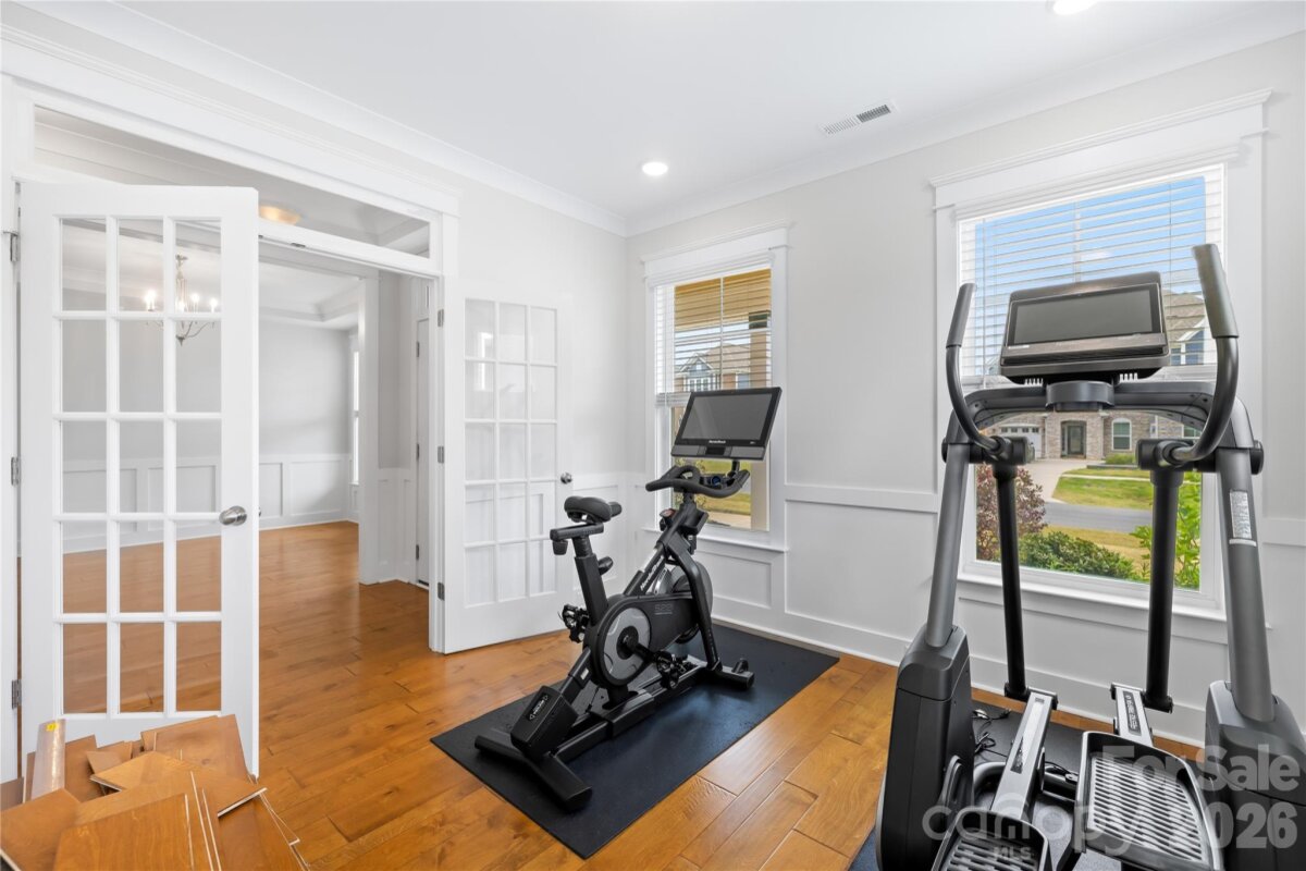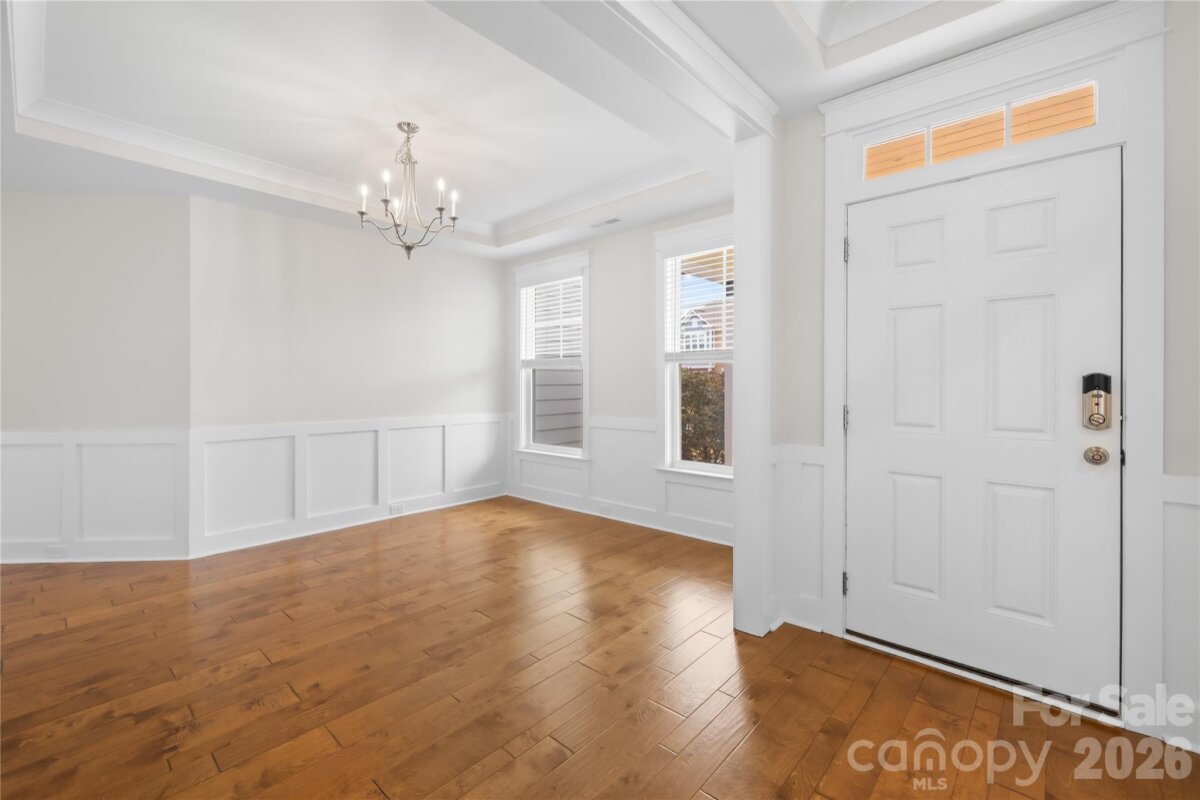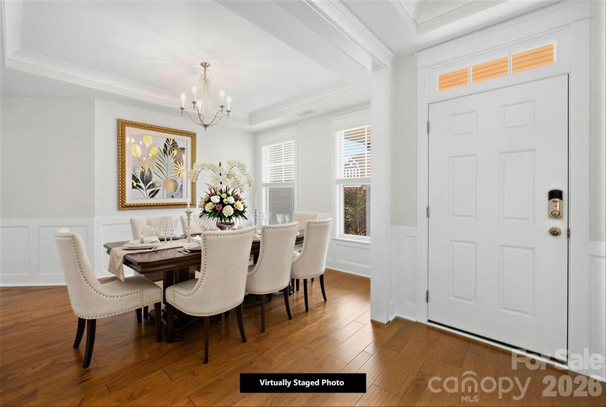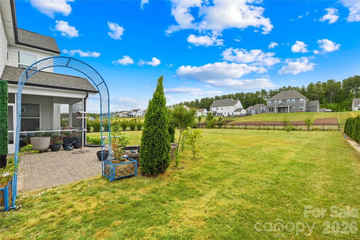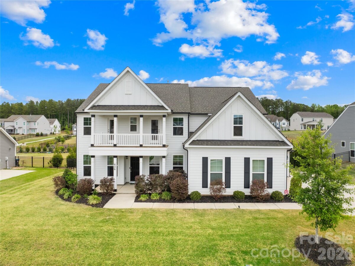 Move-in ready and like new 2022-built beloved Charleston floor plan with engineered hardwood flooring sits on a half-acre flat, fully fenced lot with privacy hedge in Waxhaw. Located in the premier Wrenn Creek community of Waxhaw, this 3,776-square-foot of open, luxury living — five bedrooms, four full baths residence offers a home without a single inch of carpet. Instead, every room is finished with premium Palmetto Road Lake Ridge Sutton engineered hardwoods that are artisan hand-scraped planks in varying widths that flow seamlessly through every room sealed with eight coats of Valspar Ultra-Transparent Aluminum Oxide, offering a warm, elegant satin sheen that is as durable as it is beautiful. The main level is designed for both everyday life and effortless entertaining. A private study with French doors creates a quiet and productive retreat, while the guest suite with a full bath ensures visitors feel right at home. The heart of the house is a beautiful open floor plan with a huge quartz countertop island that seamlessly leads into a gourmet kitchen equipped with white cabinets, quartz countertops, tile backsplash, farmhouse sink, pot filler, gas cooktop, wall oven, stainless steel appliances and a butlers pantry. Upstairs, the primary suite offers a sprawling private wing with a true spa bath and generous walk-in closets. The laundry room is located directly adjacent to the primary suite, turning a daily chore into a seamless, effortless convenience. Three additional bedrooms, a large bonus room ready to become your dedicated cinema or crafts room. This home lives outdoors on both levels with a private upper front porch accessible directly from two secondary bedrooms—a perfect spot for morning coffee or evening breezes giving the home its own signature architectural moment. Step outside into your 0.47-acre private sanctuary. A screened porch leads to an extended patio and a built-in fire pit with stone seating—three distinct outdoor living zones on a flat, fully fenced and landscaped with a dense and more than 120ft long hedge of Emerald Green arborvitae that creates a lush, year-round privacy screen giving the backyard the feel of a private retreat. A side-entry two-car garage plus an additional garage, community pool, cabana, playground, and walking trails complete the picture. Wesley Chapel shopping (Target, Harris Teeter, restaurants, etc.) is five minutes away; downtown Waxhaw is under ten. Skip the construction delays and the "new build" dust. No projects. The only thing missing is your furniture.