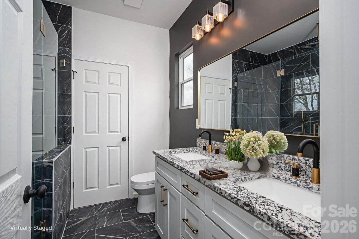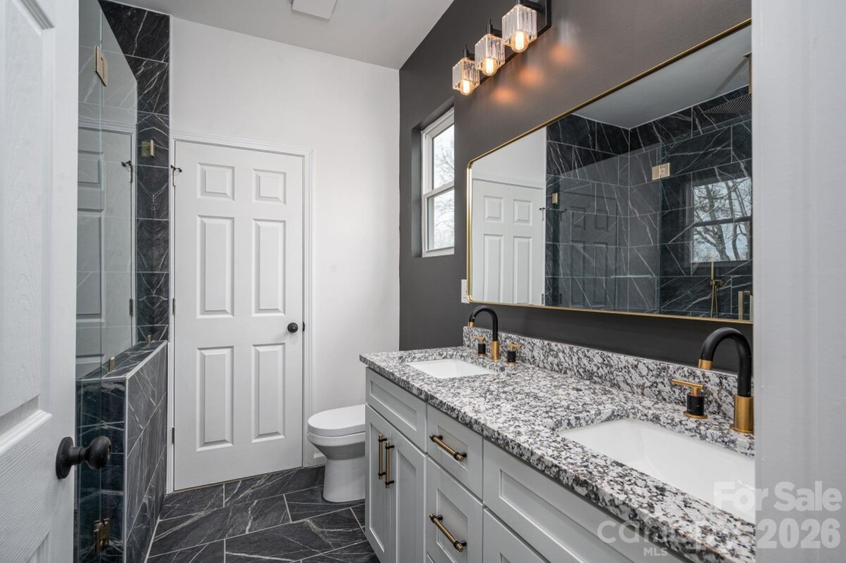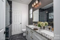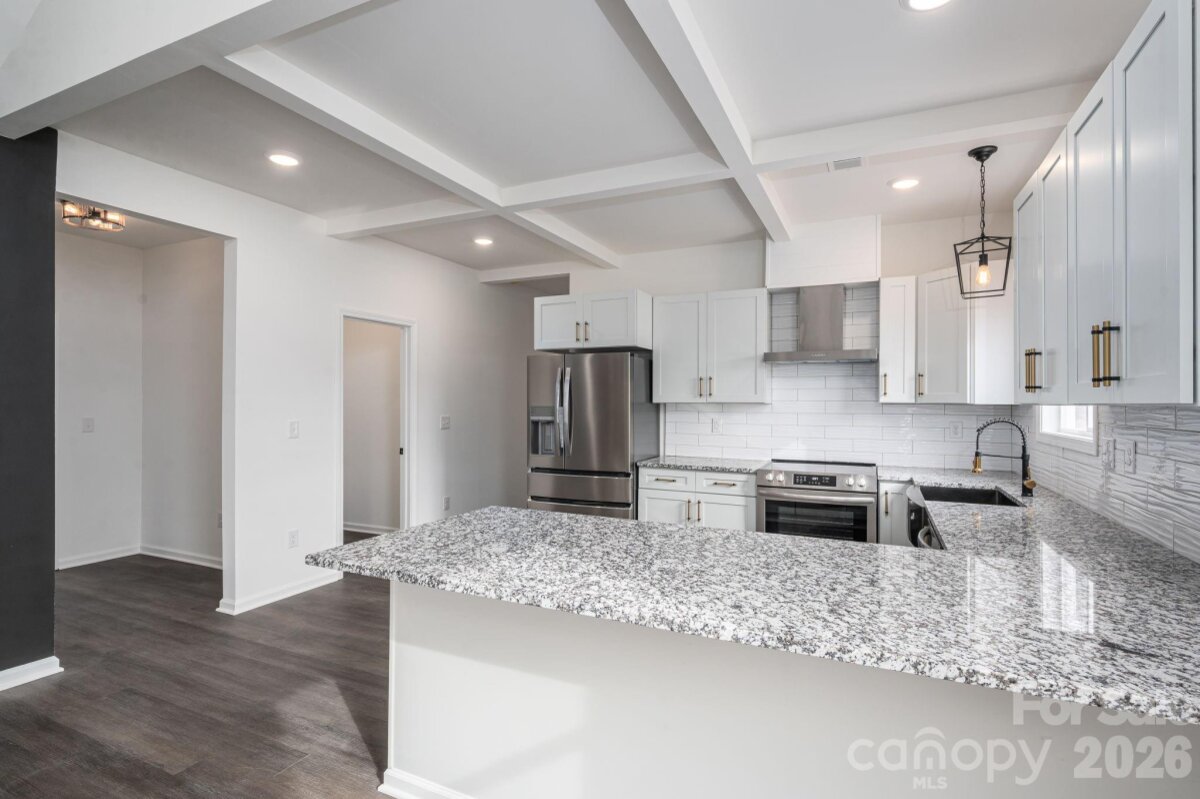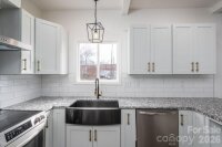 Thoughtfully designed 3-bedroom, 2-bath new construction located just outside downtown Cherryville, NC, offering the convenience of local shops, dining, and everyday amenities while still enjoying a spacious .44-acre lot with a 1-car garage. A covered front porch opens into a bright living area featuring vaulted ceilings, abundant natural light, and durable LVP flooring that flows seamlessly into the kitchen. The kitchen is both functional and stylish with stainless steel appliances, granite countertops, a peninsula with bar seating, vent hood, and a walk-in pantry. The primary suite provides a comfortable retreat with a tray ceiling, accent wall, and walk-in closet. The ensuite bath is finished with tile floors, dual granite vanities, and an oversized tiled shower with large rain head. Two additional bedrooms are generously sized and share a well-appointed hall bath with tile surround and granite counter vanity. Additional highlights include a covered back patio, dedicated laundry room, and a no-carpet design with LVP and tile throughout. The 1-car garage features an epoxy floor, and the spacious yard offers room to relax or entertain. Built with attention to detail and quality construction, this home includes a 10-year structural warranty. Enjoy quality new construction paired with the charm and convenience of the locality of downtown living.