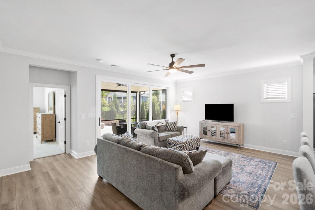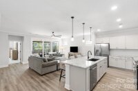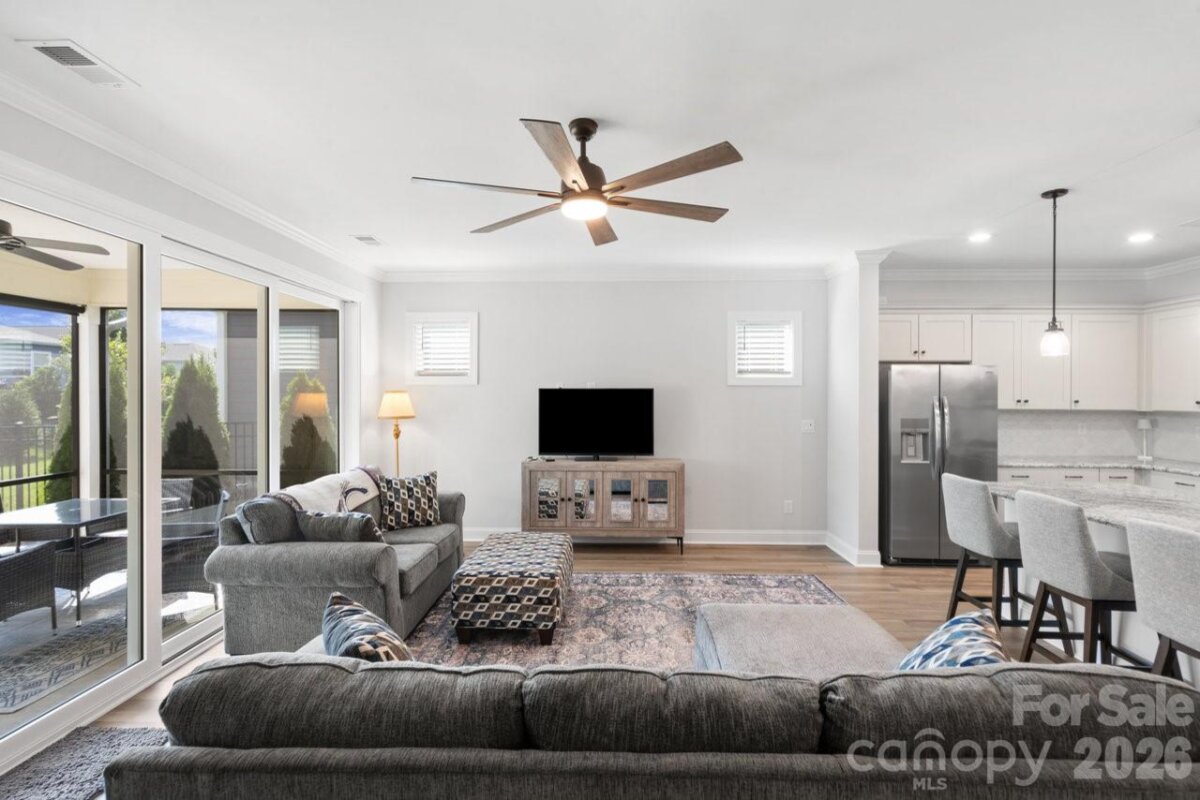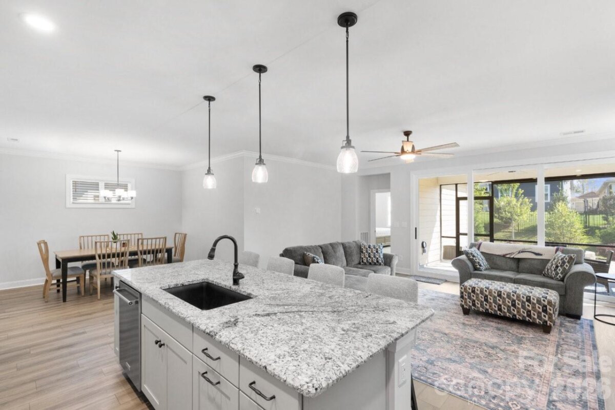 Move right into this 3 BR, 3 Bath barely lived in Glory with Loft at Trilogy Lake Norman. Welcome home to this open concept plan w/lots of natural lighting and neutral colors throughout. Main level boasts a modern generously sized kitchen featuring light craftsman style cabinetry with soft close drawers, refrigerator, SS KitchenAid appliances, granite countertops, huge island connecting to the great room. Dining area features a sliding wall of glass that leads you out to the screened lanai and extended patio highlighted with a firepit for additional entertaining options. Primary Bedroom w/ensuite dual sink bath has walk in tile shower and closet. Additional guest bedroom and full bath on the main level. Upstairs you will find the light filled loft with a full bathroom, guest bedroom and amazing storage and wash sink. 2 car Garage with additional storage area. Laundry room includes a sink, washing machine and dryer plus additional shelving. A rear fenced yard completes the home. Trilogy Membership includes Freedom Boat Club on Lake Norman plus award winning amenities.