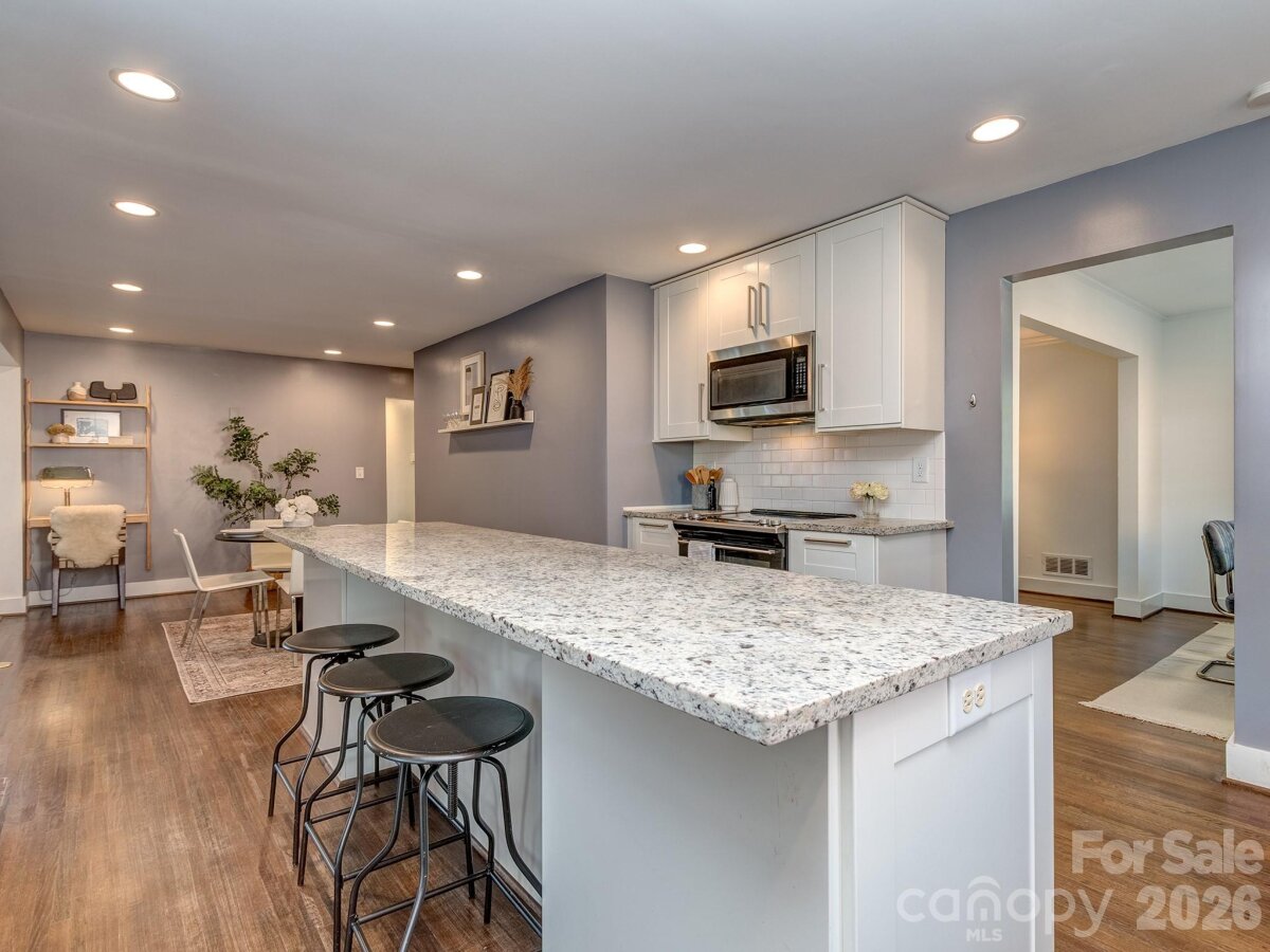 Fully updated full brick ranch in the heart of Madison Park, one of Charlotte’s most convenient and sought-after locations! This move-in ready home offers an ideal blend of charm and modern updates, just minutes from Park Road Shopping Center, SouthPark, Uptown Charlotte, the light rail, Park Road Park, and the Little Sugar Creek Greenway, with easy access to the airport and major roadways. Inside, you’ll find original hardwood flooring throughout and a bright, open floor plan designed for both everyday living and entertaining. The updated kitchen features an oversized island, granite countertops, subway tile backsplash, and stainless steel appliances—including the refrigerator—flowing seamlessly into the main living areas. The home offers two separate living spaces, each with its own wood-burning fireplace, providing flexibility for a den, family room, or home office. The spacious primary suite includes an updated en-suite bathroom with a tile surround shower, frameless glass enclosure, and a custom walk-in closet. Additional features include plantation shutters, updated double-pane windows, and washer and dryer that convey. Step outside to enjoy a huge, private fenced backyard—perfect for relaxing, entertaining, or pets—along with a one-car detached garage. This is a rare opportunity to own a fully updated home in a prime South Charlotte location with close proximity to shopping, dining, parks, and greenway access. Property is deeded as Green Acres but commonly know as Madison Park.