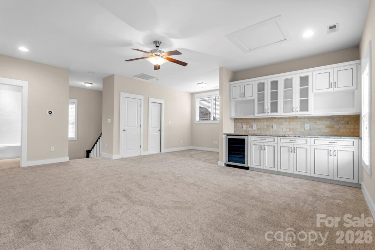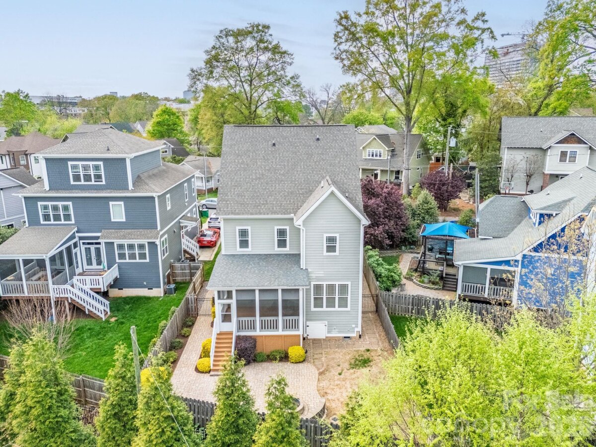 Welcome to this beautifully designed 4-bedroom, 4-bath home in the highly sought-after Historic Cherry neighborhood, just minutes from Uptown. Built in 2015, this home offers a spacious and versatile layout blending modern convenience with comfortable living in an unbeatable location. The open floorplan features a stunning kitchen overlooking the family room with a cozy gas fireplace which is perfect for entertaining. The kitchen is equipped with granite countertops, stainless steel appliances, a gas range, and a walk-in pantry with a dry bar beverage/coffee station that conveniently connects to the formal dining room. A bright breakfast area flows seamlessly onto the screened porch, where you can relax while overlooking the peaceful backyard complete with a paver patio and built-in firepit. A guest bedroom with a full bath is located on the main level, offering flexibility as a private home office or guest space. Upstairs, the spacious primary suite boasts an ensuite bathroom with dual vanities, a garden tub, and a separate walk-in shower, along with a massive custom walk-in closet featuring built-in shelving and drawers. Two additional bedrooms and another full bath complete the second level. The third floor offers an oversized recreation or media room with a beverage fridge, custom cabinetry, and a full bathroom. This room is multi-functional as a movie room, game space, or additional guest suite. Additionally, there is convenient walk-in storage on this level. Located within walking distance to shopping, dining, greenways, parks and major conveniences including Trader Joe’s, Target, Atrium and Novant Hospitals, this home offers both charm and accessibility in one of the city’s most desirable neighborhoods. Don’t miss this exceptional opportunity to live close to it all while enjoying the comfort of a thoughtfully designed home!
