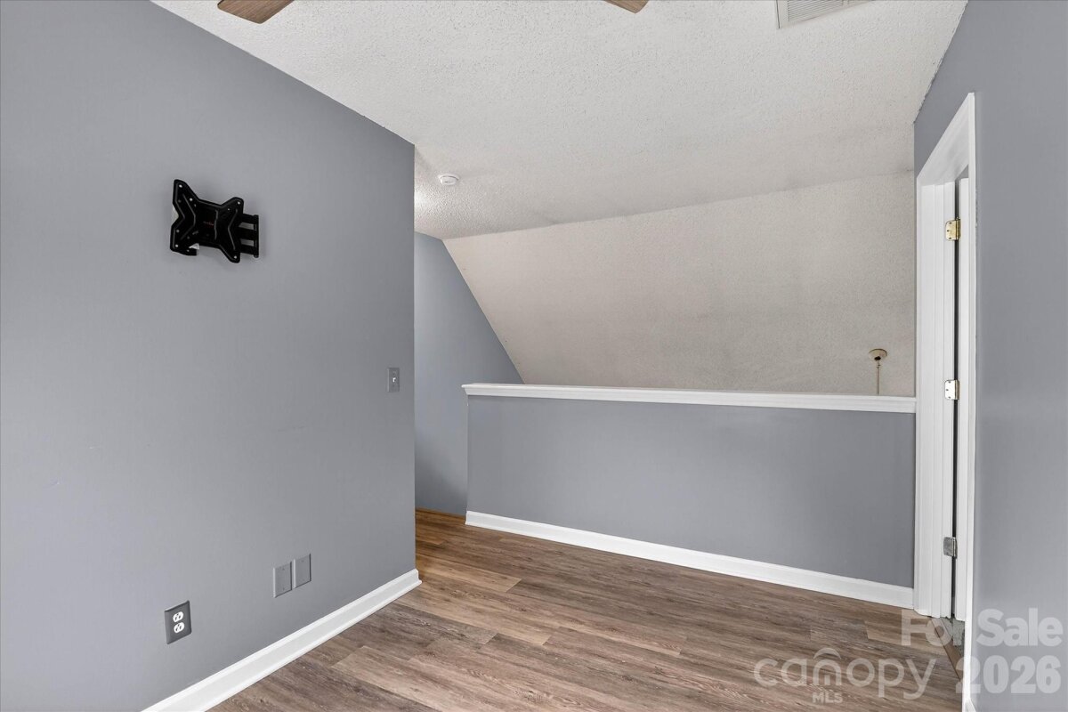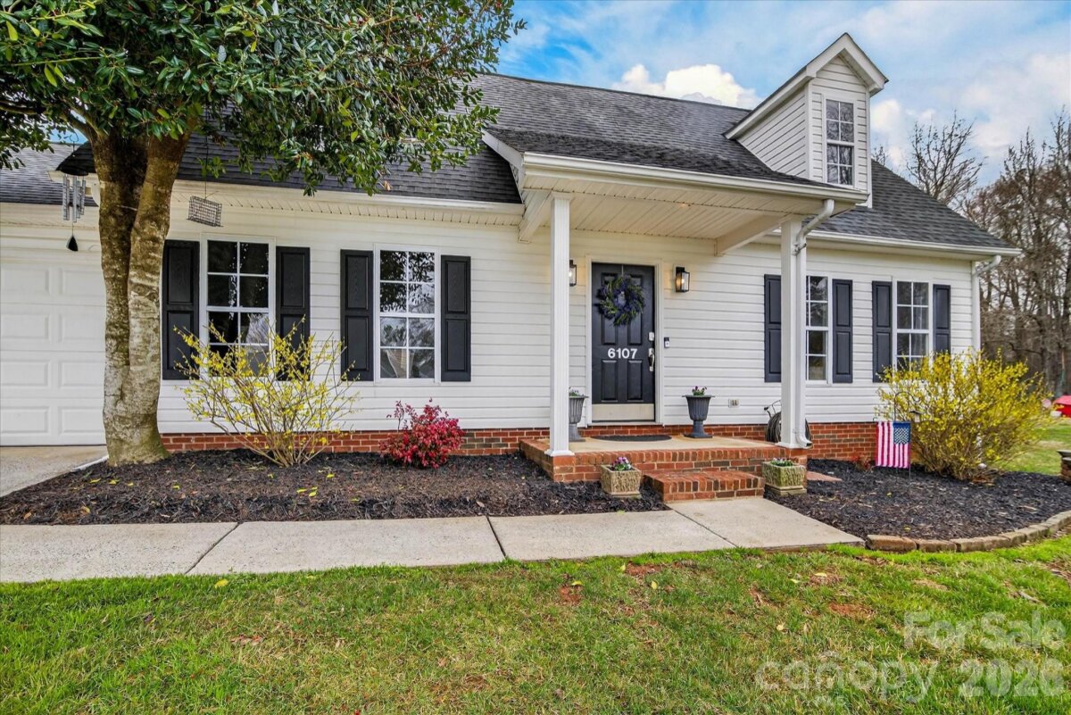 Welcome home to this charming cape-cod style home nestled in Matthews, NC! This beautiful home features an excellent floor plan with 1600+ square feet of living space with the primary suite on the main floor, huge great room with vaulted ceiling and a cozy gas fireplace, and 2 spacious bedrooms plus a versatile loft upstairs ideal for an office or a playroom. Recent updates include luxury laminate flooring throughout the main floor and the loft upstairs, carpet in the secondary rooms, plumbing fixtures and toilets, modern lighting inside and out, fresh paint, and new back doors. Enjoy outdoor living in the large, flat, fenced backyard with plenty of space to play, garden, or entertain plus a storage shed for added convenience. Garage is finished and walls have been insulated, the ceiling has been finished with stained bead board, and myQ remote access added with a quiet garage door lift system. Located in Union County, and minutes away from I-485, shopping and restaurants.