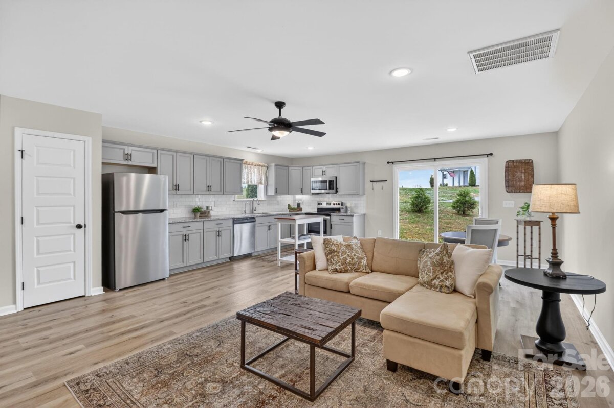 Welcome Home! This home has 3 Bedrooms and 2 bathrooms(home has a 2 Bedroom Septic permit per Union County = 4 occupants) Move in ready, newer home, with over 1.5 acres, no HOA. The covered front porch greets you! The front door with window, privacy surrounds you, with wooded views, tucked off the main road. Main living area is a huge great room, an open concept living space with a large kitchen and living area, flooded in light from the sliding glass doors. Plenty of cabinet space, room to add an island, or a large dining room. Kitchen features granite countertops, s/s appliances, water filter at sink. Main level primary suite with large walk in closet, another walk in utility area also used as additional storage/closet, with a full bathroom attached with a linen closet. Upstairs you will find 2 more large bedrooms/ office / den with walk in closets, ceiling fans, and wonderful views of the surrounding countryside. Outdoor entertaining is easy with large patio right off the living area and an added deck area. 2 car parking spaces, lovely landscaping, perfect peaceful setting surrounded by nature. There is a shared well agreement (FHA/Lender Compliant), shared driveway. Main level laundry with additional storage, just off main living area! Entire home has Vinyl plank flooring for easy living, stairs are hardwood as well! Water filter system at kitchen sink. Perfect Country setting, but a New Construction feel! Welcome Home!