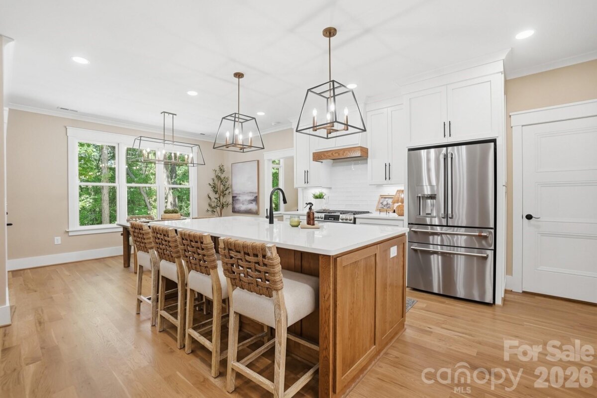 Welcome to 6109 Charity Drive in Marshville, NC—an exceptional custom home tucked away at the end of a quiet cul-de-sac in the highly sought-after New Salem/Piedmont school district. Situated on over an acre, this beautiful property offers the privacy you’ve been looking for, with a wooded backdrop where no one can build directly behind you. From the moment you arrive, the inviting front porch sets the tone for the warmth and charm found throughout the home. With 3,383 heated square feet, this thoughtfully designed home features an open floor plan perfect for both everyday living and entertaining. The stunning designer kitchen is the heart of the home, complete with a gas cooktop, oversized island, quartz countertops, and a stylish backsplash. One standout feature you’ll absolutely love is the incredible walk-in pantry—featuring cabinetry, quartz surfaces, a sink, and even a wine cooler—offering both beauty and functionality. The spacious family room boasts soaring 12-foot ceilings and an electric fireplace, creating a bright and inviting gathering space. Just off the main living area, you’ll find a large dining room and breakfast area, providing plenty of room for hosting family and friends. The primary suite is a true retreat with vaulted ceilings, a luxurious bath, and a generous walk-in closet. This home also offers 4 bedrooms, 4.5 baths, a dedicated office with a closet, and a huge bonus room—giving you the flexibility for work, play, and guests. Step outside to the screened-in back porch featuring a cozy wood-burning fireplace—perfect for relaxing evenings year-round. The outdoor space is just as impressive with added concrete for extra parking and a walkway leading to the back porch. Additional upgrades include a sealed crawlspace, spray foam insulation, tankless water heater, side-entry garage, designer lighting, and beautifully curated landscaping. Located in a small community with no HOA, this home offers the perfect blend of luxury, privacy, and freedom. This is a rare find—schedule your private showing today! The builder has added additional concrete parking and has a great area to add an additional detached garage. Plus he has a pool company come out and share where a pool could be placed.
