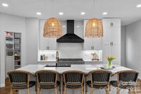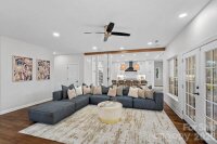 Move-in ready and extensively updated in Stonegate, this Waxhaw home pairs high-end finishes with a layout built for real life and entertaining. The reimagined kitchen is the centerpiece, featuring white quartz surfaces, an oversized island with seating, a farmhouse sink, floor-to-ceiling cabinetry with deep drawer storage, and a walk-in pantry with built-in shelving and dedicated ventilation. A statement gas range and vent hood anchor the space, supported by a newly added gas line, with additional built-in appliances completing the setup. Hardwood floors and new recessed lighting elevate the main level, which also includes a private office, formal dining, a newly created mudroom, one full bedroom and an updated full bath. The living room opens to a screened porch through French doors, extending the living space outdoors. A three-car garage with built-in storage racks rounds out the space. Upstairs offers full LVP flooring, four additional bedrooms plus a bonus room, an updated Jack-and-Jill bath, a custom closet system, and two staircases for easy flow.