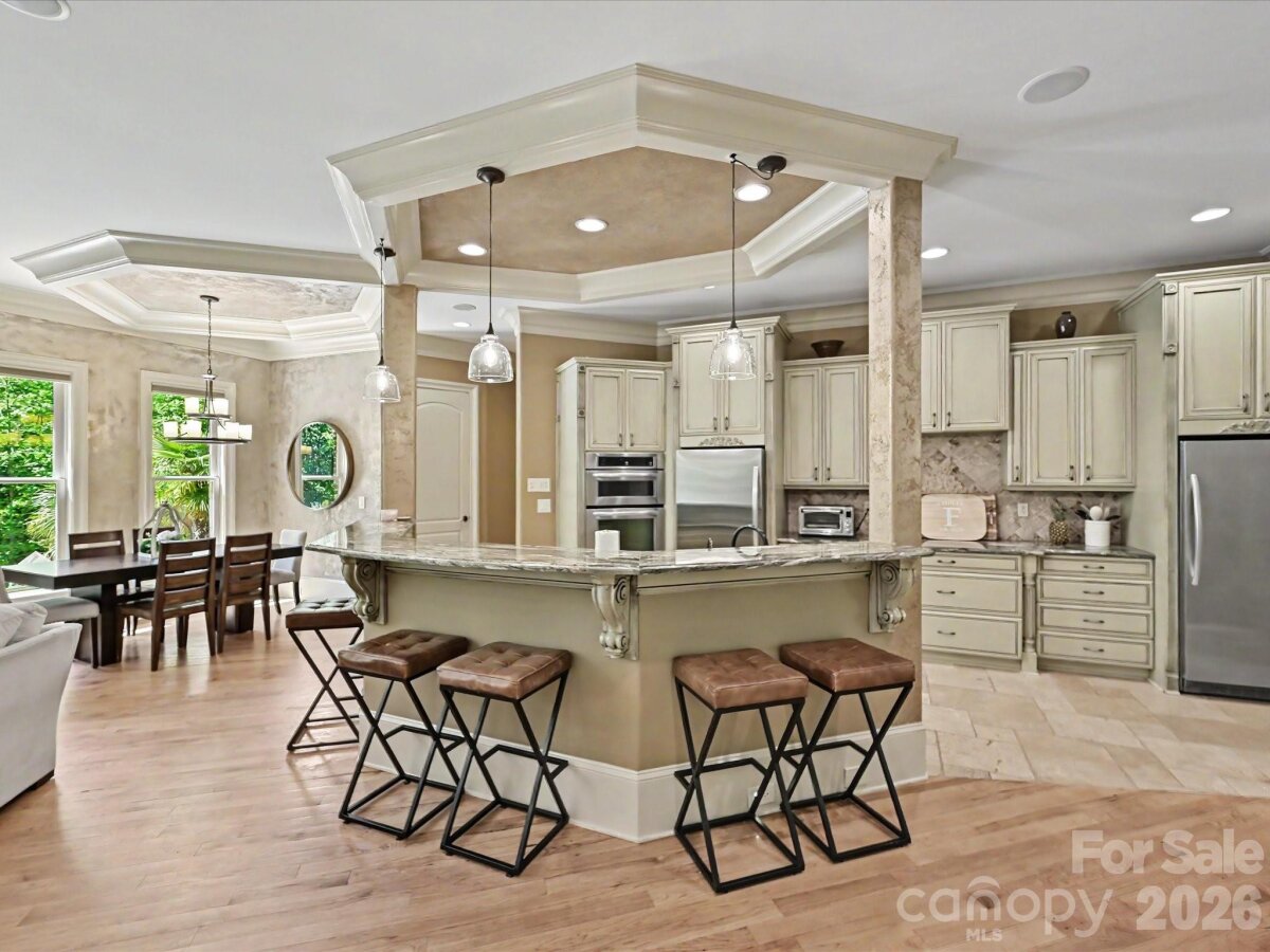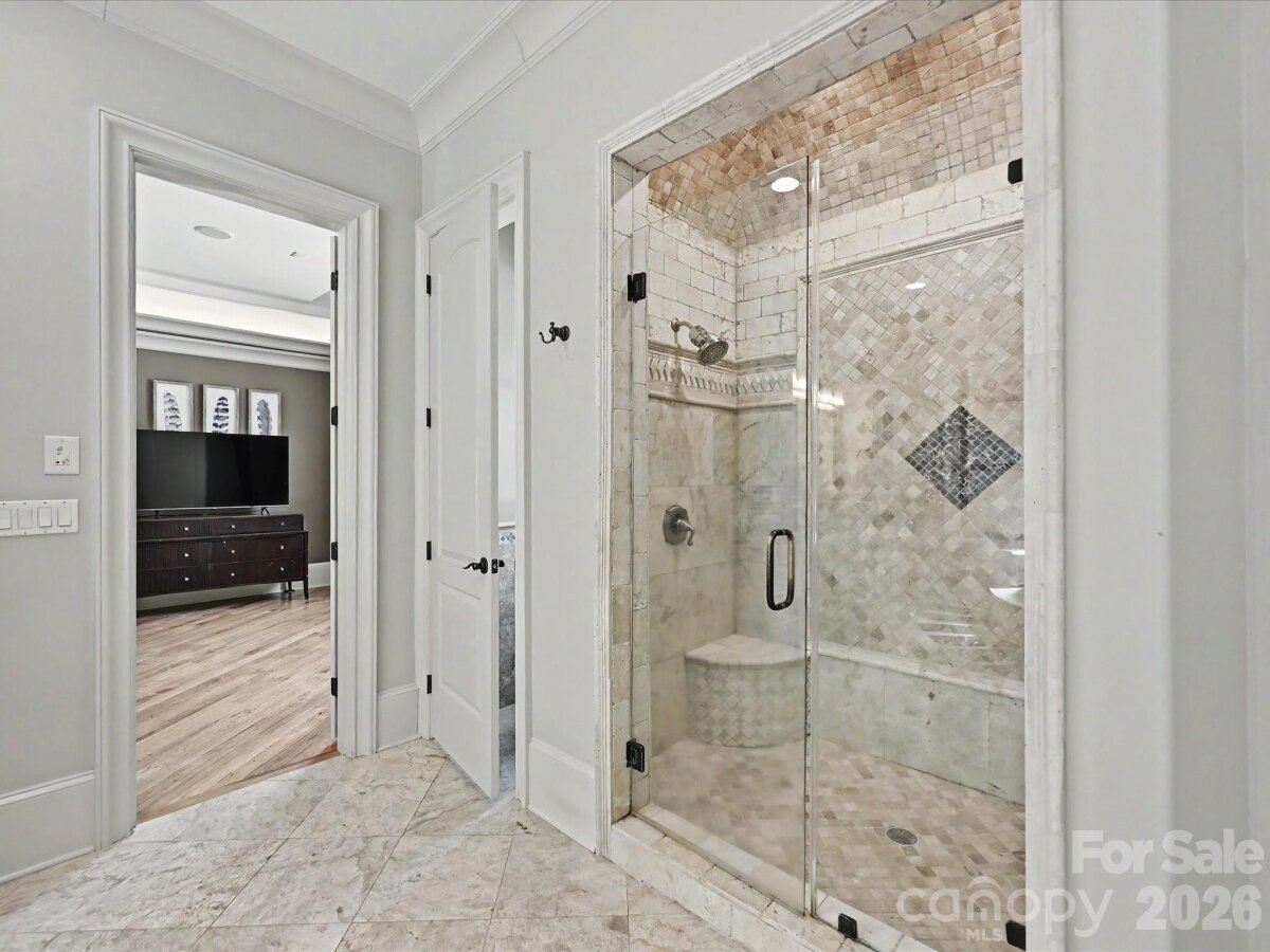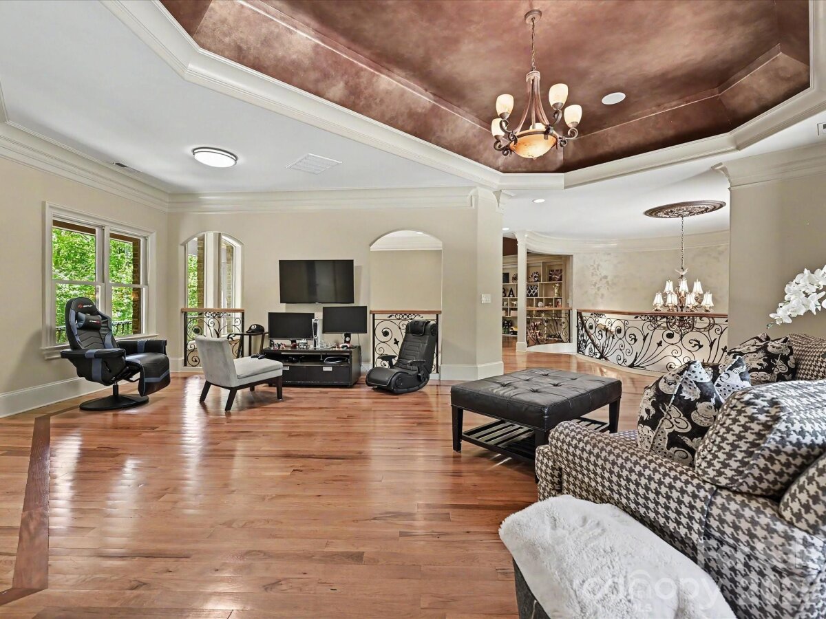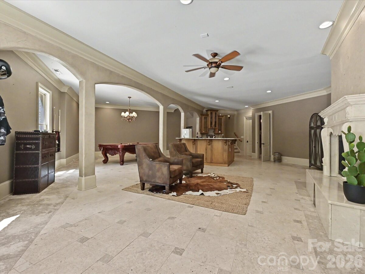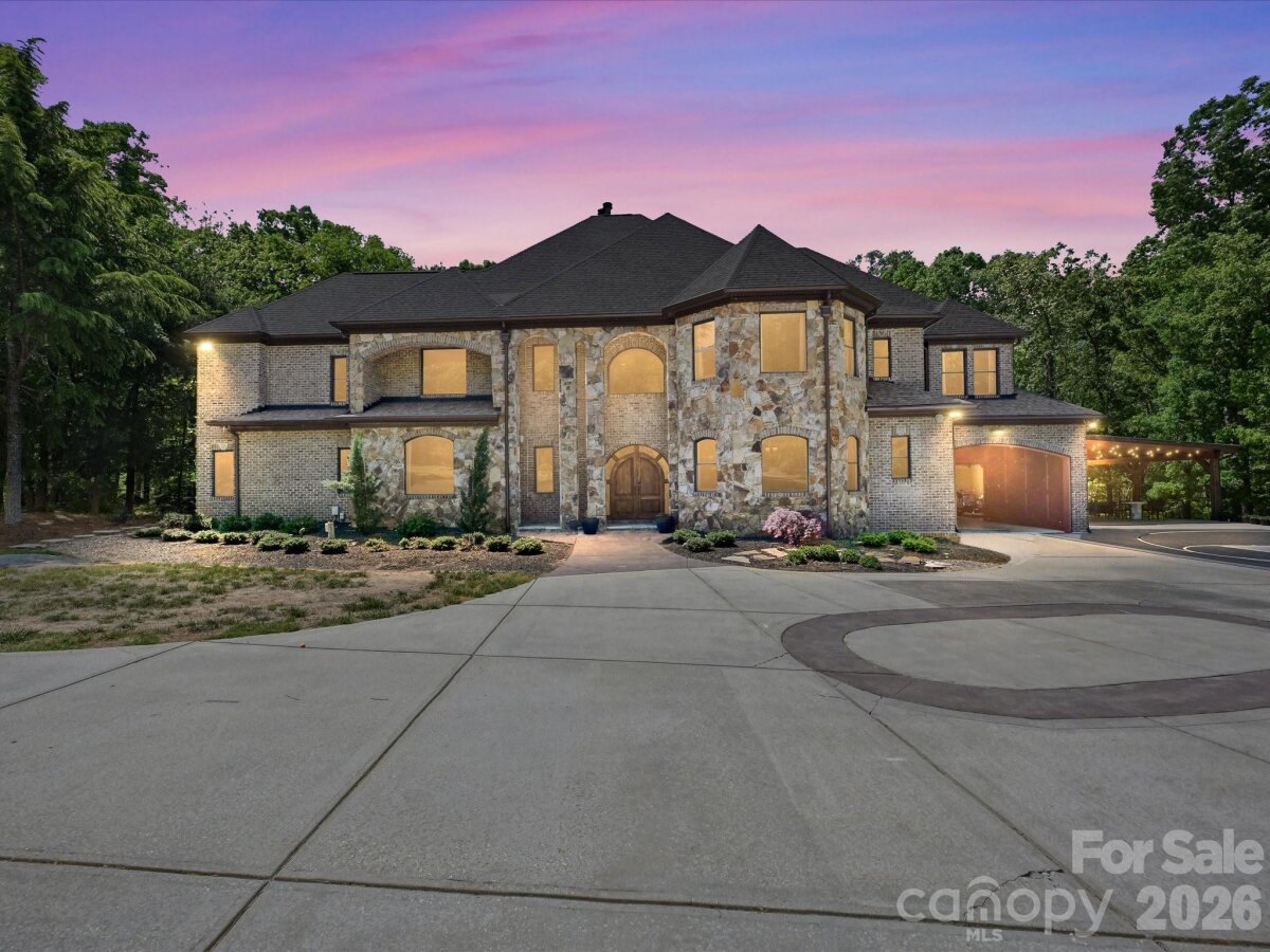 Tucked away on 10.31 private, wooded acres just minutes from the heart of Waxhaw, this stunning estate offers a rare blend of luxury, privacy, and natural beauty. A gated entrance and winding quarter-mile driveway create a true sense of arrival, leading to an impressive 8,276 square foot home thoughtfully positioned within a serene, nature-filled setting. Built in 2007 and beautifully maintained, the home features 4 bedrooms per septic permit (with 5 total bedrooms), each with its own full bath, offering flexibility for guests, multi-generational living, or private office space. The main-level primary suite is a true retreat, complete with a spacious en-suite bath, dual vanities, and peaceful views of the surrounding landscape. The main level is designed for both everyday living and entertaining, featuring a granite kitchen that opens seamlessly to the expansive great room, along with formal living and dining spaces. Architectural details and custom ornamentation throughout the home add a refined, upscale feel while maintaining warmth and livability. Upstairs, generously sized secondary bedrooms, a large loft, and an oversized bonus room provide flexible space for work, play, or relaxation. The fully finished walkout basement is built for entertaining, featuring a media room, bar area, game room, recreation space, and full bath—flowing effortlessly to the outdoor living areas. Outdoor living is exceptional and truly sets this property apart. A multi-level deck overlooks the natural landscape, while the expansive patio—crafted from massive, natural stone—creates a one-of-a-kind outdoor gathering space. The gunite inground pool has been recently enhanced with new variable frequency drive (VFD) systems for improved efficiency and long-term cost savings. A tranquil seasonal creek runs through the backyard, further enhancing the peaceful, private setting. The property is well-equipped for both lifestyle and functionality, featuring multiple outbuildings ideal for ATVs, tractors, and equipment, along with a 3-car garage and additional covered parking for two more vehicles. Additional highlights include two fireplaces, whole-house water filtration system, new roof (2025), HVAC system (2025), new gutters, and extensive interior and exterior repainting. Spectrum fiber internet availability makes working from home seamless, even in this private, tucked-away location. Zoned for Waxhaw Elementary, Parkwood Middle, and Parkwood High School, with many area families also choosing nearby Union Academy charter school. This is a rare opportunity to own a private estate offering acreage, luxury, and convenience—just minutes from Waxhaw, while still within easy reach of Ballantyne, South Charlotte, and everything the region has to offer.