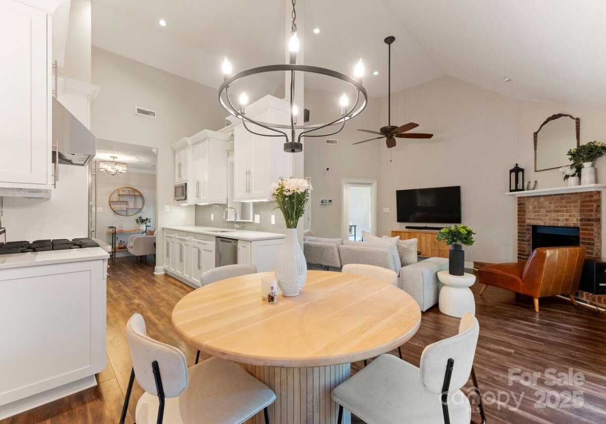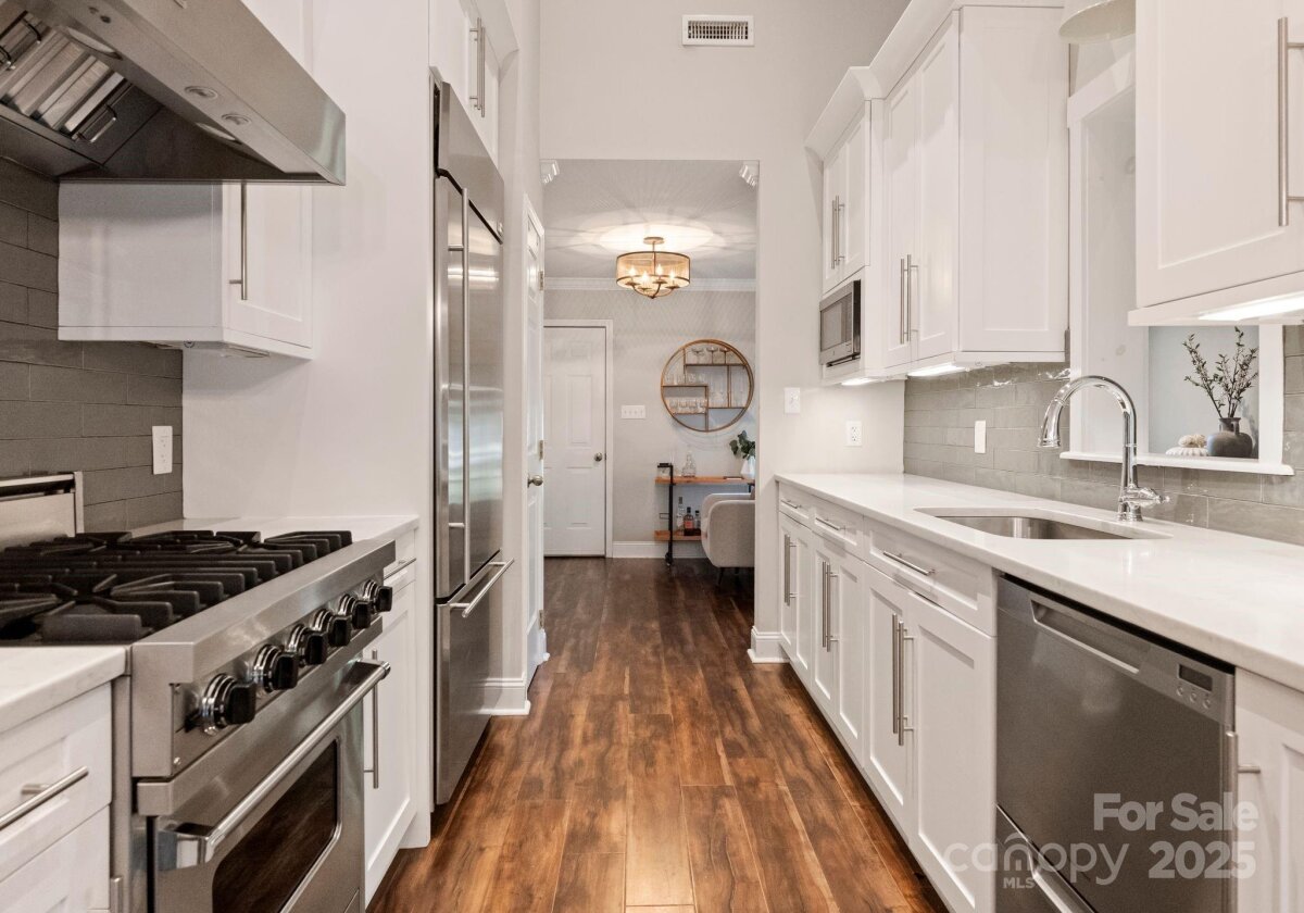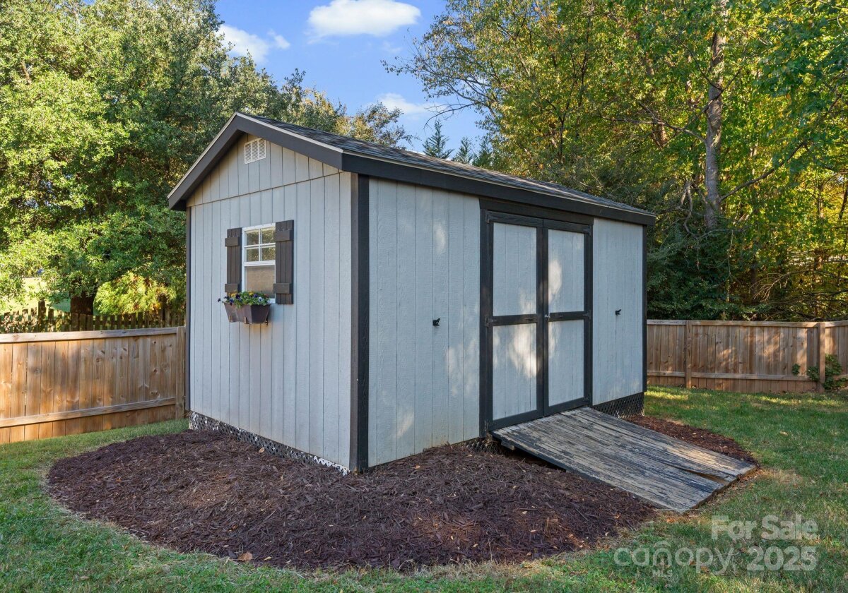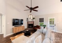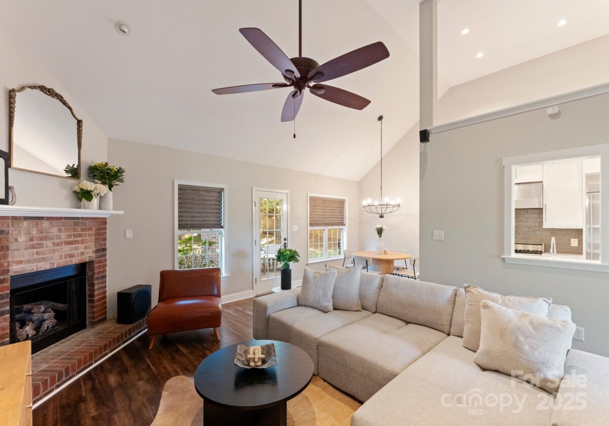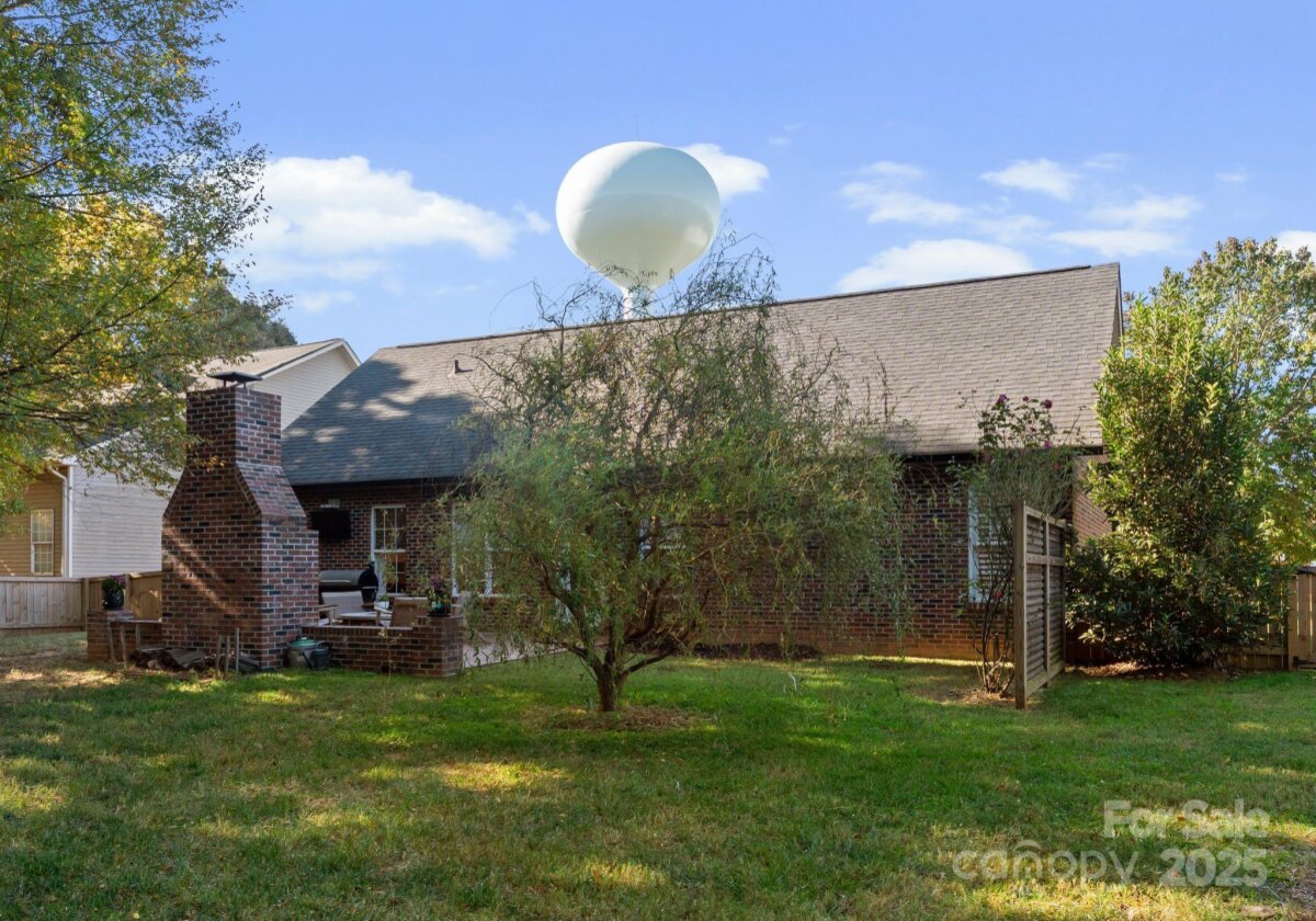 Charming Custom Full-Brick Ranch Just Minutes from Downtown Mooresville! This beautifully updated home offers an inviting blend of craftsmanship and comfort. Step inside to soaring cathedral ceilings and wide-plank rich laminate flooring that flows throughout. The family room features a cozy gas-log brick fireplace, opening to a stunning fully renovated kitchen complete with quartz countertops, tile backsplash, soft-close custom cabinetry, and high-end appliances—including a Viking gas cooktop and electric oven, Viking vented hood, Paykel dishwasher, and GE stainless refrigerator. The spacious primary suite showcases tray ceilings, updated lighting, a luxurious ensuite with a tiled shower, soaking tub, and a walk-in closet outfitted with custom cabinets and drawers. Two additional bedrooms and a beautifully updated full bath complete the interior. Enjoy the outdoors year-round in the large, fenced backyard featuring an expansive brick patio and a wood-burning brick fireplace—perfect for entertaining. A sizable storage shed offers additional convenience. With a prime location close to shops, dining, and downtown Mooresville, this home truly has it all! **Roof is 2016, HVAC 2017, Tankless water heater, 2016 Dual Furnace, fence installed 2023**