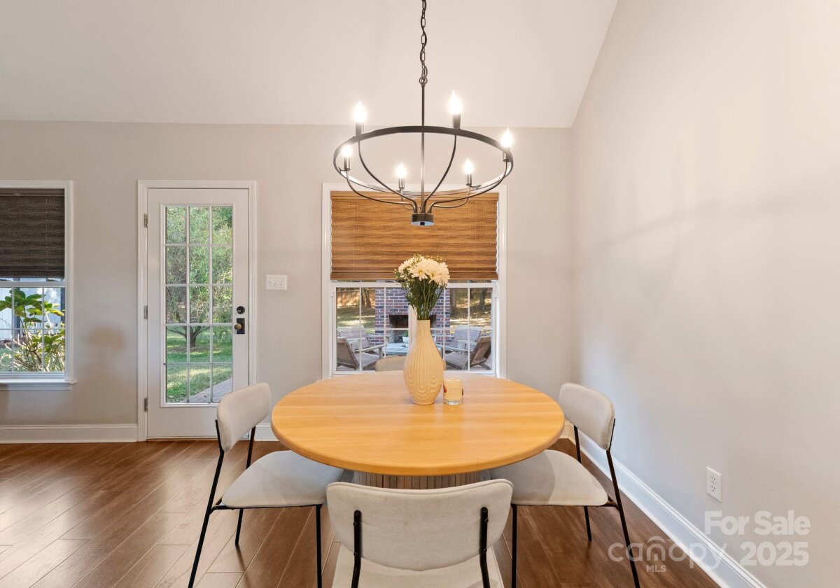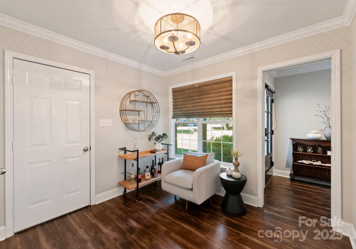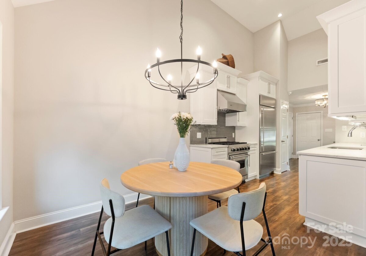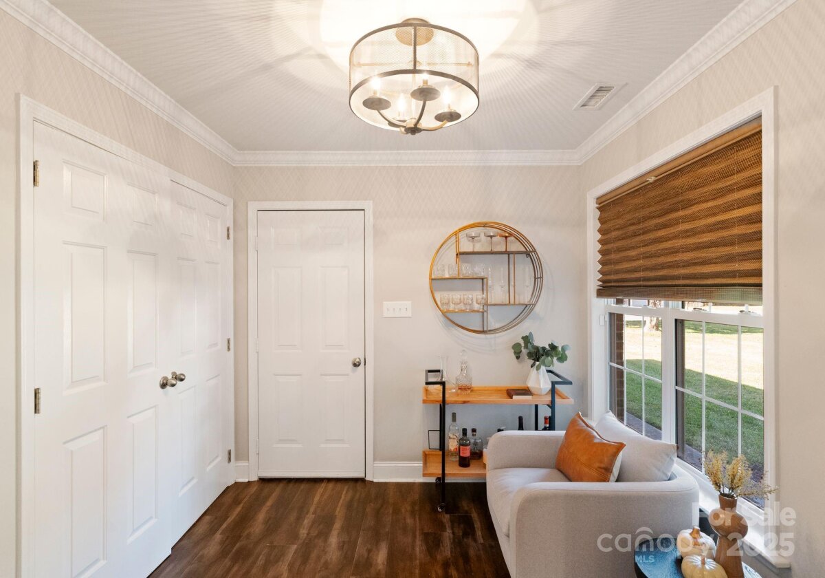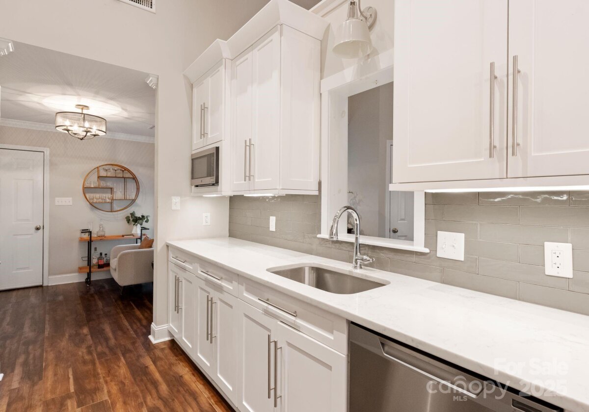 Charming Custom Full-Brick Ranch Just Minutes from Downtown Mooresville! This beautifully updated home offers an inviting blend of craftsmanship and comfort. Step inside to soaring cathedral ceilings and wide-plank rich laminate flooring that flows throughout. The family room features a cozy gas-log brick fireplace, opening to a stunning fully renovated kitchen complete with quartz countertops, tile backsplash, soft-close custom cabinetry, and high-end appliances—including a Viking gas cooktop and electric oven, Viking vented hood, Paykel dishwasher, and GE stainless refrigerator. The spacious primary suite showcases tray ceilings, updated lighting, a luxurious ensuite with a tiled shower, soaking tub, and a walk-in closet outfitted with custom cabinets and drawers. Two additional bedrooms and a beautifully updated full bath complete the interior. Enjoy the outdoors year-round in the large, fenced backyard featuring an expansive brick patio and a wood-burning brick fireplace—perfect for entertaining. A sizable storage shed offers additional convenience. With a prime location close to shops, dining, and downtown Mooresville, this home truly has it all! **Roof is 2016, HVAC 2017, Tankless water heater, 2016 Dual Furnace, fence installed 2023**