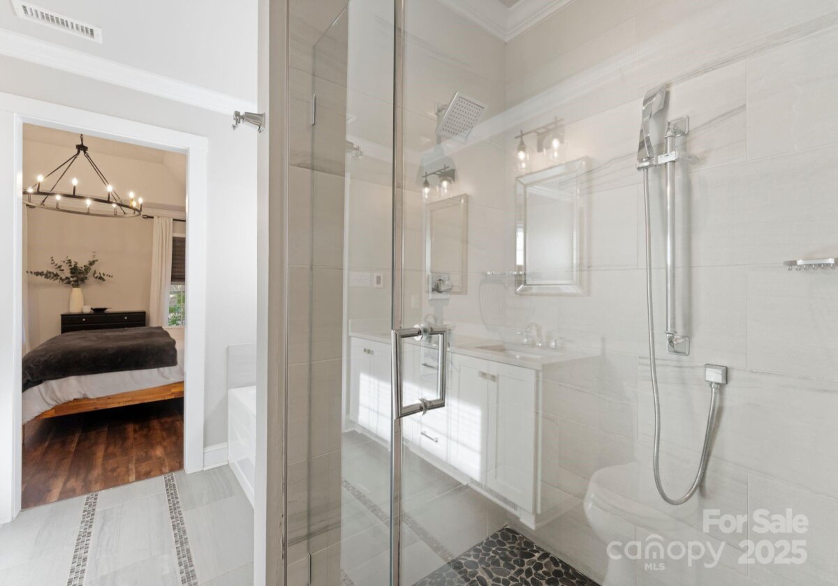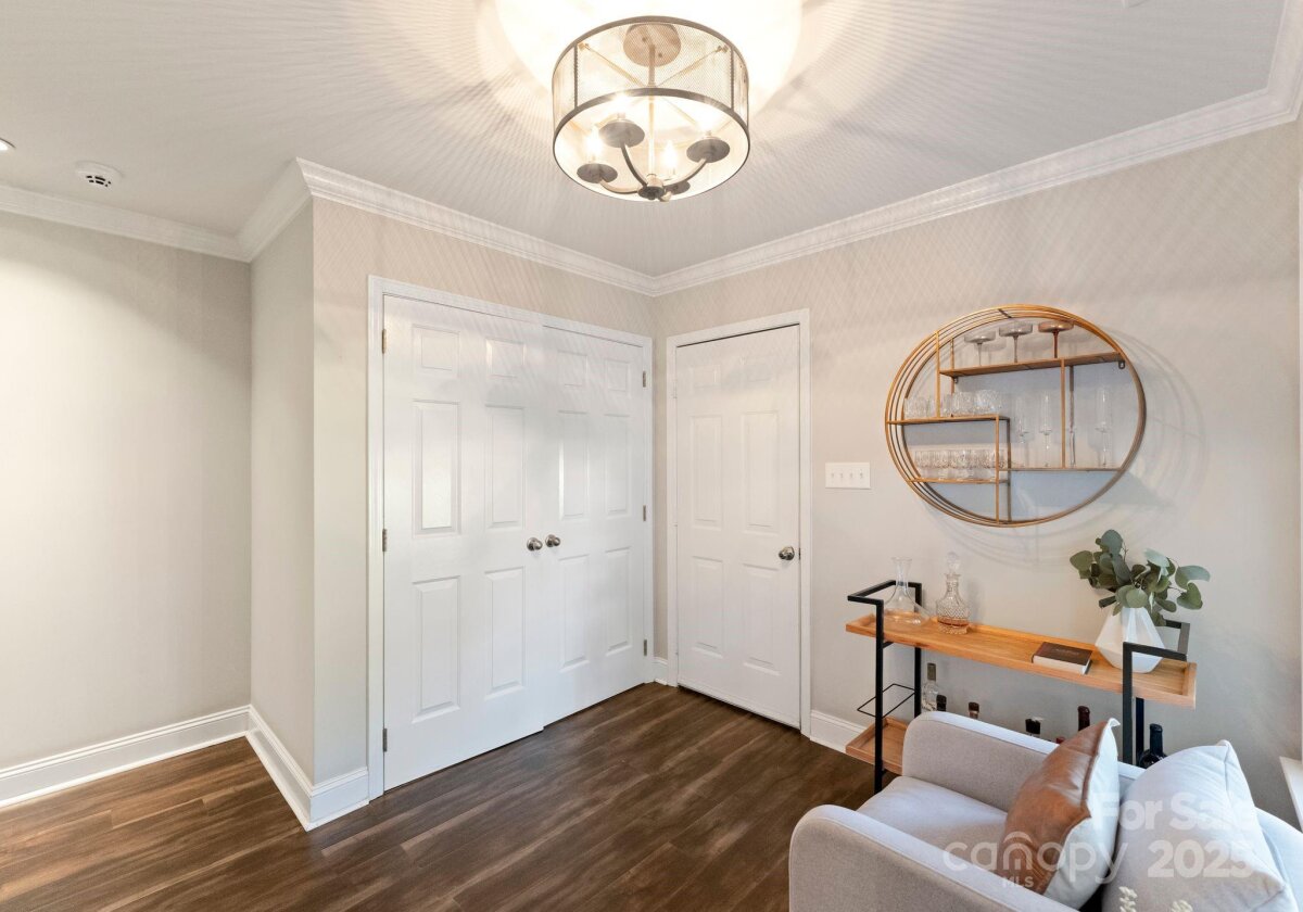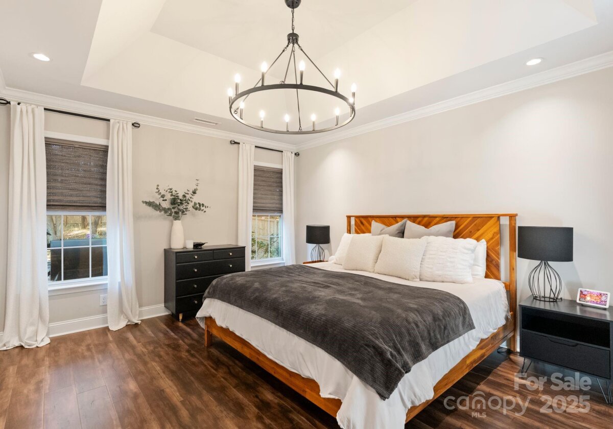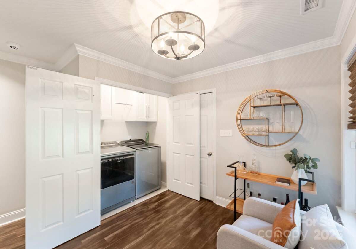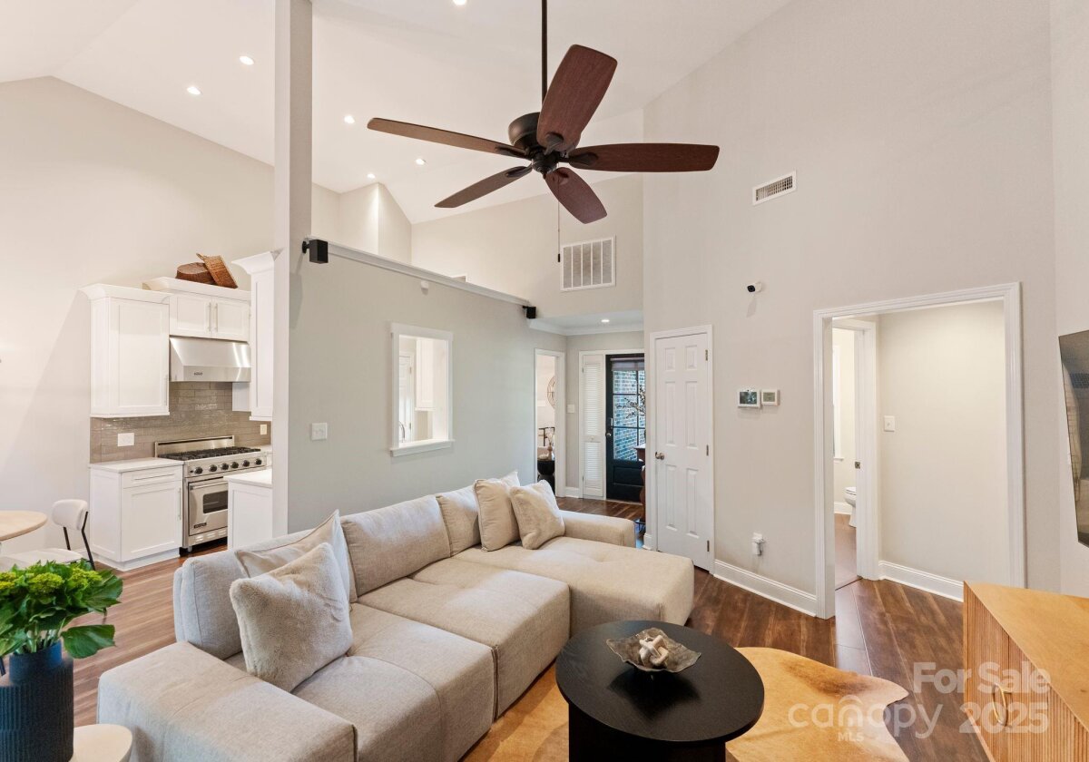 Charming Custom Full-Brick Ranch Just Minutes from Downtown Mooresville! This beautifully updated home offers an inviting blend of craftsmanship and comfort. Step inside to soaring cathedral ceilings and wide-plank rich laminate flooring that flows throughout. The family room features a cozy gas-log brick fireplace, opening to a stunning fully renovated kitchen complete with quartz countertops, tile backsplash, soft-close custom cabinetry, and high-end appliances—including a Viking gas cooktop and electric oven, Viking vented hood, Paykel dishwasher, and GE stainless refrigerator. The spacious primary suite showcases tray ceilings, updated lighting, a luxurious ensuite with a tiled shower, soaking tub, and a walk-in closet outfitted with custom cabinets and drawers. Two additional bedrooms and a beautifully updated full bath complete the interior. Enjoy the outdoors year-round in the large, fenced backyard featuring an expansive brick patio and a wood-burning brick fireplace—perfect for entertaining. A sizable storage shed offers additional convenience. With a prime location close to shops, dining, and downtown Mooresville, this home truly has it all! **Roof is 2016, HVAC 2017, Tankless water heater, 2016 Dual Furnace, fence installed 2023**