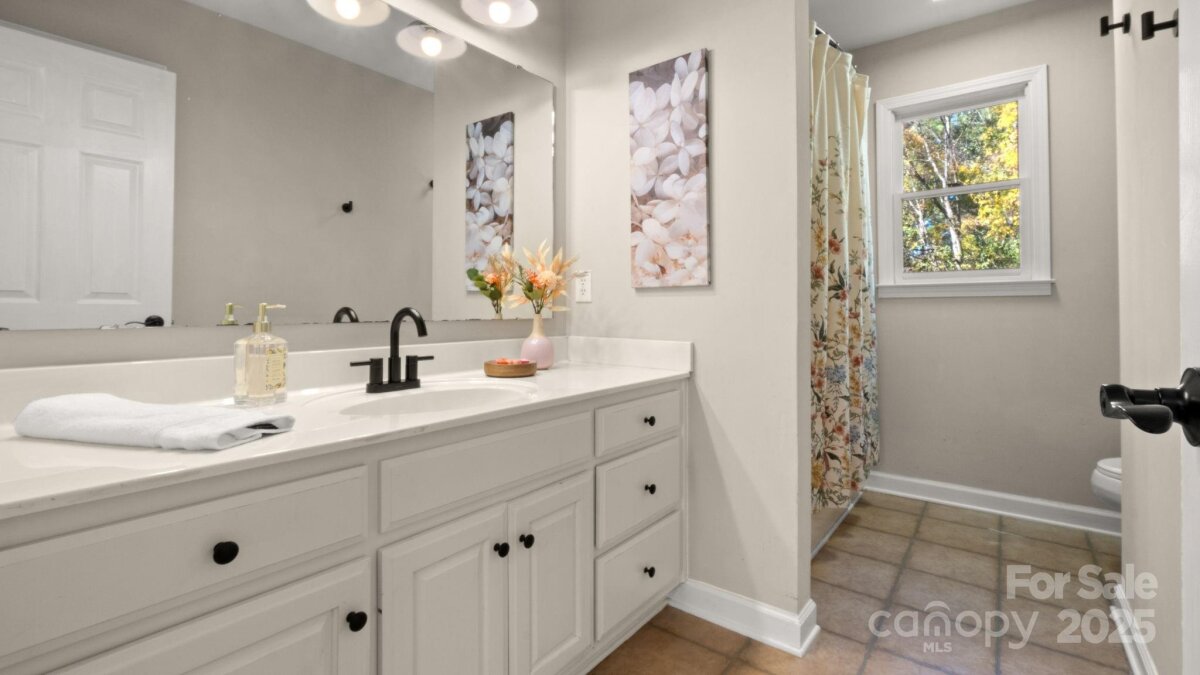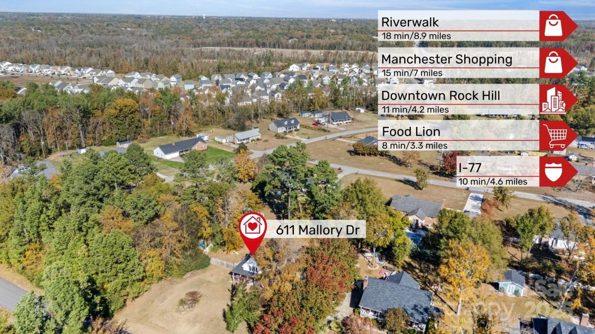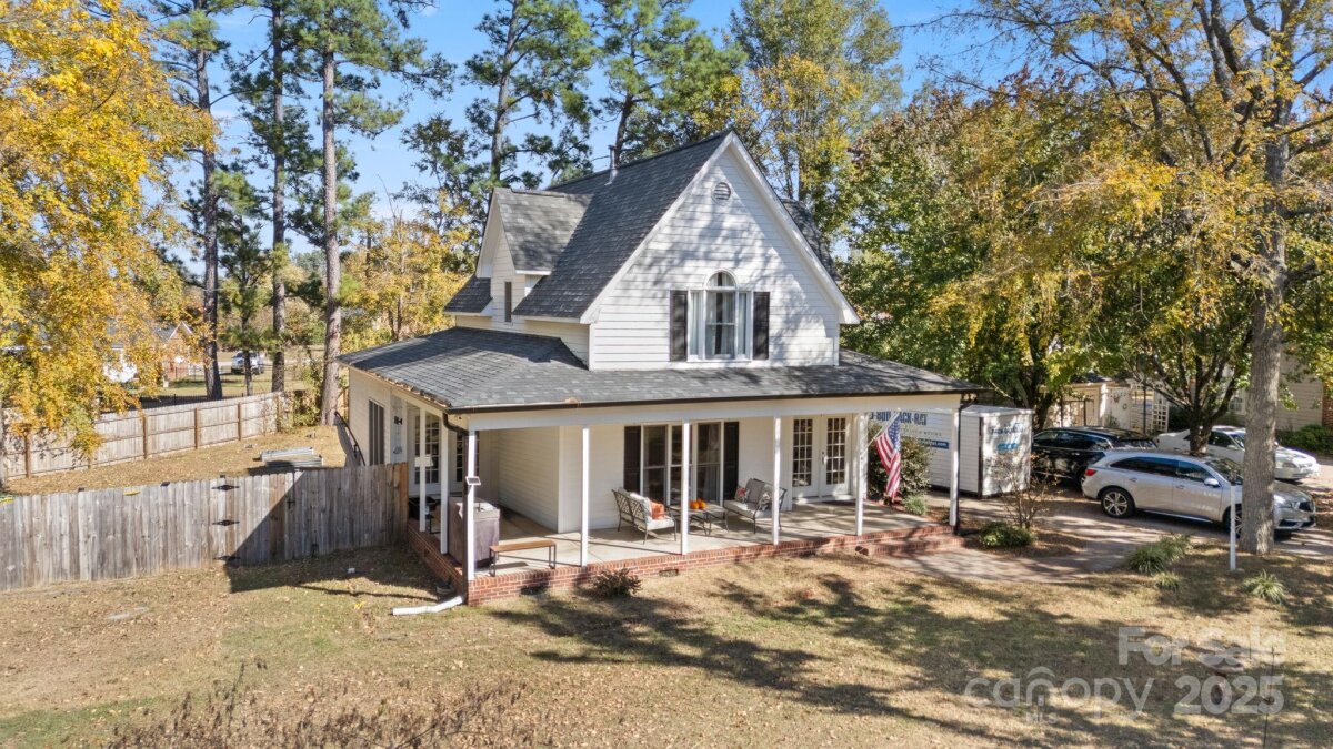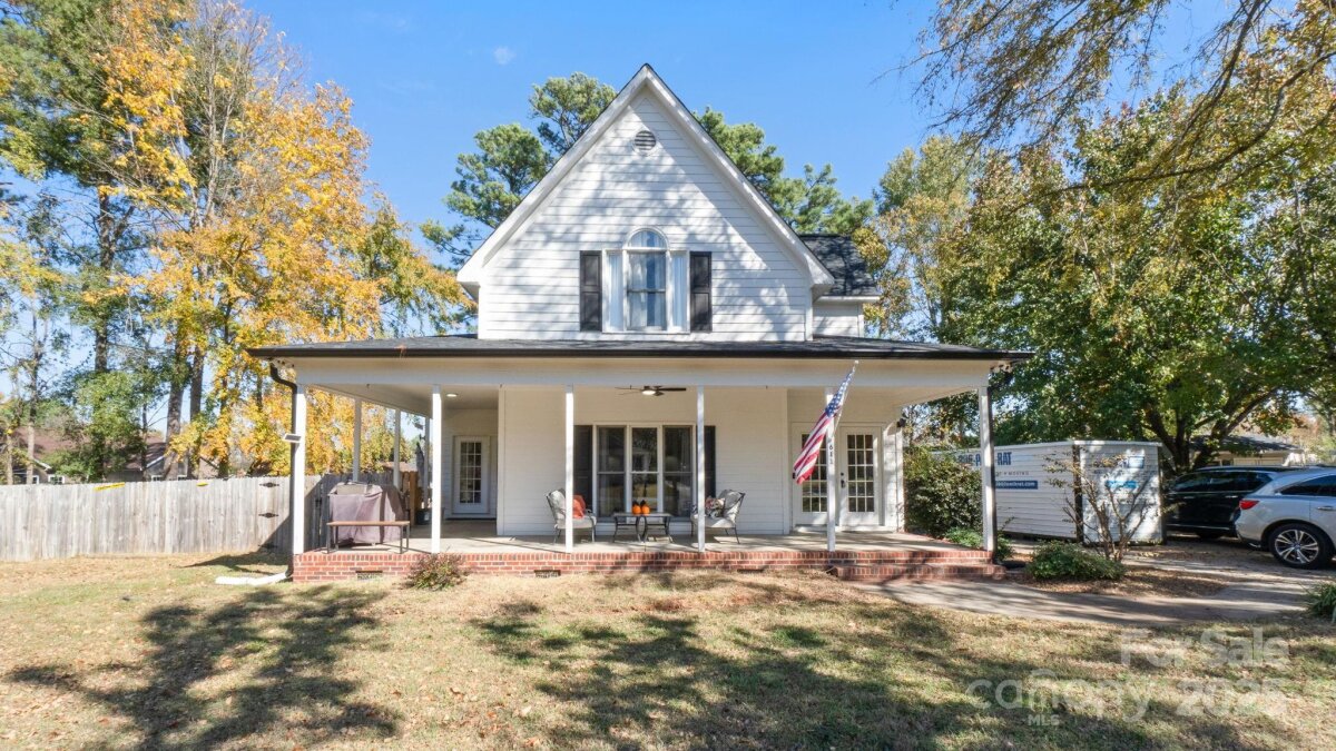 This charming, updated farmhouse-style home sits on a spacious half-acre lot and features a stunning wraparound front porch that invites both relaxation and entertaining. This beautifully maintained property blends timeless appeal with thoughtful modern updates for a truly move-in-ready experience. The main level offers hardwood floors and a spacious living room with a cozy gas fireplace. The primary suite on the main floor includes a massive walk-in closet, and an adjacent full bathroom, offering convenient one-level living. The primary ensuite features double sinks, a stand-up shower, and a luxurious jetted tub. A half-bath on the main level adds additional functionality for guests. Upstairs, you’ll find two bedrooms, and a spacious full bathroom, and a bright loft area. Multiple attic storage access points provide plenty of additional storage space. NEW NEW NEW: For perfect peace on mind, the home boasts a brand-new roof (2024), along with major system upgrades including new upstairs A/C and furnace (2023), tankless water heater (2022), and new septic tank (2023). Air quality is enhanced by UV filters in both new HVAC units. Throughout the home, you’ll find stylish touches like matte black hardware, ceiling fans, smart light switches, and custom fixtures including bedroom & living room wall sconces. Dual pantries add exceptional storage to the eat-in kitchen. Step outside to enjoy indoor-outdoor living in the fully fenced backyard with full privacy fencing (2023)—ideal for pets, play, or gatherings. Relax on the back patio or enjoy evenings around the firepit. A spacious shed with underground electrical service serves as a fantastic workshop, while ample parking provides room for an RV, boat, and multiple vehicles. Located in a quiet country setting less than 10 minutes from downtown Rock Hill, this home offers the perfect blend of tranquility and convenience—with easy access to shopping, dining, schools, and the local nature preserve.