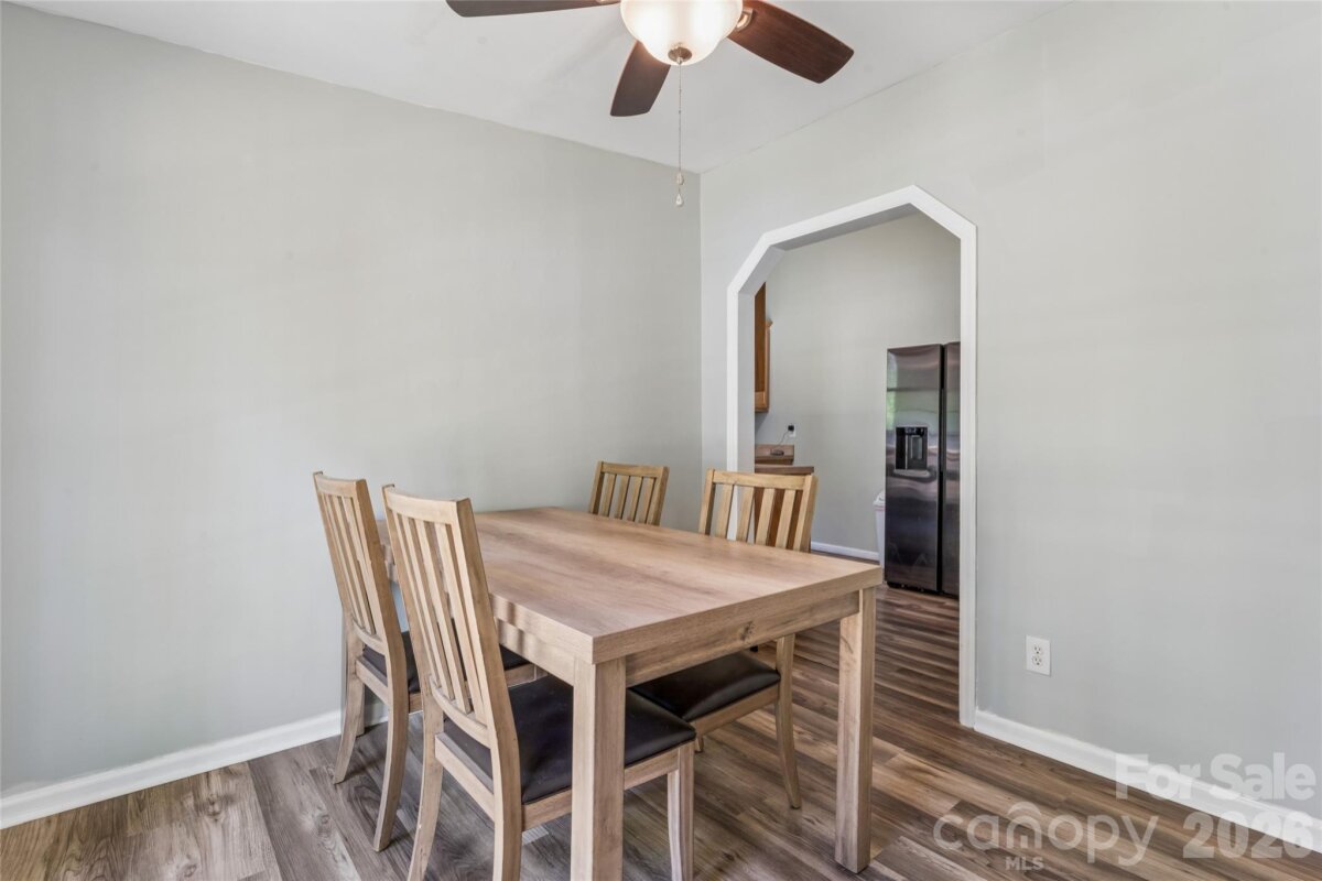 Welcome home to this charming ranch home nestled in the end of a quiet cul-de-sac lot. Close to all the amenities in Mint Hill, as well as 485, making your commute a breeze. Walk up to the inviting front porch, and step in to the open living room featuring vaulted ceilings and a wood burning fireplace. To the right, you’ll find the primary and secondary bedrooms, as well as the full bath and laundry. The kitchen features updated appliances and recently redone pantry. The converted sunroom/3 season room is currently being used as a mudroom and office space. Out back you’ll find a spacious, newly renovated deck overlooking a large, private fenced in lot. New gravel just delivered for the driveway and septic was pumped 3/6. No HOA, investors welcome!
