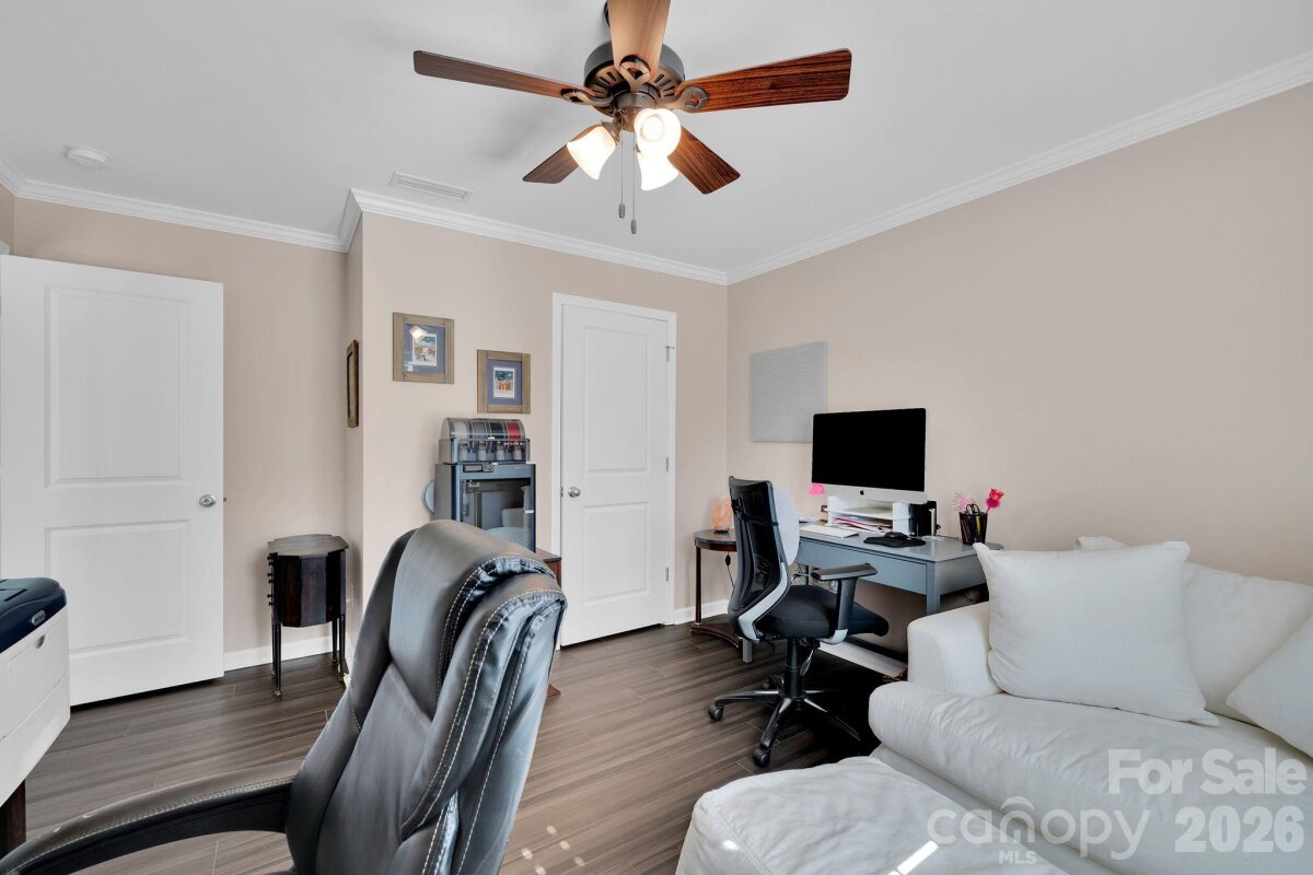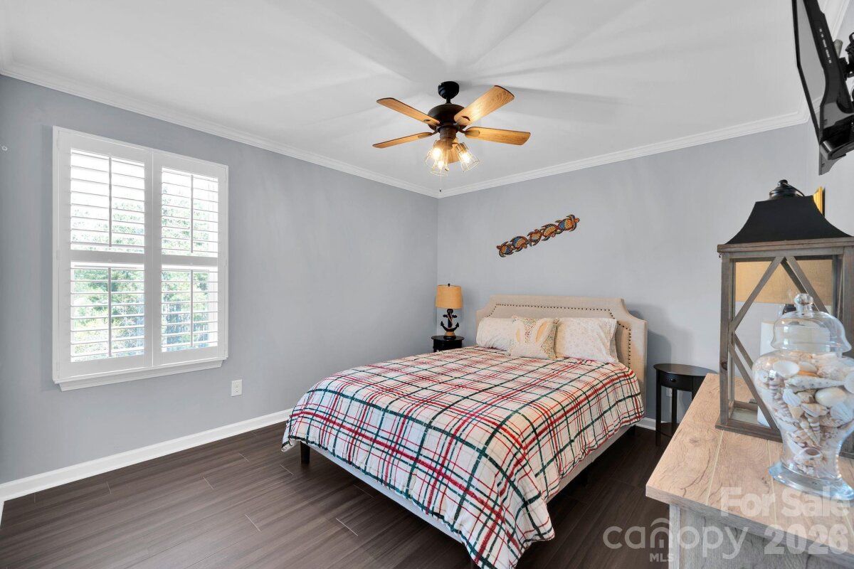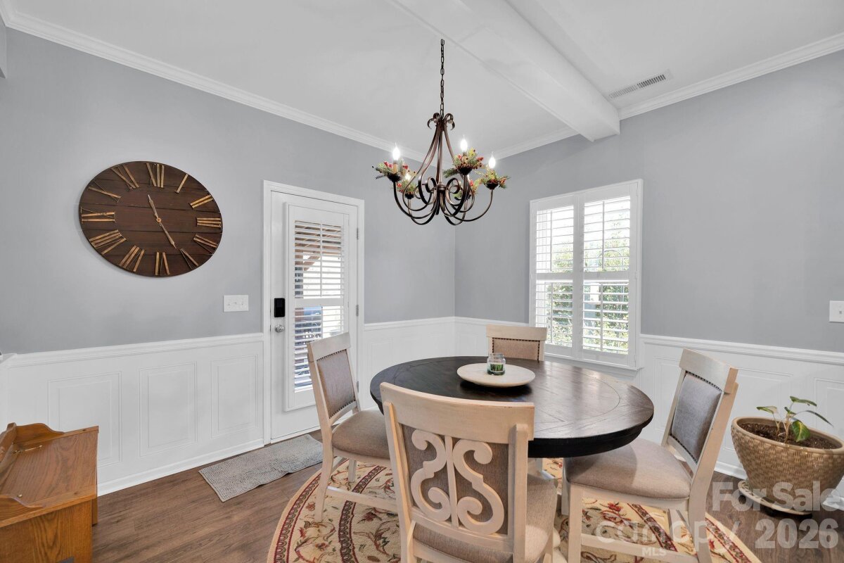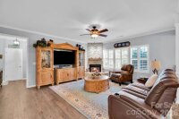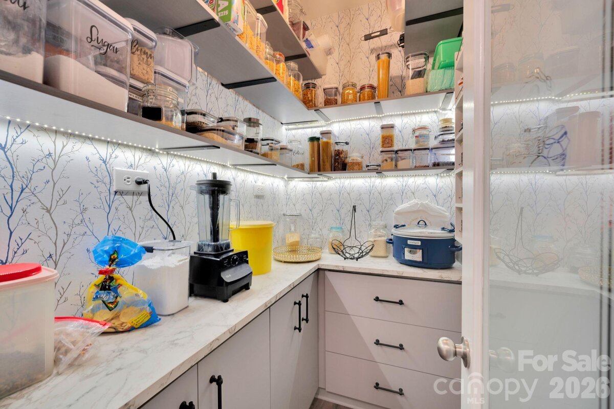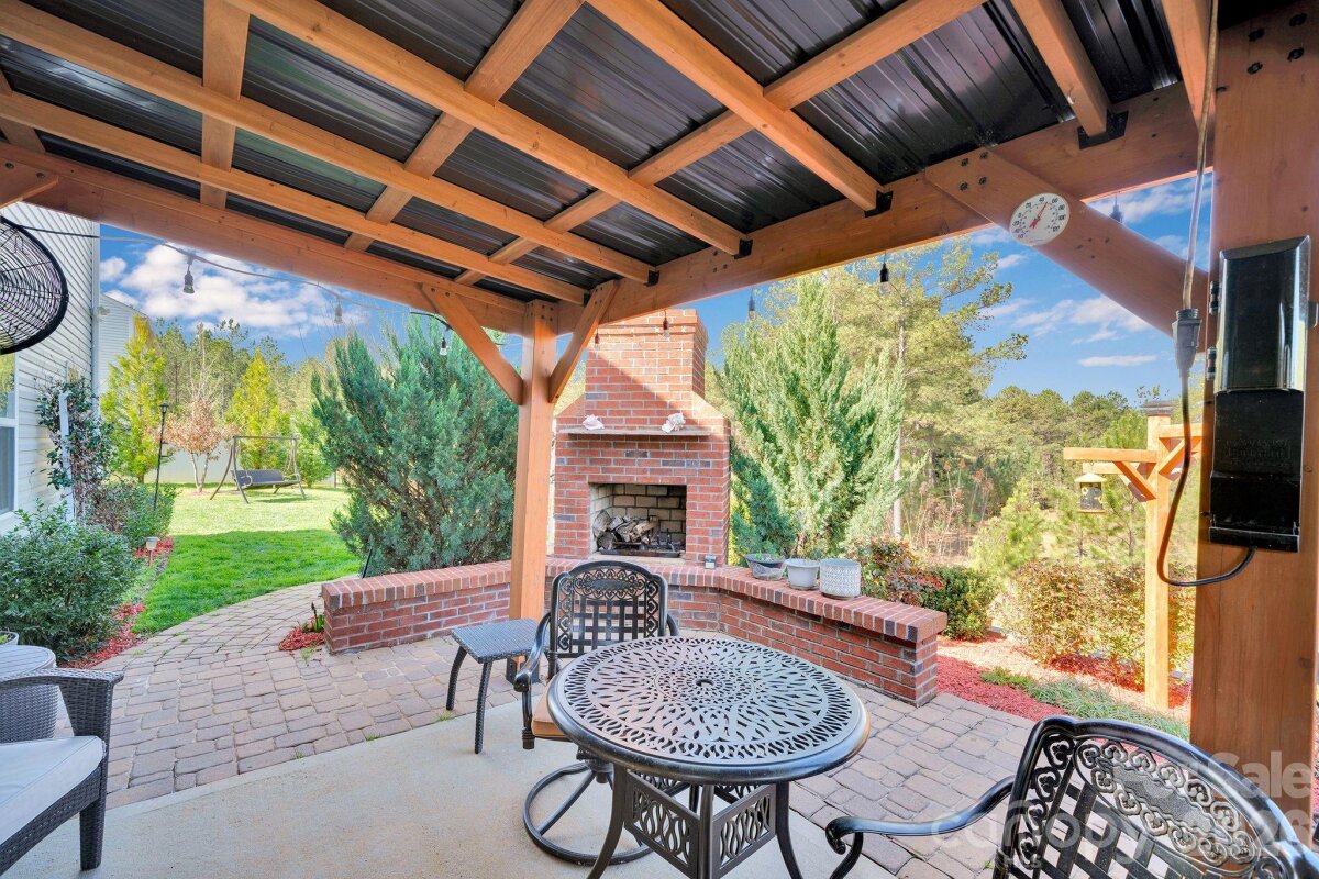 Welcome to this exquisitely upgraded 4-bedroom, 3-bath home in the highly sought-after Conservancy at Waxhaw Creek, perfectly situated on over an acre of privacy. Thoughtfully designed this home features plantation shutters, extensive crown molding, elegant wainscoting, and durable luxury vinyl plank flooring throughout. The gourmet kitchen is a standout, showcasing high-end Samsung appliances, a spacious island, granite sink, touchless faucet, custom pantry with built-in shelving, lighting, and an etched glass door, additional recessed lights, 42in cabinetry and stunning ceiling beams. The open-concept living space is highlighted by a custom stone fireplace, creating a warm and inviting atmosphere ideal for everyday living and entertaining. Step outside to your own private retreat—complete with a fenced backyard, fire pit, apple and pecan trees, blueberry and grape bushes, and a beautifully designed patio with an outdoor fireplace and hot tub. Additional upgrades include a whole-home water filtration system, central vacuum, upgraded fixtures, new 18-inch toilets, irrigation for front and exterior areas, and a utility shed for added storage. The epoxied garage offers ample storage, while the widened driveway provides extra parking. A full security system and motion-activated exterior lighting add peace of mind. Every detail has been carefully curated to deliver a perfect blend of comfort, style, and privacy in one exceptional home.