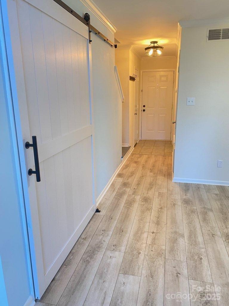 SOUTHPARK TOWNHOME FOR ONLY 199 K .This beautifully renovated SouthPark one-bedroom townhome combines modern updates with timeless charm. A private, oversized fenced patio extends your living space—perfect for entertaining , pets and grilling .. Inside, the dramatic two-story great room showcases smooth cathedral ceilings, crown molding, and custom built-ins. French doors flood the space with natural light and open seamlessly to the patio. Freshly painted in neutral tones, the home is enhanced with wide-plank LVT flooring, updated lighting and fixtures, granite countertops, and a sleek undermount sink. The kitchen shines with stainless steel appliances and a glass tile backsplash, while a sliding barn door conceals the laundry area. Upstairs, the spacious bedroom includes two closets, a walk-in dressing area, and generous storage. The sought-after Heathstead community offers lush landscaping, two pools, a recreation area, and The Mansion clubhouse—available for private events. With water and recycling included in the low HOA, everyday living is simple and affordable. Enjoy unmatched convenience with sidewalk access to Harris , Beverly Woods, bus line 66X, SouthPark, Quail Corners, the Greenway, and the LYNX light rail. This home truly blends style, comfort, and location.