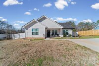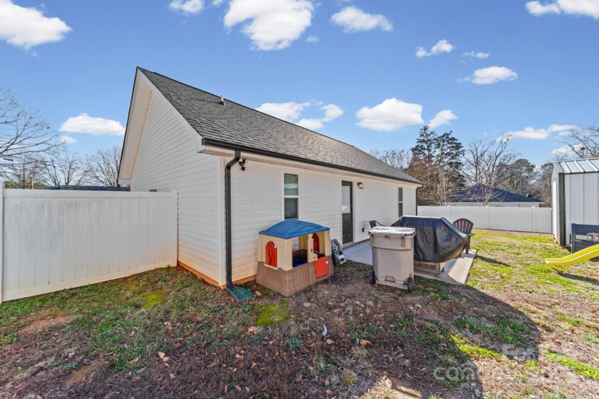 Beautiful 3-bed, 2-bath ranch built in 2022, offering low-maintenance living just 5 minutes from downtown Gastonia and about 35 minutes to Uptown Charlotte. Enjoy an inviting front porch, a covered back porch, a fully privacy-fenced backyard, and a storage shed. The expanded driveway provides easy parking for multiple vehicles. Inside you’ll find vaulted ceilings, LVP flooring throughout (no carpet), and a bright kitchen with stainless steel appliances, soft-close cabinetry, and quartz countertops. The primary suite features a double-vanity bath, tiled finishes, a walk-in closet, and a secondary closet for excellent storage. Both bathrooms are tiled, and secondary bedrooms are well sized. Move-in ready and convenient to dining, shopping, parks, and commuter routes. Don’t miss it.