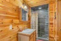 Tucked away on a cul de sac in a small gated community off NC Hwy 181, this cabin has the peaceful privacy you have been looking for and easy access on paved roads. Adventure all around you as the Upper Creek Acres neighborhood borders rugged Upper Creek in the Pisgah National Forest. The Linville Gorge Wilderness Area is practically across the street. Endless hiking trails, fishing streams and scenic overlooks on the Blue Ridge Parkway are just minutes away! Built in 2003 with guests and comfort in mind, this well-crafted cabin is perfect for relaxing weekends or full-time mountain living. You’ll love the warm wood walls, floors, and ceilings and that classic mountain feel. Primary bedroom and bath on main level. Spacious kitchen offers a walk-in pantry and plenty of cabinet and counter space to gather with family and friends. Rec/Bunk room on lower level adds to the fun! Updated tile showers in both baths. Wraparound decks and porches from every angle bring the outside in. Mini-splits provide heat and A/C, additional cast iron propane direct vent stove/fireplace. Spectrum fiber internet available. Whole house generator.