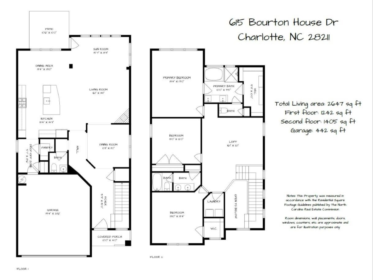 Welcome to this stunning full-brick Pulte colonial in an exclusive 22-home community located between the sought-after Cotswold and Eastover neighborhoods. With easy access to Uptown Charlotte, South Park, Plaza Midwood, and Myers Park, this home is centrally located and has been beautifully updated inside and out with an extensive list of renovations completed in 2023 and 2024. Step inside to an inviting open floor plan with soaring 10 ft ceilings, 8-foot doors, extensive moldings, new hardwood flooring, fresh paint, and new designer lighting that creates a bright, modern feel. The gourmet kitchen was fully renovated in 2023 and showcases new custom soft-close cabinets, premium granite countertops, a stylish tile backsplash, new sink and Moen faucet, and high-end stainless steel appliances including a new gas cooktop. A spacious island, walk-in pantry, and adjacent breakfast nook make this kitchen a perfect centerpiece for entertaining. The kitchen flows seamlessly into the great room with a cozy gas fireplace and an expanded sunroom filled with natural light. For added comfort, the sunroom windows have been soundproofed, ideal for work, relaxation, or family gatherings. Hide all the bookbags and shoes in the drop zone just inside the garage. Upstairs, a versatile loft offers flexible space for a home office, playroom, or media room. The primary suite features a tray ceiling, hardwood floors, and soundproofed windows, creating a serene retreat. The luxurious ensuite bath has been fully renovated with new tile flooring and walls, an enlarged shower with mosaic tile floor, dual vanities with granite tops, and new Moen fixtures. The walk-in closet includes custom shelving and new carpet. Two large additional bedrooms feature new plush carpet, fresh paint, and ceiling fans, while the upstairs laundry adds everyday convenience. This low-maintenance community includes lawn care and water in the HOA, allowing you to enjoy the home and neighborhood worry-free. Outdoor recreation is minutes away at Randolph Road Park with 30 acres of walking trails, baseball, and soccer fields. Freedom Park, Charlotte greenways, as well as many other spots for outdoor enthusiasts surround this home. Move-in ready with tons of recent upgrades, 615 Bourton House Dr. blends timeless brick architecture with modern luxury finishes, offering both comfort and convenience in one of Charlotte’s most desirable locations. Additional updates include: New hardwood flooring (2023) Ceiling fans and light fixtures installed in all bedrooms and loft (2023) New polyurethane on stairs and railing with hardwood stair landings (2023) Freshly repainted front door, shutters, and new garage door hardware (2023) New WiFi-enabled thermostats on both levels (2023) New A/C evaporator coil replaced in attic (2024) Heavy-duty garage shelving system installed (2023) TV mounts installed in great room and loft (2023)