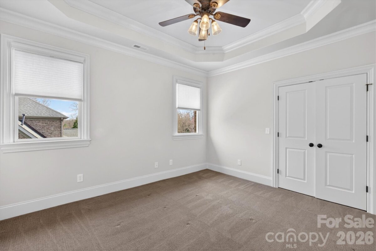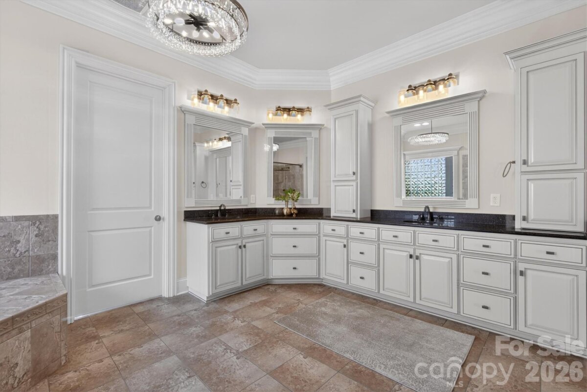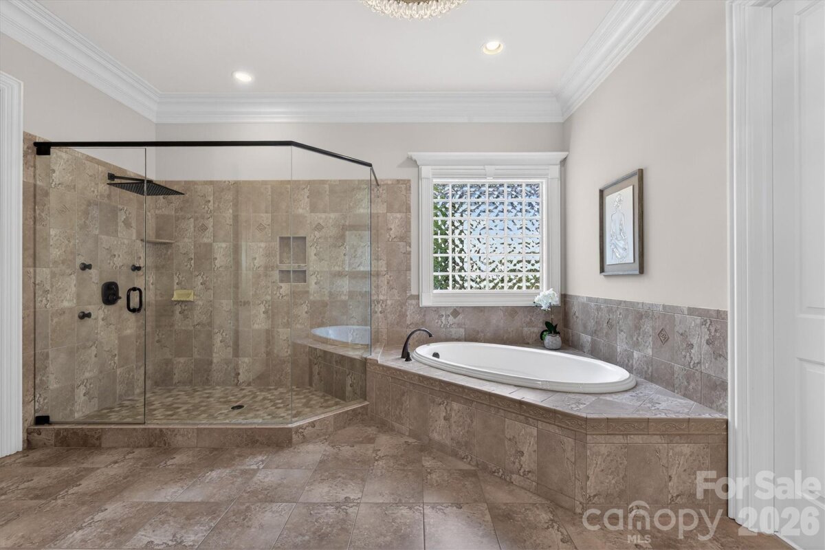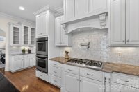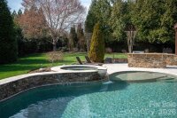 Beautiful luxury home with resort backyard featuring a heated pool with spa, expansive travertine pool deck, outdoor kitchen with bar seating + wood burning fireplace, located in popular gated Chatelaine community in Weddington. Gorgeous interior finishes including custom ceiling details, triple crown molding and hardwood floors on main plus fresh new interior paint and updated designer lighting! Great floor plan features primary bedroom on main with expansive walk in closet with custom cabinetry. Primary opens to outdoor private patio with beautiful seating area and wood burning fireplace. Lovely kitchen features painted custom cabinets, double ovens + gas cooktop, built in fridge, large pantry + a butlers pantry with wine fridge and sink. Kitchen opens to gorgeous keeping area with wood beam ceiling detail and gas fireplace with stone surround. Upstairs features 3 secondary rooms plus an additional primary suite. Second floor also includes a large bonus room with wetbar including sink, fridge and icemaker. Extended 3 car garage includes loads of custom cabinetry. The real gem of this property is the beautifully landscaped backyard retreat which includes both a covered porch and pergola sitting area and offers a ton of privacy. Zoned for Weddington schools!