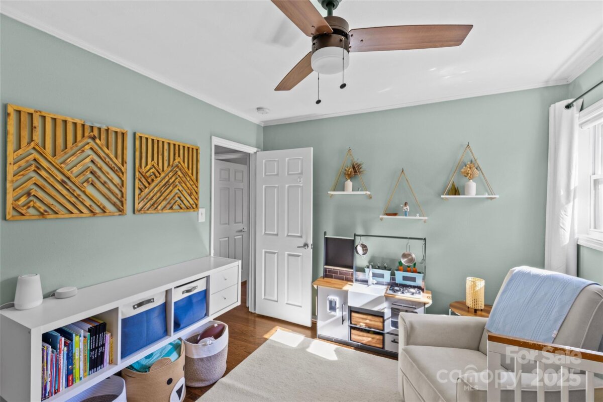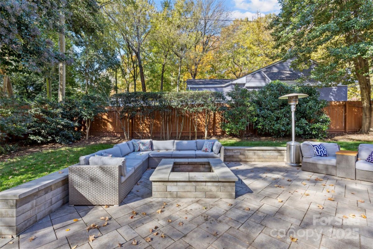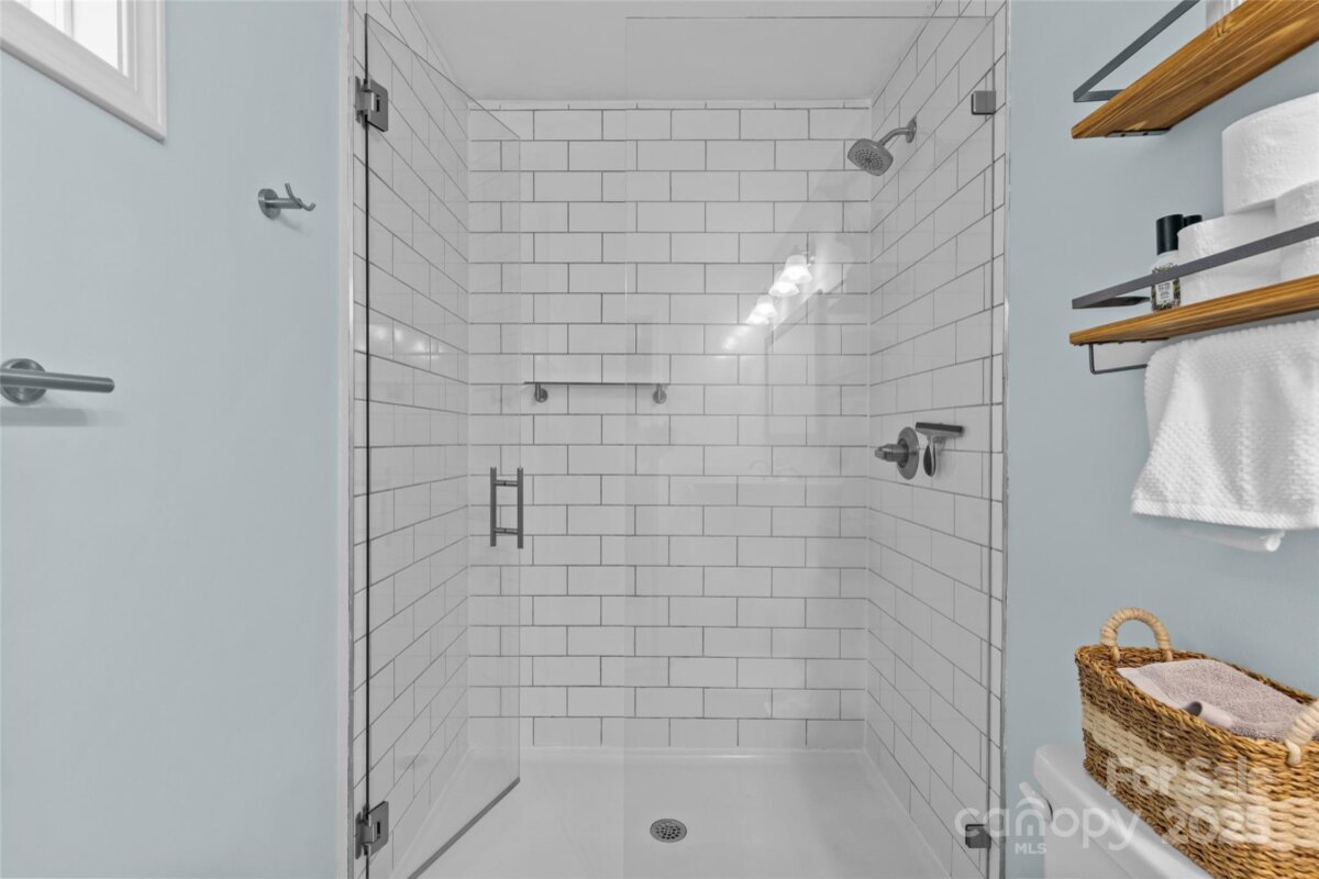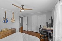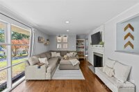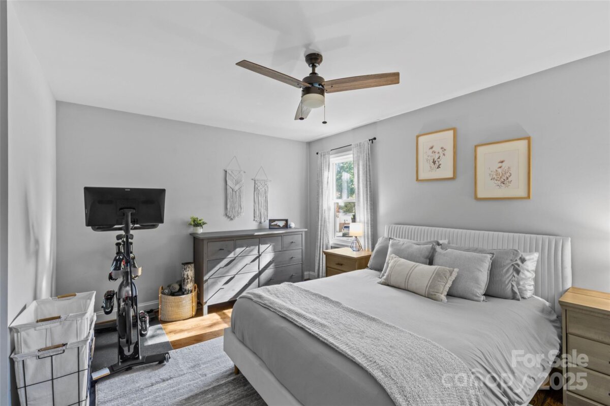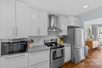 Mid-Century Charmer Meets Modern Living! This beautifully updated contemporary ranch sits proudly on a large corner lot, blending mid-century character with modern updates. Beautiful hardwood flooring flows throughout the open floor plan, highlighted by the dramatic floor-to-ceiling front windows, creating a bright and inviting atmosphere. Fully updated in 2017, the kitchen features sleek quartz countertops, stainless-steel appliances, and a dedicated dining area, perfect for everyday living or entertaining guests. The primary suite impresses with a large walk-in closet and a luxurious en-suite bath featuring double vanities and a subway-tile walk in shower with a glass door. Lastly step outside to a cozy side patio, ideal for morning coffee or quiet evenings, or enjoy the fully fenced backyard with a stunning hardscaped patio—perfect for bonfires, outdoor movie nights, and gatherings under the stars. Roof, HVAC, hot water heater and several windows all from 2017. Located in popular Collingwood you are minutes from Southend, Park Rd shopping center, and walkable to the neighborhood park plus Woodlawn light rail station!