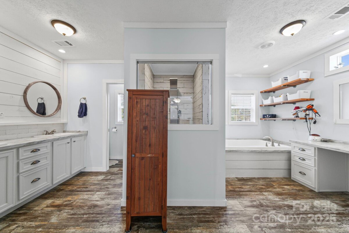 Welcome to 6179 Steen Rd Jefferson, SC! This 3-bedroom, 2-bathroom home is nestled on 2.57 acres and offers a perfect blend of comfort and functionality. The beautiful kitchen features upgraded quartz countertops and large working island making it a chef’s dream. Enjoy modern convenience with a tankless hot water heater. The covered back porch provides an ideal space for outdoor entertaining and relaxation. The large primary bathroom boasts a luxurious tile shower, a double vanity with sinks, a soaking tub, and a separate vanity, creating a spa-like retreat. A convenient mudroom with a sink adds practicality. The property includes a spacious 1,087 sq ft, 3-bay garage with an additional bathroom and power, perfect for hobbies or additional storage. For work or extra space, there is a separate office building with its own bathroom. Additionally, a storage building provides ample space for tools, equipment, or outdoor gear. This property is a perfect combination of comfort, style, and versatile space on a generous acreage. Adjacent property also for sale giving you the opportunity for multi-generational living right next door.