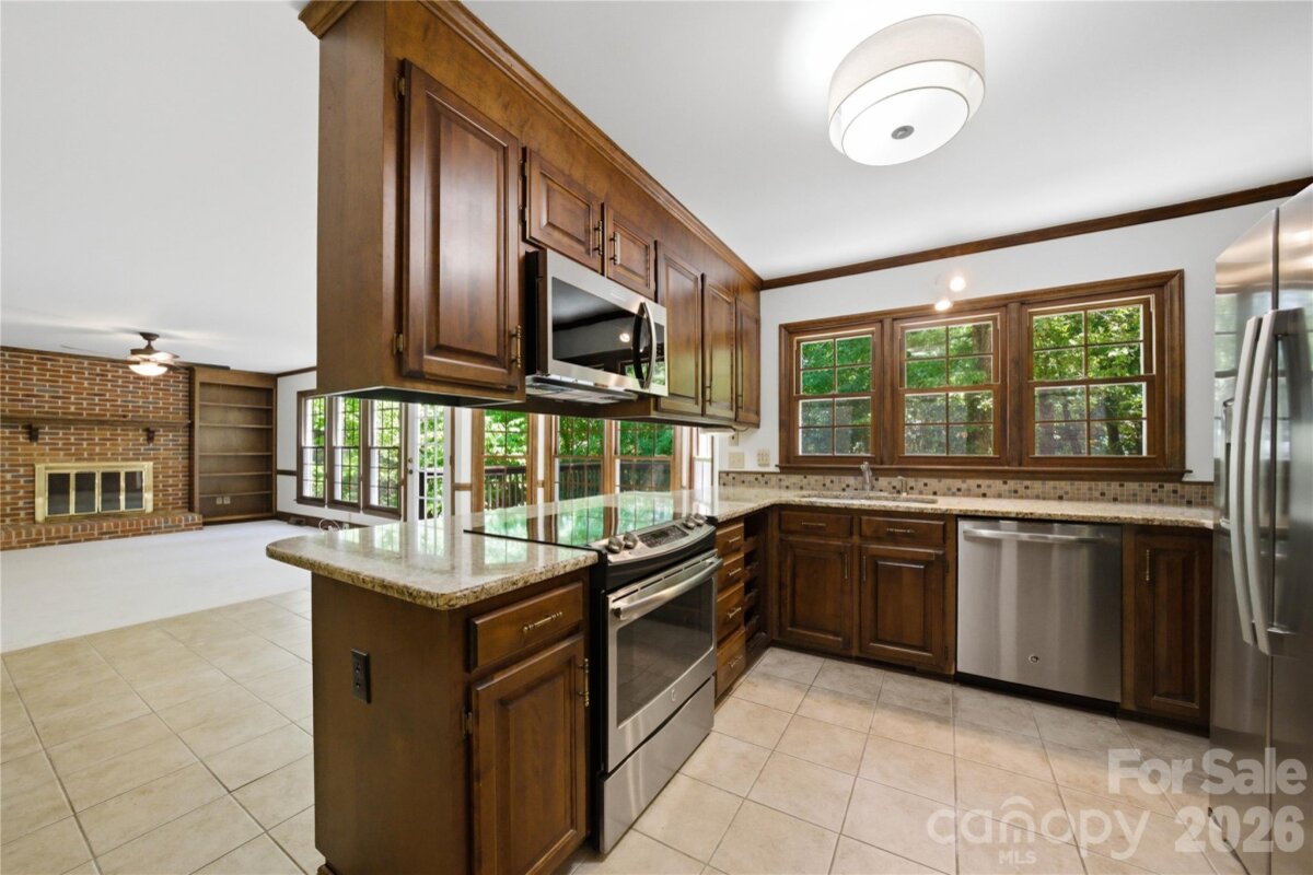 Welcome home! This beautiful traditional style home has enjoyed a true refresh before hitting the market. Updates include a brand-new deck, refinished hardwoods, new carpeting, new lighting and SO much more! Once you pull into the driveway you will feel the tranquility set in! This home is surrounded by mature trees which creates a true canvas of privacy! The deck is completely brand new so you can relax and enjoy your mornings and evenings on this amazing and peaceful space! Once inside you will be delighted by the true traditional and homey feel this offers. The formal dining room and living room are the perfect spots to gather with family and friends. The kitchen is truly delightful with ample space to cook and prepare meals. The breakfast area overlooks the backyard so you can watch the birds as you sip your coffee! This level also offers laundry room and guest bath! Upstairs you will find the spacious primary bedroom which boasts a unique feature- TWO showers and sinks so you can both get ready at the same time to prepare for the day ahead! No more waiting for the primary bathroom to be available on busy mornings! The two additional bedrooms upstairs are ample in size, and one could be a bonus room if you prefer! Hall Bath is generous in size, and the other bedroom has the ensuite bath! But wait- there is MORE! Do not miss the FULL walk-in attic!! TONS of storage space upstairs for all of your collectables! This floorplan is SO unique and you will be enamored with it! The community itself is warm and welcoming, close to shopping, dining and downtown Matthews! Sellers were sad to leave this beautiful home, but it was simply time to downsize! The refrigerator, washer and dryer also convey so you can move right in and have the true comforts of home! Fireplace and chimney sold as-is, no known defects.