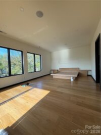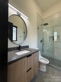 Unparalleled, unobstructed skyline views of Uptown Charlotte from multiple balconies and rooms on multiple floors. Large home with soaring ceilings and wide open floorplan. Huge kitchen with gas range, and oversized center island and separate dining island. Large pantry with sink and mini fridge. Upper floor is the primary bedroom, private balcony, wet bar, and enormous closet at almost 20x20. 5 bedrooms, each with an ensuite bath. Laundry hook-ups in the primary closet as well as laundry room on the 2nd floor. 2nd floor has three bedrooms, 1 full bath and a large 406 SF family room. Bank-owned property; exempt from disclosures. Elevator shaft in place (elevator not installed), an inground pool in place but equipment / pumps, etc, not installed. Some punch-out items incomplete, but home has been occupied. Seller to make no repairs, "as is" offers only.