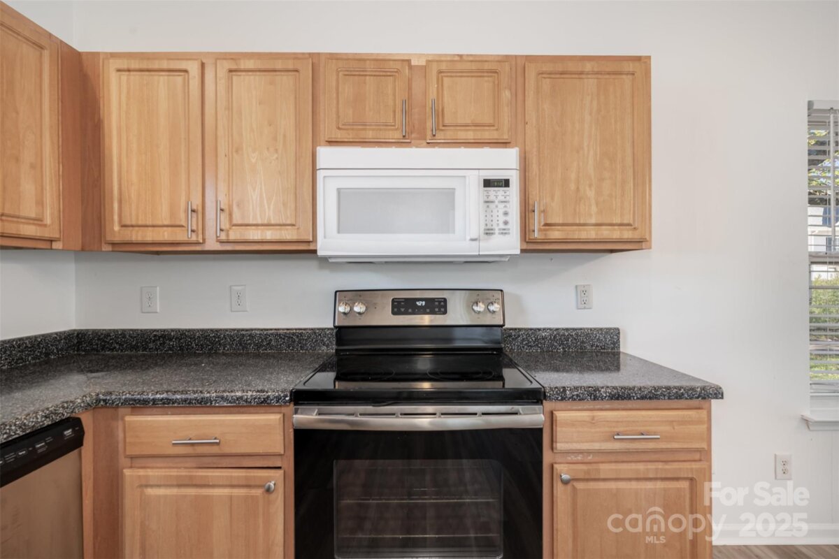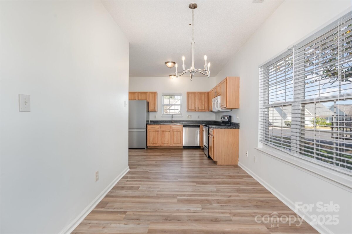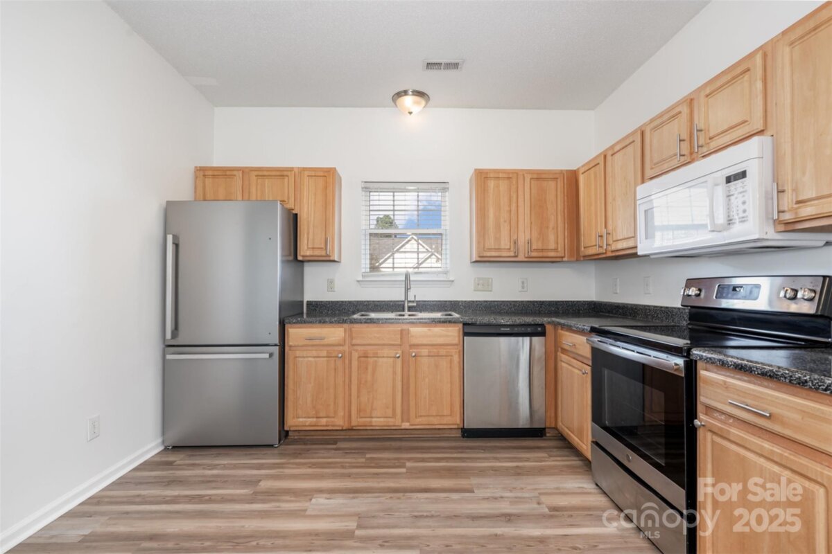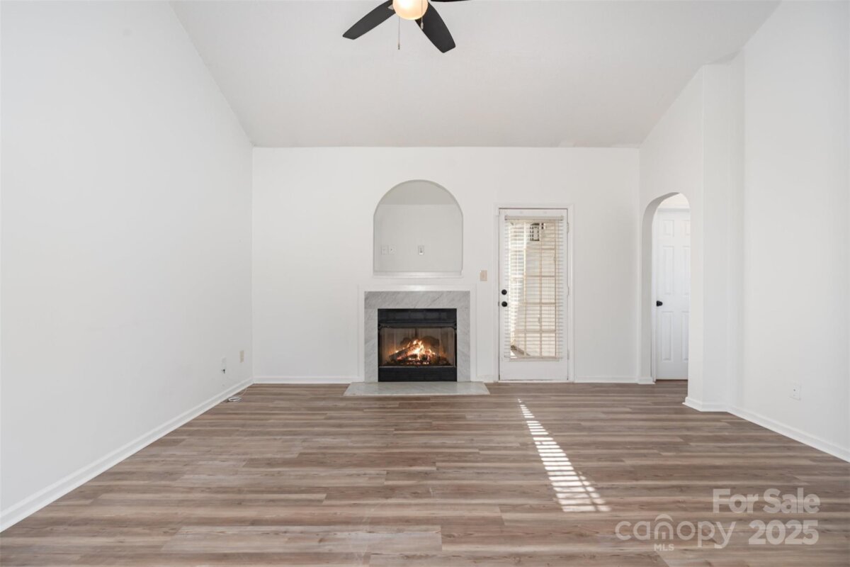 Beautifully updated 3-bedroom ranch on a shaded corner lot offering comfort, style, and convenience. Ideally located between N. Tryon Street and I-85, this home provides easy access to University City, Uptown, shopping, dining, and entertainment. Inside, enjoy fresh interior paint and new luxury vinyl plank flooring throughout. The bright living room with a gas fireplace flows into an open dining area and updated kitchen featuring new stainless steel appliances and light wood cabinetry. The private primary suite includes a relaxing soaking tub and glass shower, while two additional bedrooms offer space for guests or a home office. Step outside to a shaded patio beneath mature trees perfect for relaxing year-round. Major updates include a new roof and HVAC system installed August 2025, giving peace of mind for years ahead. Move-in ready and minutes from local favorites like Topgolf, IKEA and University area amenities!
