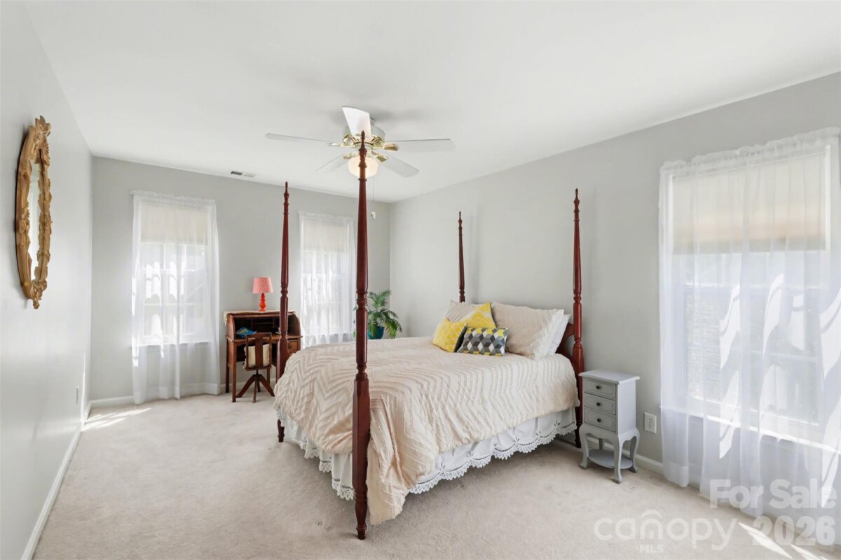 Meticulously maintained home in the desirable Stoney Creek community. The primary suite is conveniently located on the main level, with two additional bedrooms and a spacious bonus room upstairs, perfect for a home office, media space, or playroom. Bonus room also has access to plenty of storage! Major updates provide peace of mind, including a roof approximately five years old, a 2018 HVAC system, new stainless steel appliances, and a hot water heater less than one year old. Step outside to enjoy a beautifully landscaped, fully fenced backyard. The inviting back porch features a retractable umbrella, creating the perfect setting for relaxing on warm summer evenings. This east-facing home is filled with abundant natural light throughout the day, enhancing its warm and welcoming feel. Book your showing today.