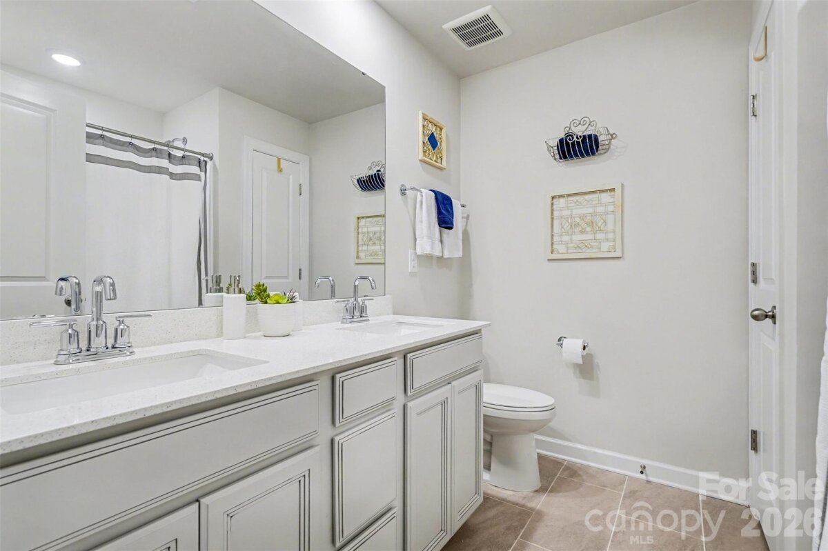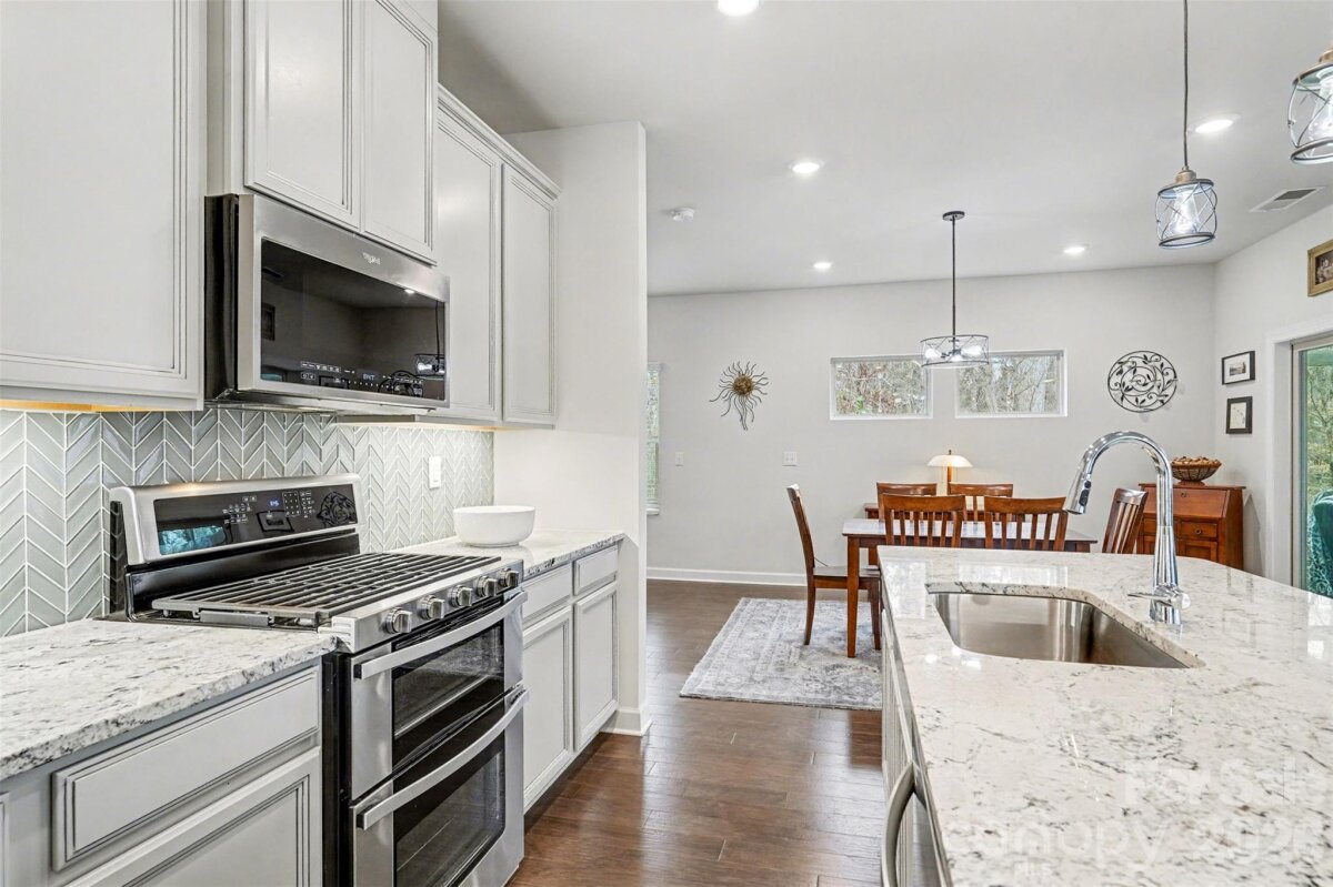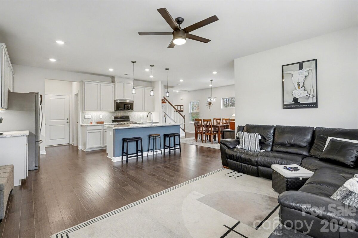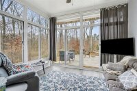 Built in 2020 and beautifully upgraded, this move-in-ready home offers modern design, comfort, and peace of mind. Situated on a private corner lot with wooded views along the back and side, the open floor plan is filled with natural light, ample storage, and thoughtful builder and owner upgrades throughout. The main level features pre-finished wood floors, a spacious dining area with transom window, and a chef-inspired kitchen with white cabinetry, granite countertops, glass tile backsplash, large island with seating, upgraded appliances, and an oversized walk-in pantry. A custom three-season room extends the living space and opens to a travertine patio with seating and a retractable awning—ideal for relaxing or entertaining. Upstairs, the expansive primary suite includes a spa-like bath with a large tiled shower with seat, double-sink vanity, and linen closet. Laundry is conveniently located near the primary suite and upgraded with tile flooring, lower cabinets, and a folding table. Two secondary bedrooms feature walk-in closets, and the secondary bath offers tile flooring, a large double vanity, and linen storage. Additional upgrades include new pendant lighting, six ceiling fans, upgraded Berber carpet, added half-bath vanity, LeafGuard gutter system, and four motion-sensor lights. A two-car garage, long driveway, 0.15-acre lot, transferable builder structural warranty, and energy efficient Meritage built home with spray insulation and fresh-air system add lasting value- see attachments for builder details and owner upgrades. Convenient to shopping, dining, Hwy 485, parks, and public golf. Watch the video, tour in person, and come see why this one stands out.