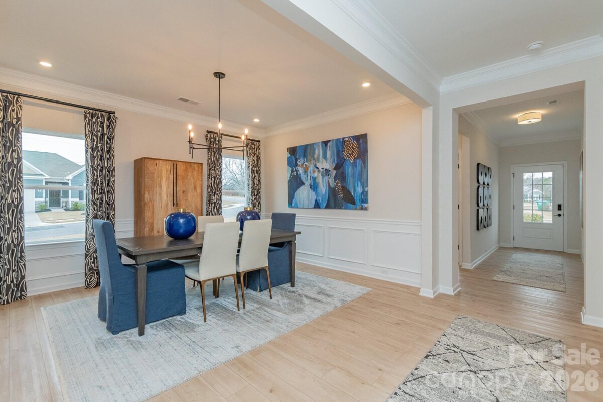 The Avery model home in Pine Bluff is now available for sale! The Avery is that rare ranch style home with 3 spacious bedrooms, 3 full bathrooms and over 2400 square feet of comfortable living space. Upon entering you will step into a sizeable foyer that leads to an ample dining room and opens to a beautifully appointed kitchen. The upgraded kitchen includes 42-inch white cabinets with crown molding, stainless steel appliances, granite countertops, and a seated breakfast bar. As the kitchen opens to the family room, it creates an inviting atmosphere perfect for gatherings and everyday living. The tray ceiling in the family room and primary bedroom add to the spacious feeling of this home. The primary bedroom boasts a luxurious ensuite that includes a walk-in closet, double sinks and a spacious tiled shower and bench - your own private oasis for relaxation. Outside you will enjoy a beautiful corner lot, with a patio and sizeable open area behind the home. Model "extras" include ceiling speakers in the primary and family rooms, crown molding, upgraded lighting and ceiling fans, tiled floors in the bathrooms and laundry room, a linear fireplace, refrigerator, washer, dryer and more. This home is a must see! Located just minutes from Villages at Red Bridge shopping center, Locust Town Center, Red Bridge Golf Club, grocery stores, Rob Wallace Park and a short drive to the 485 beltway, Novant Health Mint Hill Medical Center and Publix. Come visit our model and see this home in person. You will not be disappointed! ASK ABOUT OUR SPECIAL FINANCING AND EXCITING PROMOTIONS!