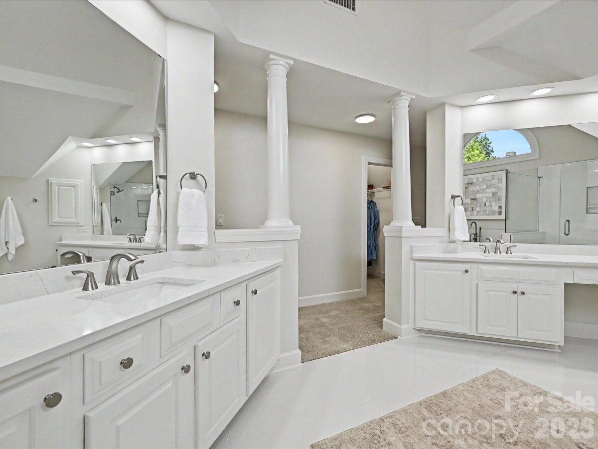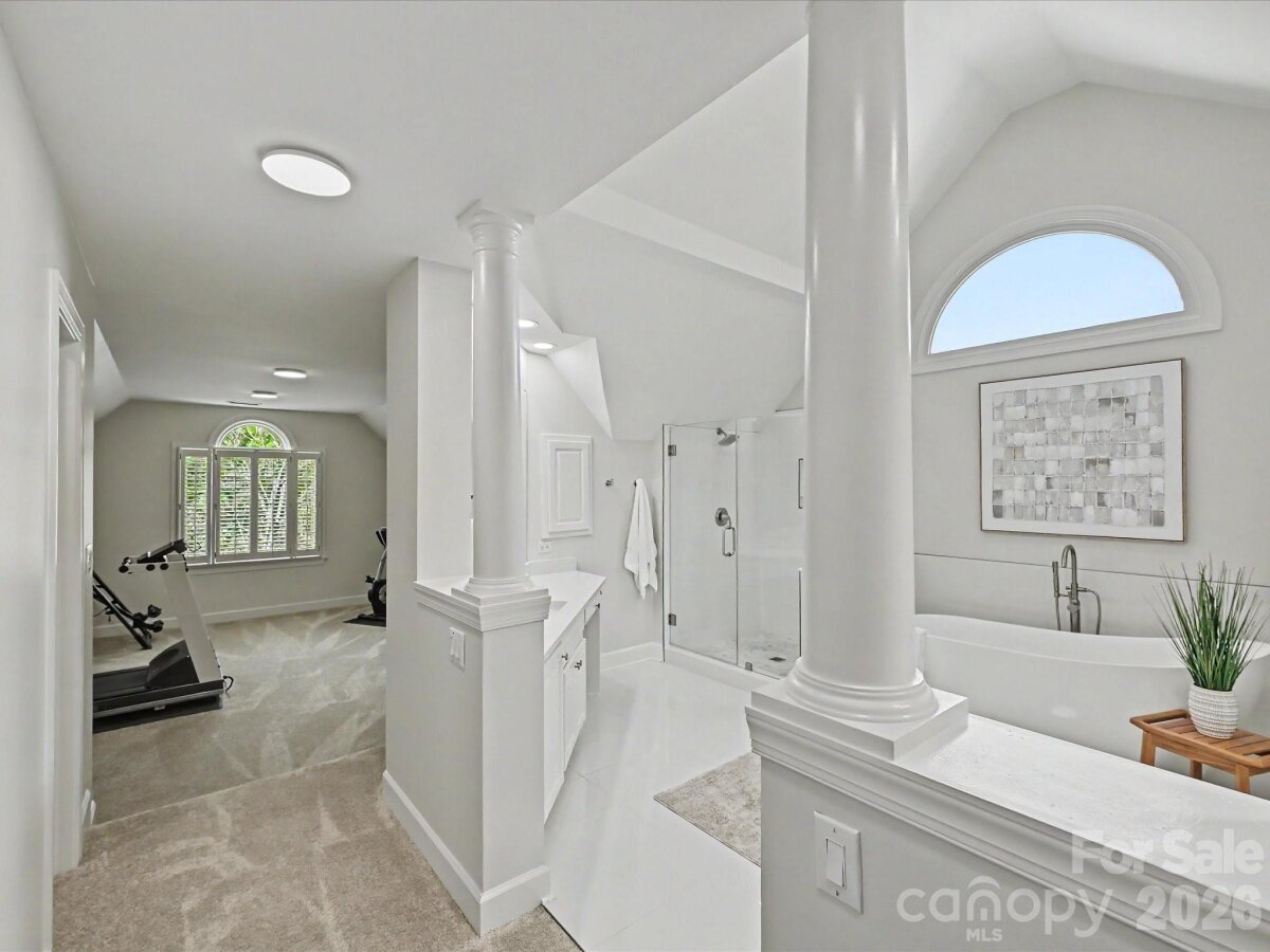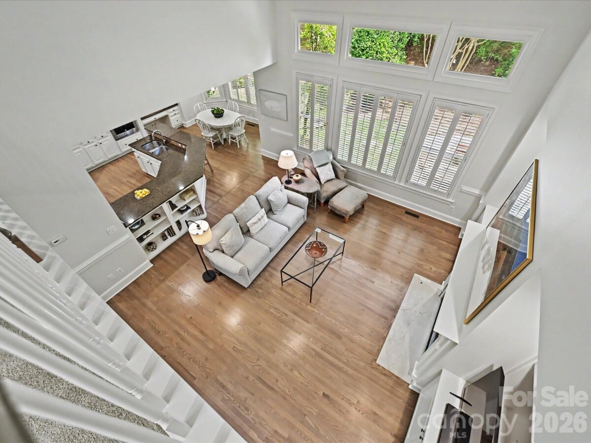 Incredible opportunity to own a beautifully updated full-brick home in highly sought-after Rea Woods—one of South Charlotte’s most desirable, amenity-rich neighborhoods. Tucked within a quiet, cul-de-sac community, this home offers both privacy and convenience just minutes from shopping, dining, hospitals, and the Greenway. Inside, you’ll find a bright, open floor plan anchored by a dramatic two-story great room with a gas log capable fireplace (never been used), seamlessly connected to the eat-in kitchen and breakfast area. The kitchen features updated KitchenAid stainless steel appliances, GE Profile electric cooktop, granite countertops, tile backsplash, and a built-in coffee bar/workstation. Flexible front rooms provide ideal space for a home office, formal dining, or additional living area. Extensive updates throughout include refinished hardwoods, new carpet, fully renovated bathrooms, all new lighting, fresh interior and exterior paint (2026), and new windows (2024). The spacious primary suite offers a sitting area, tray ceiling, and three walk-in closets, along with a renovated (2025) luxurious bath featuring dual vanities, soaking tub, and separate shower. A large bonus space off the primary is perfect for a home office, fitness area, or private retreat. Upstairs includes three generously sized secondary bedrooms with both an en-suite bath and a Jack-and-Jill layout with separate vanities. The third floor provides versatile flex space ideal for a media room, playroom, or additional workspace. Outdoor living is equally impressive with a screened porch for year-round enjoyment, a tiled patio with firepit and seating area, and a fully fenced backyard with mature landscaping, new retaining wall, and great privacy - perfect for both relaxing and entertaining. Additional highlights include a 3-car side-load garage with ample storage, walk-in attic space, and a recently replaced water heater and garage door. Rea Woods residents enjoy exceptional neighborhood amenities including a clubhouse, pool with separate kiddie pool, tennis and pickleball courts, playground, and nearby access to Greenway trails—plus Trader Joe’s and Starbucks just moments away. This home offers the ideal combination of space, updates, location, and lifestyle—ready for its next owner to move right in and enjoy. 5 year home warranty included with purchase. High School assignment is to the new Ballantyne Ridge High School.
