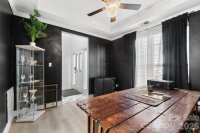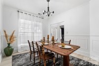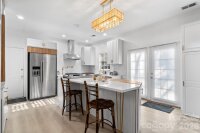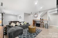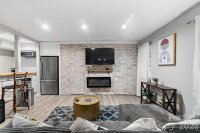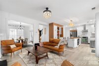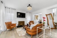 Two homes in one! This fully renovated 5-bedroom, 3.5-bath home features a 4-bedroom, 2.5-bath main residence plus a separate one-bedroom, one-bath apartment on the lower level — complete with its own private walk-in entrance, full kitchen, pantry, separate in-unit laundry and beautifully renovated full bath. The spacious open living area with stone accent wall and electric fireplace offers flexible space for dining, lounging or entertaining, with an additional bonus room for a home office, gym or storage. Whether it’s extended family, guests or rental income, the flexibility here is rare. Upstairs, the main home delivers luxury at every turn. A dramatic two-story foyer with marble-look flooring and statement crystal chandelier sets the tone. The chef’s kitchen features a large center island, professional Jenn-Air range, custom built-in wall unit with open shelving, designer crystal chandelier and French doors to the deck. The main level also includes a formal dining room with wainscoting, a private office with tray ceiling and a show-stopping powder bath with designer damask wallpaper and emerald, green wainscoting. The primary suite offers a tray ceiling, spa-inspired bath with freestanding soaking tub, floor-mount filler, oversized walk-in shower with dual niches and bench, and dual LED backlit vanities. An adjacent bedroom has been converted into a luxurious walk-in closet and dressing room but can easily be converted back to a fifth bedroom. Outside, the home backs to a natural hillside with no rear neighbors. Enjoy the screened porch and large deck overlooking your own private wooded retreat. Located on a quiet loop street with no through traffic in Highland Creek, within walking distance to the Highland Creek Club and neighborhood amenities, this home offers both lifestyle and location in one of Charlotte’s most established golf communities. 2-year home warranty included. This home must be seen in person to be fully appreciated.