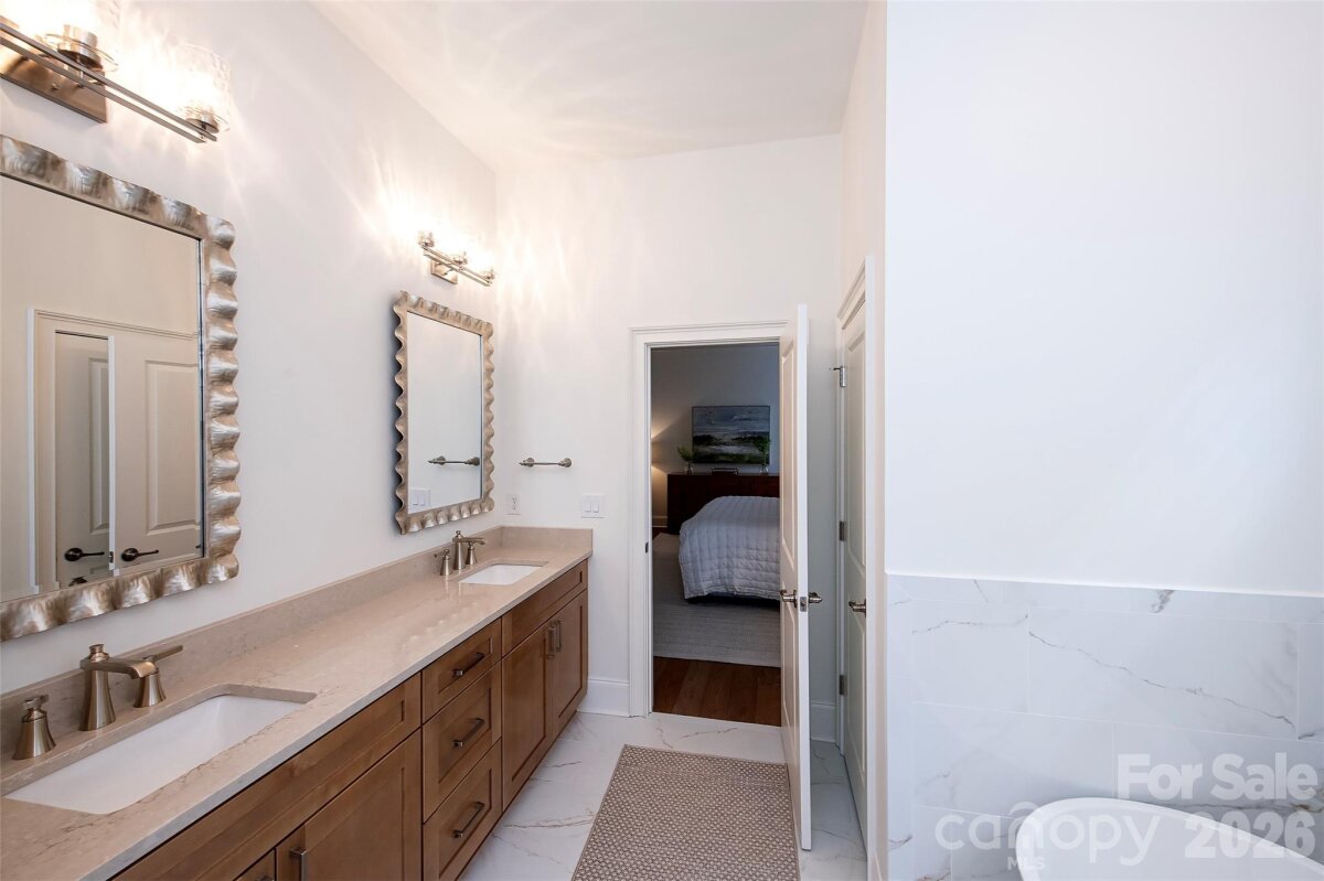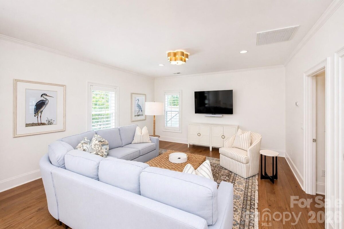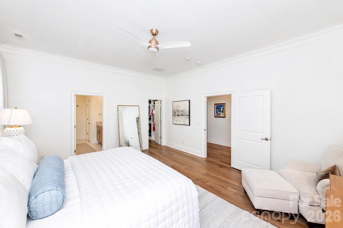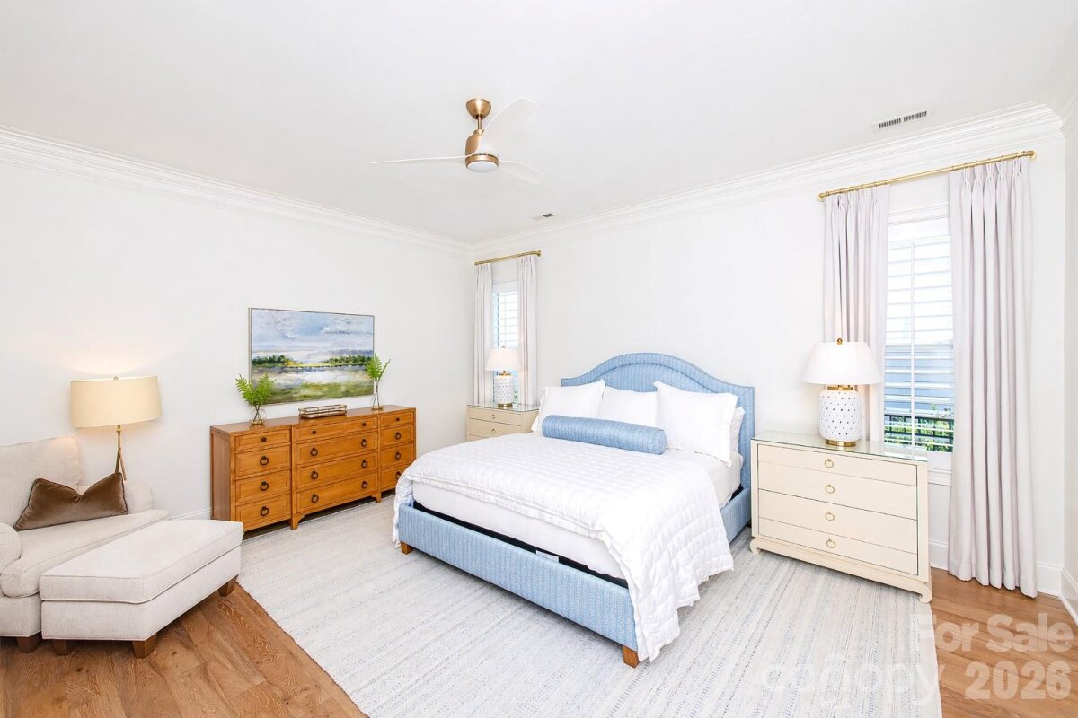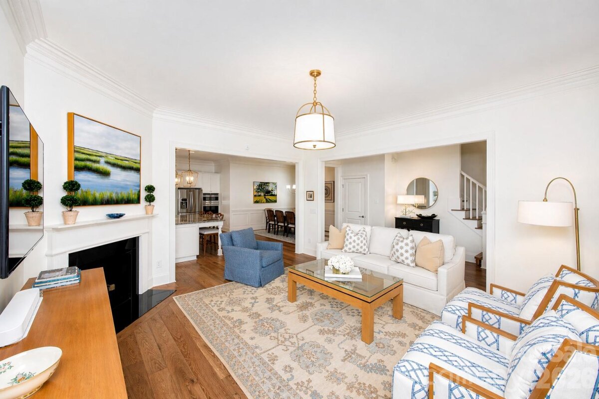 Charleston-style elegance meets magazine-worthy design at 623 Hambley House, where Southern Living comes to life. Recently renovated and impeccably presented, this home stands out for its exceptional condition, timeless style, and thoughtful updates. A deep front porch framed by azaleas is perfect for morning coffee with green area just across the street, while triple living room windows fill the home with natural light and blur the line between indoors and out. Step outside to a private, low maintenance patio designed for al fresco dining, gas grilling, or relaxed evenings under the open sky. Inside, sophisticated finishes and architectural details shine throughout, including curated fixtures, current designer colors, new oak flooring, plantation shutters, custom windows, a leaded glass front door, crown molding, and wainscoting. The open-concept floor plan is ideal for both everyday living and entertaining, with a dining area that flows seamlessly into the kitchen and main living spaces. The kitchen features a gas range, stainless steel appliances, under-cabinet lighting, a new tile backsplash, and an eat-in island. The main-level primary suite offers convenience and comfort, complete with an expansive custom closet. The newly renovated, luxurious en-suite bath includes dual sinks, a soaking tub, separate shower, updated tile and fixtures, a linen closet, and a private water closet. Nearby, the laundry room adds everyday functionality on the main level adjacent to the primary closet. The powder room overlooks the fenced patio with climbing roses and is filled with natural light. Upstairs, a separate living area provides flexible space for lounging, working from home, or both. Spacious secondary bedrooms with generous closets share an oversized Jack-and-Jill bath. Additional attic space offers ample storage. A one-year-old HVAC system with a smart Ecobee thermostat adds efficiency and peace of mind. Additional upgrades include a newer water heater, whole-house surge protector, new dishwasher, updated interior and exterior lighting, added laundry room storage, and recently insulated attic space with easy access, new sod and irrigation system, low voltage lighting, new microwave/convection oven, granite in powder room, and even new toilets downstairs. Primely located in a thoughtfully designed master-planned community, this home enjoys charming streetscapes, nearby parks and amenities, and walking trails. Springfield offers an all inclusive resort-like experience centered around a scenic golf course winding through wooded terrain along Sugar Creek. Residents enjoy access to a clubhouse, pools, fitness center, tennis and pickleball courts, playground, pavilion, miles of trails, and a five-acre amenity center. With nearly half the community preserved as natural space, plus pocket parks and regular neighborhood events, the setting feels both vibrant and relaxed. Located in The Villas section, lawn maintenance is included through the HOA, offering a truly low-maintenance lifestyle. Anne Springs Close Greenway membership is also included, providing access to more than 2,100 acres of preserved land with trails, equestrian facilities, kayaking, and seasonal events. Conveniently located near the farmers market, shopping, dining, top-rated Fort Mill schools, I-77, and Charlotte Douglas International Airport.
