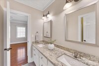 Nestled in the desirable Glynmoor Lakes section of Piper Glen, this expansive home sits on a beautifully landscaped .84-acre lot backing to the lake, offering both privacy and serene views. A circular driveway and three-car garage provide impressive curb appeal and convenience. The fenced backyard is perfect for outdoor enjoyment, while the sunroom provides a peaceful space to relax and take in the natural surroundings. Inside, abundant natural light fills the home, especially in the kitchen, where numerous windows and a spacious island with ample counter space make it ideal for cooking and gathering. Elegant details such as intricate crown molding enhance the home’s timeless character. The main-level primary suite offers comfort and accessibility, while four spacious bedrooms upstairs, all with hardwood flooring, also feature direct access to full bathrooms. Flexible living space throughout, with a large bonus room, media space and home office. Freshly painted interior with new carpet upstairs, this move-in ready home is designed for both everyday living and entertaining.