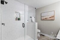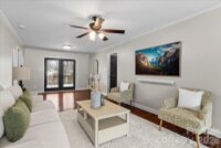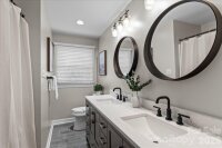 Renovated 4BR/5BA home on 1.2 acres within walking distance to Downtown Mooresville and Bellingham Park—no HOA! Enjoy 4,070 sq ft of updated living space with a designer kitchen featuring marble counters, stainless appliances, shaker cabinets, and a farmhouse sink. Each bedroom has its own bath. Upgrades include new roof/gutters (2019), HVAC and mini-split (2020), stylish lighting, and fresh paint inside and out. Step outside to a 72’ x 15’ elevated deck that spans the back of the home – perfect for morning coffee, outdoor dining, and large gatherings. A detached outdoor bar area creates a one-of-a-kind space for entertaining – watch the big game or host barbecues with friends and family in your private backyard oasis. The finished basement offers a rec room, workshop, and extra storage. Located in the desirable Mooresville Graded School District, this home combines space, style, and walkable convenience. Rare find with acreage this close to town!