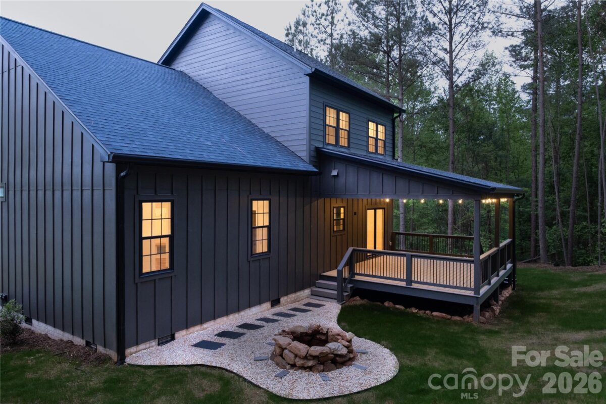 No city taxes or HOA! This rare 1.6-acre property offers exceptional privacy in a scenic wooded setting with partial lake views. Thoughtfully designed with high-end Forno appliances, custom trim and moldings, Bluetooth bath fans, 4" plank oak hardwood, and integrated soffit lighting outlets. The open floor plan boasts soaring ceilings, a spacious custom drop zone, and a full laundry room with quartz-topped utility sink. The luxurious primary suite features a tiled glass shower and custom built-in walk-in closet. Enjoy the large deck and fire pit at the adjacent lower patio area; perfect for entertaining or peaceful evenings outdoors. Professionally designed landscaping frames the home with natural beauty and space to garden or play. Plus, there’s an additional 200 sq ft of walk-in attic space ready to finish for future expansion. All this with a reasonable commute to the Charlotte and Triad metro areas, and a quick drive to Boone, offering modern luxury, privacy, and space to grow.