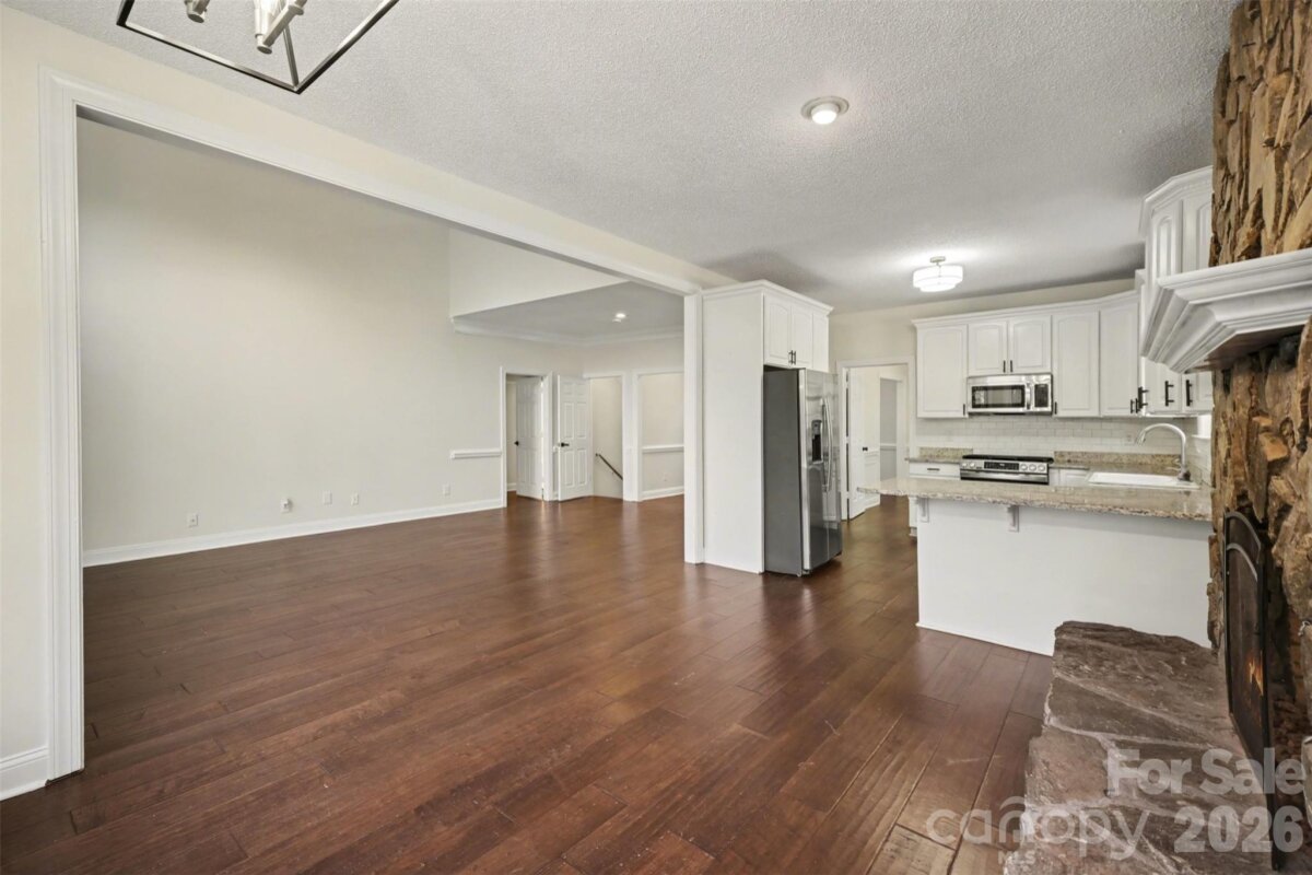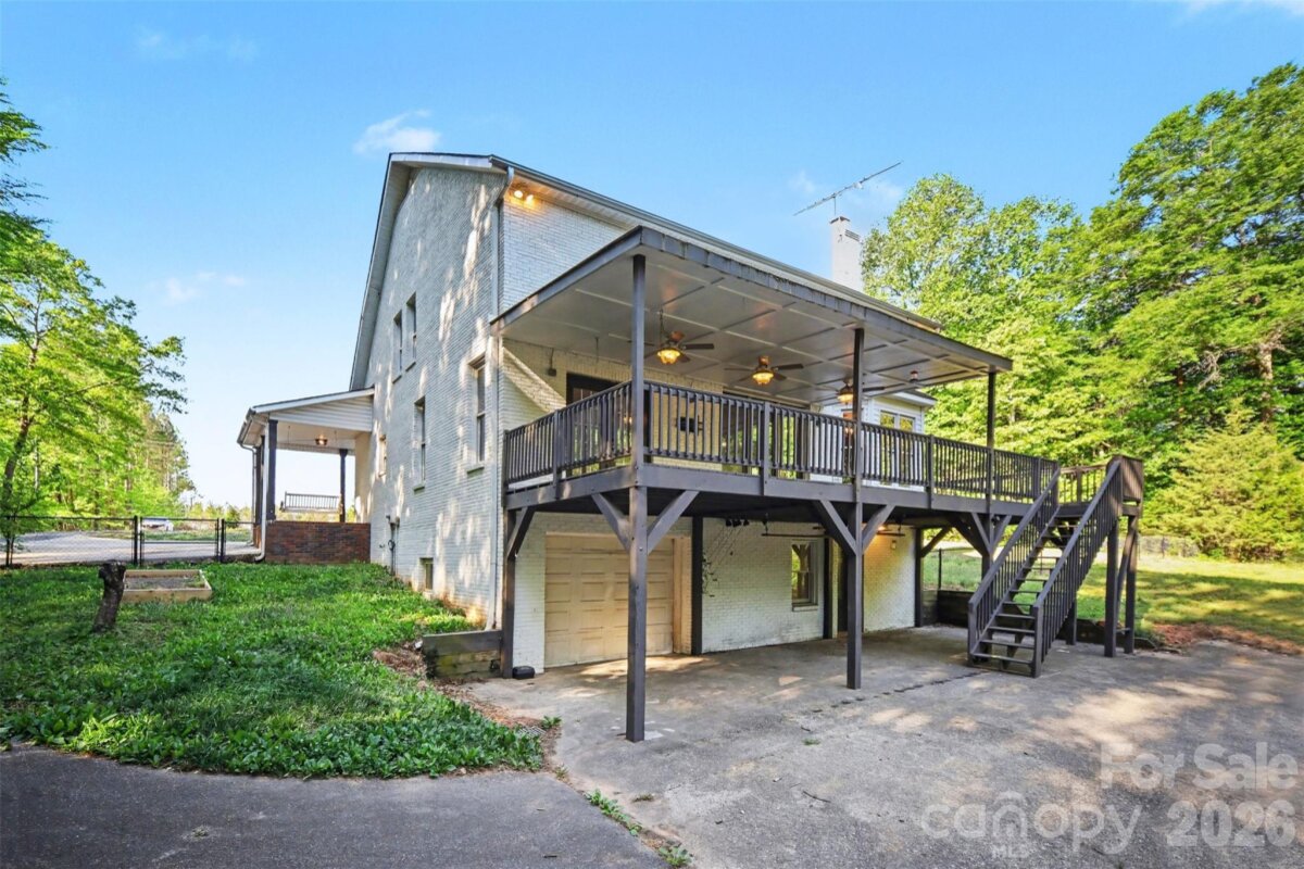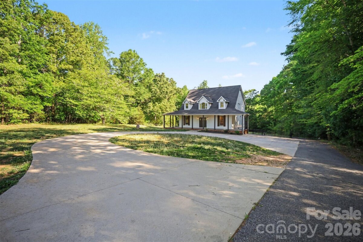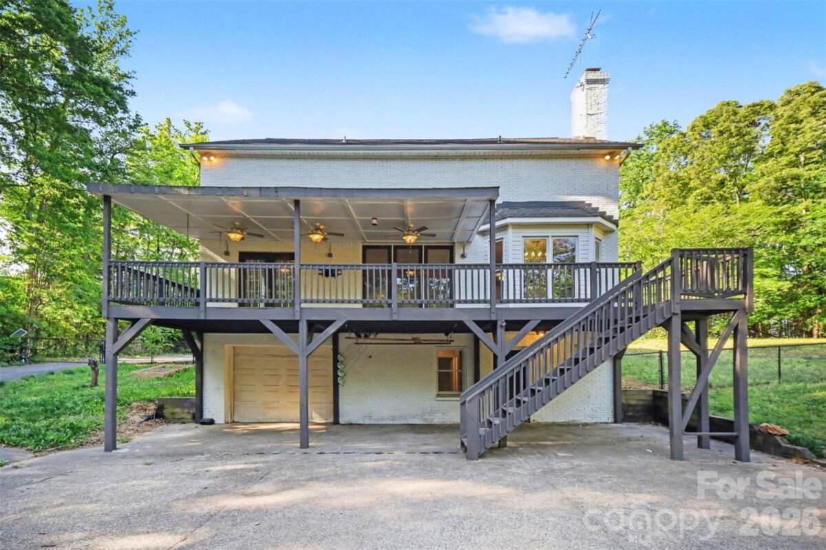 Come check out this beautiful modern home on 1.4 private acres with NO HOA that is just minutes to Lake Wylie and a quick commute to Charlotte. Open-concept layout with a huge two-story foyer and great room, plus hardwoods throughout the main level. The upgraded kitchen features granite counter tops, custom backsplash, stainless steel appliances, pull-out shelving, and dual lazy Susans. Main-level primary suite features dual vanities, custom tile, garden tub, and a large walk-in shower. Spacious bedrooms and abundant storage throughout. A fully finished basement adds flexible living space. The rear-entry garage and automated driveway gate enhance privacy. The spacious fenced in backyard backs up to a large wooded area, with a wraparound front porch and expansive rear deck this home is perfect for entertaining. Major bonus: roof replaced in 2019.