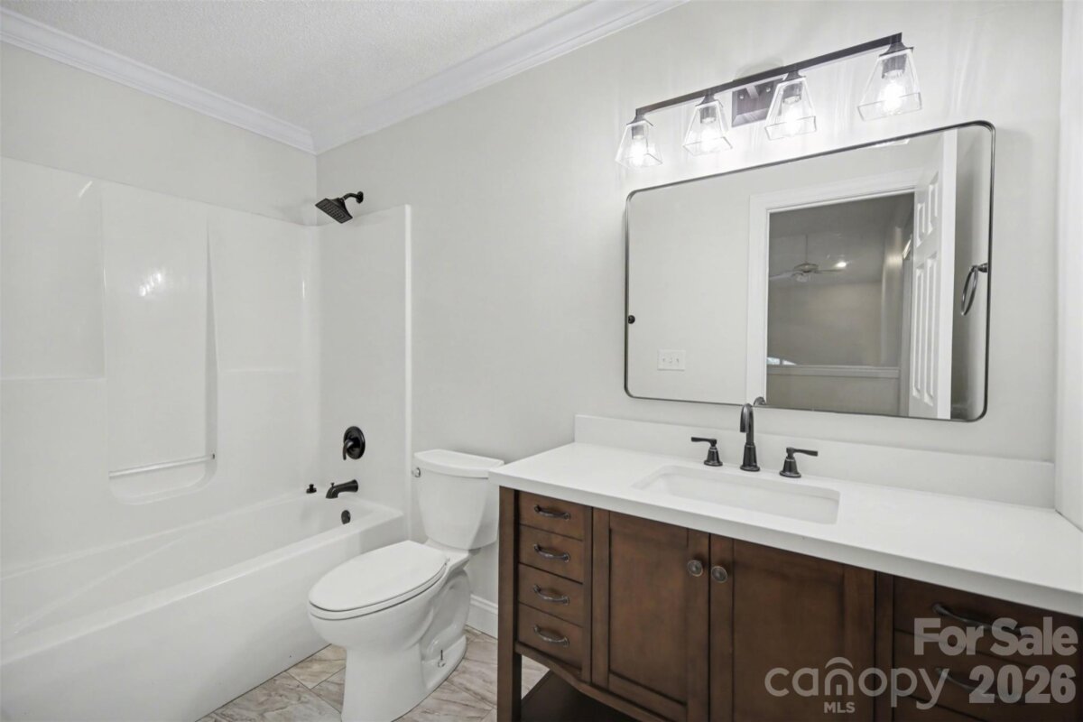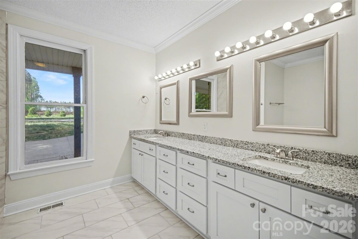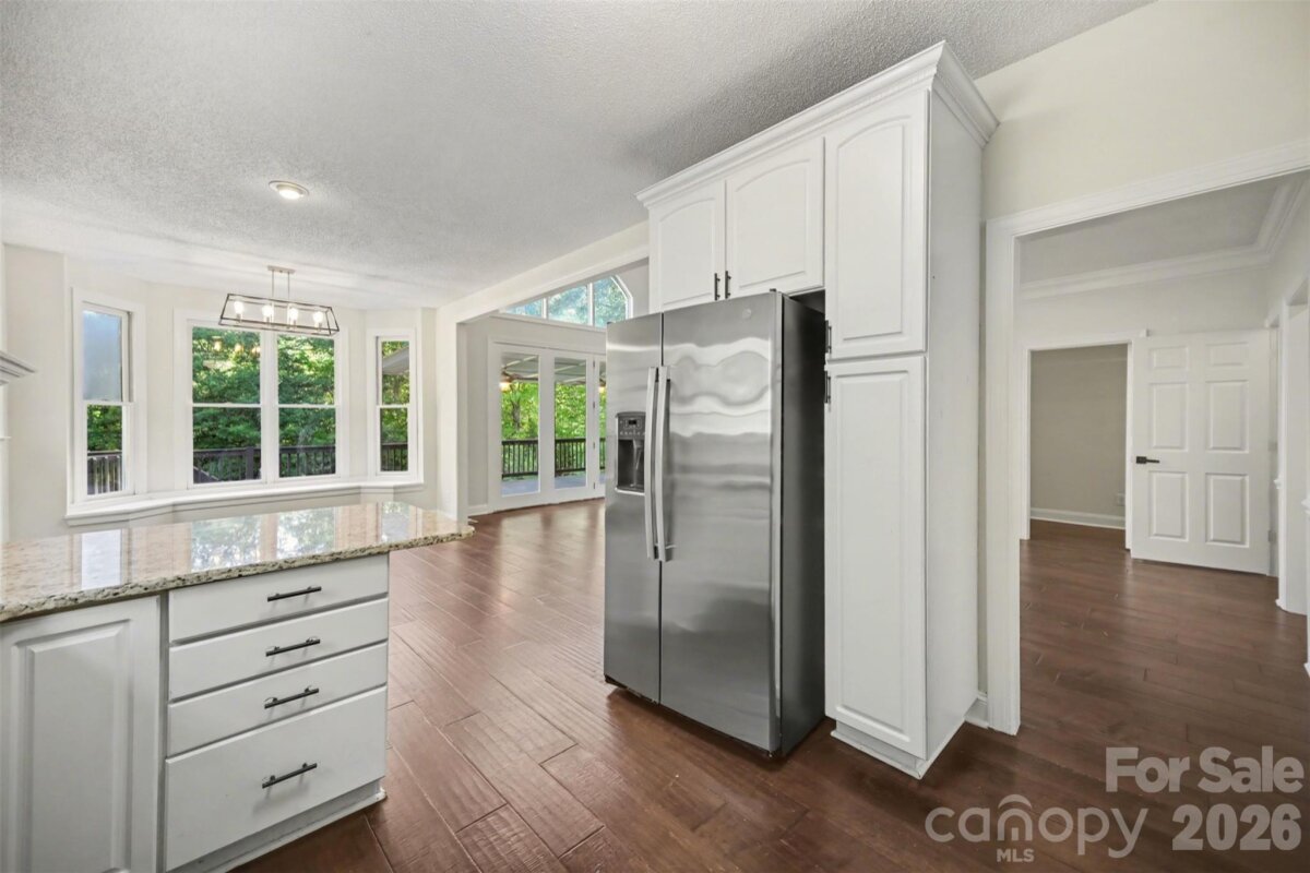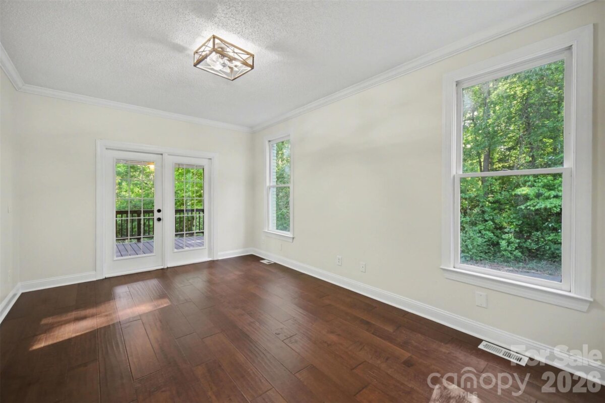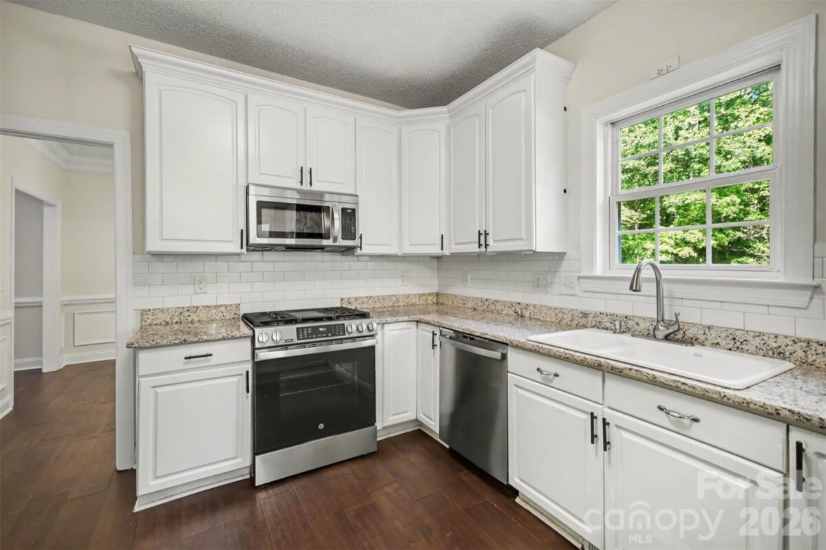 Come check out this beautiful modern home on 1.4 private acres with NO HOA that is just minutes to Lake Wylie and a quick commute to Charlotte. Open-concept layout with a huge two-story foyer and great room, plus hardwoods throughout the main level. The upgraded kitchen features granite counter tops, custom backsplash, stainless steel appliances, pull-out shelving, and dual lazy Susans. Main-level primary suite features dual vanities, custom tile, garden tub, and a large walk-in shower. Spacious bedrooms and abundant storage throughout. A fully finished basement adds flexible living space. The rear-entry garage and automated driveway gate enhance privacy. The spacious fenced in backyard backs up to a large wooded area, with a wraparound front porch and expansive rear deck this home is perfect for entertaining. Major bonus: roof replaced in 2019.