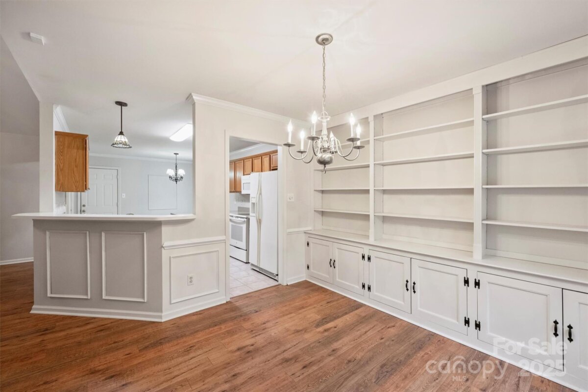 Nestled in the peaceful community of Sardis By The Park, 629 Kelford Lane offers coveted one-story living in an ideal location. With over 1700 sq ft, this spacious 3 bedroom, 2 bath ranch home is move-in ready and has an open floorplan perfect for easy living and entertaining family and friends. Beautiful, wide-plank flooring throughout main living spaces and bedrooms. Inviting living room with vaulted ceiling leads to light-filled dining room with built-in shelves. Primary suite includes ensuite bath, large walk-in closet, and attached study. Cozy, all-season sunroom opens to brand new deck overlooking expansive, private backyard perfect for gardening, playing, or bird-watching. With McAlpine Greenway behind, this home is a serene oasis close to the city. Access to the greenway is just a few homes away. Desirable location close to shopping and restaurants with easy access to SouthPark, Matthews, and Uptown.