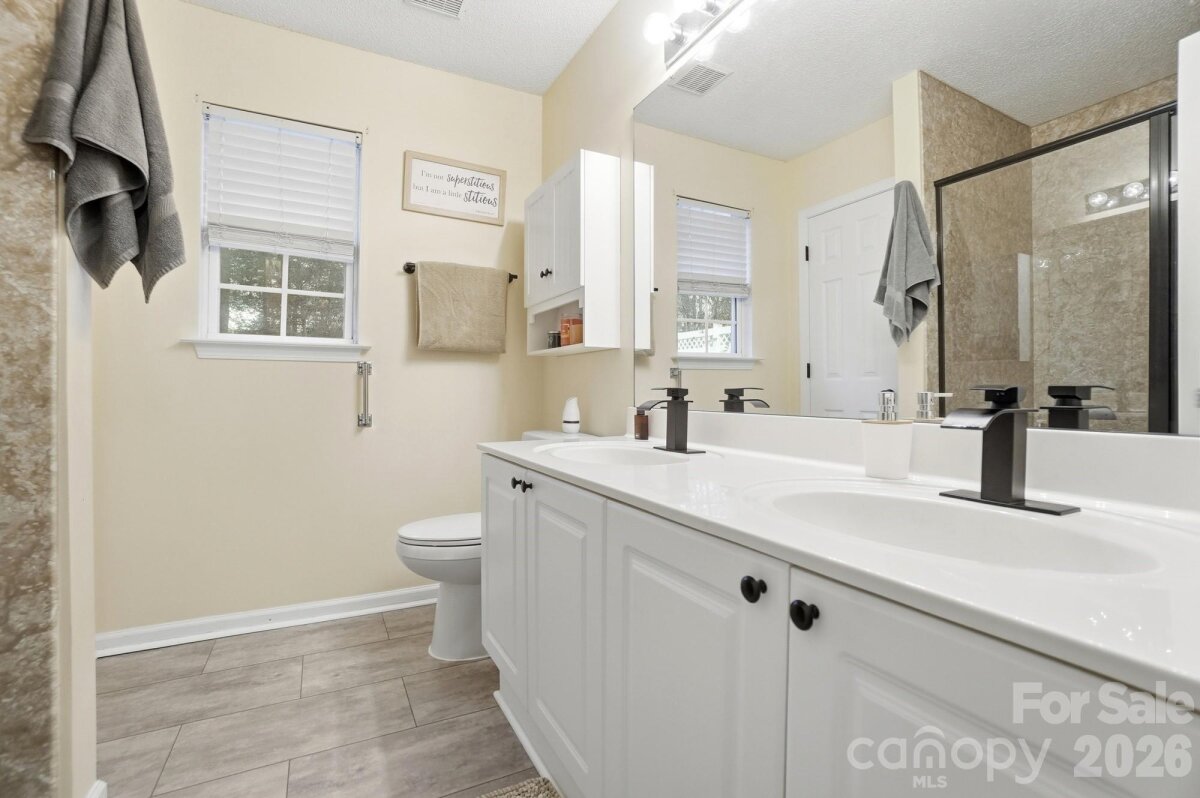 Welcome to this beautifully updated 3-bedroom, 2-bath home featuring a desirable split bedroom floor plan. Recent updates include fresh interior paint, newer flooring, new light fixtures, updated door hardware, a new front door, and new faucets throughout. The kitchen shines with freshly painted cabinets and newer appliances, while added cabinets over the washer and dryer provide extra storage. Enjoy peace of mind with a roof only 6 years old. Step outside to a fully fenced backyard complete with an awning, fire pit, sprinkler system, and fresh landscaping—perfect for entertaining or relaxing. Cozy up indoors by the fireplace during cooler months. Located in an amenity-rich community offering a clubhouse, playground, and pool, and conveniently close to I-77, shopping, dining, and entertainment. This move-in ready home truly has it all!