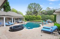 Wow! This luxurious estate series home with an amazing pool, patio, pool house with spa, outdoor kitchen plus entertaining space galore is really a unique gem in Charlotte! Located in the quiet side of Piper Glen in the middle of a cul-de-sac this home offers over 3/4acre lot and tremendous features and value. The drive-up is stunning- through the covered porte-cochere into your oversized 3 car garage and motor-court area. Enter the home through the garages into the mud room (or through the beautiful double door entry) and you are met with an abundance of curated spaces. The 2-story living room offers loads of natural light and views of the show-stopping pool and pool house, with a tucked-in bar & wine storage area, an entertainers dream! The kitchen is large and very functional with both an island and a peninsula that is truly the heart of the home. New 5-burner downdraft gas cooktop plus a pantry, plenty of cabinetry, a butlers pantry area and an amazing curved glass window overlooking the entire back yard. Off the kitchen is a cozy yet modern family room featuring a fireplace and built-in custom cabinetry. The formal dinning area has been tastefully updated with a beautiful chandelier and art sconce lighting. Across the entry is a lovely office/den space with beautiful woodwork and a fireplace. The primary suite is also on the main level and offers a peaceful retreat with an amazing spa-like bathroom, zero door/entry shower, soaking tub, and both dual WC's & walk-in closets! Upstairs features 4 very spacious bedrooms and 3 full baths, plus cool little nooks & rooms with endless opportunities. Another bonus room space, another office, a craft room, or just space to keep the littles separated :) And we didn't forget the pool house! A large bonus-room like space with a wet bar and fireplace is great for enjoying afternoons around the pool or games/sports. Then, you head down the hall and enter your own private spa equipped with a steam shower room, sauna, and bathroom/shower! The outdoor entertaining space is really the show-stopper- a large & deep pool with water features sets below a stunning black hot tub that overflows into the pool, above that is a covered & heated patio area right off the kitchen & living rooms. An outdoor kitchen completes the back yard. This truly is an exceptional estate level home with upgrades and spaces that are exceptional, tasteful, and unique. If you have been looking for your entertainers dream home this is a must see!