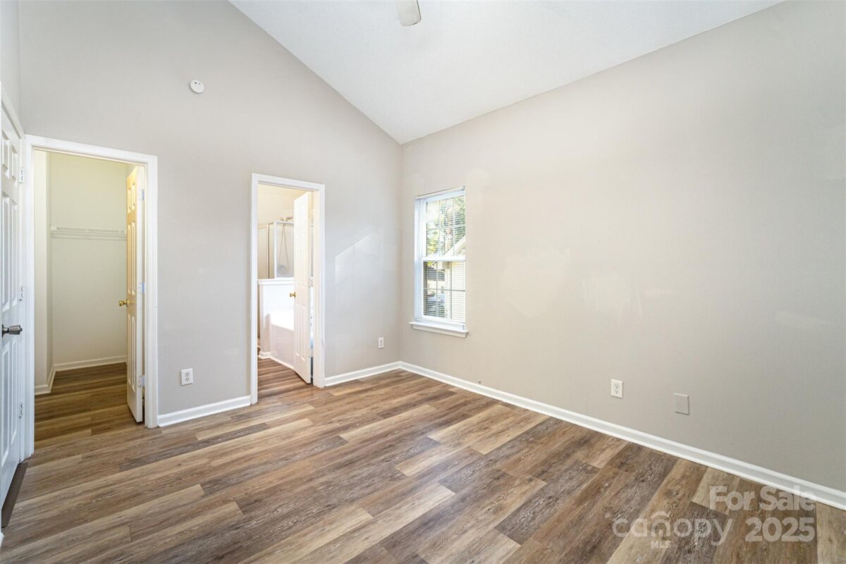 Welcome to your perfect starter home! This charming 3-bedroom, 2-bath ranch-style residence has been freshly updated and is move-in ready. Conveniently located between N. Tryon Street and I-85, you'll enjoy quick access to everything Charlotte has to offer, including the vibrant University area. Step inside to discover NEW interior paint and NEW luxury vinyl plank (LVP) flooring throughout, creating a cohesive and modern feel. The open-concept living area flows seamlessly through an inviting archway into the kitchen, which features warm light wood cabinetry—perfect for both daily living and entertaining. The primary suite includes a private en-suite bath with a soaking tub and a separate shower. Two additional bedrooms and a full hallway bath offer flexible space for family, guests, or a home office. Step outside to the side yard patio, ideal for year-round grilling and check out the oversized shed for all your storage needs. Located close to grocery stores, restaurants, and popular attractions, including IKEA- this home combines comfort, convenience, and charm—all at an unbeatable value.