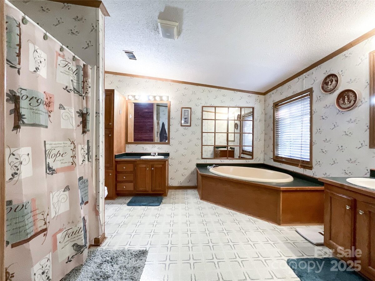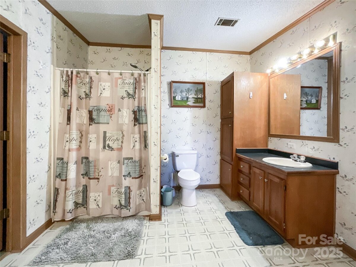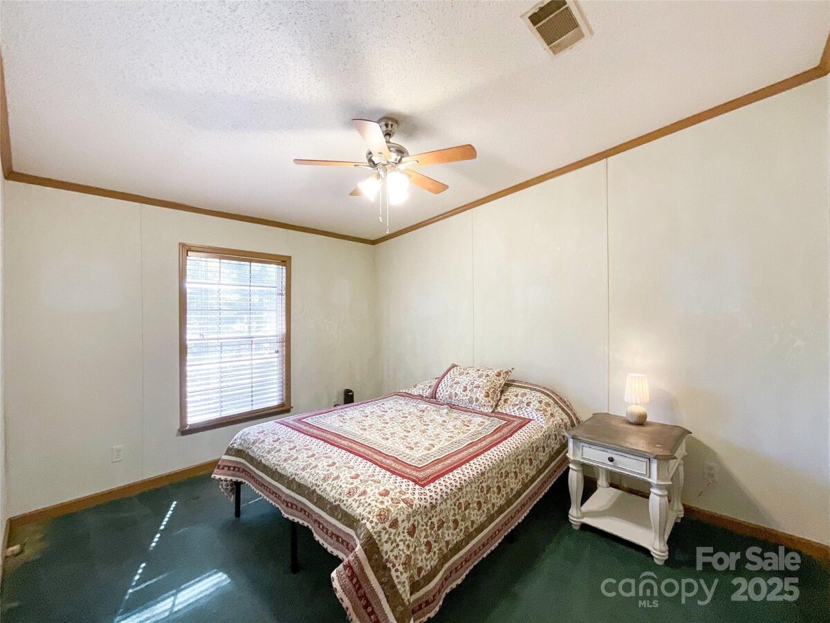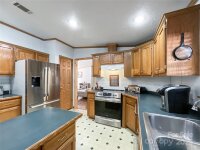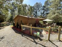 (New light beige carpet to be installed in 3 bedrooms on Oct. 28). Lovely and private, this 3-bedroom, 2.5-bath home sits on 1.56 acres surrounded by nature. The spacious layout features a welcoming living and dining room combination, plus a cozy den with a gas fireplace just off the large kitchen — complete with a movable island, abundant cabinets, generous counter space, and stainless steel kitchen appliances which are 2 years old - the stove offers a variety of cooking choices. The split floor plan offers a private primary suite on one side of the home with two closets and a full bath with a garden tub and shower. On the other side of the living room are two secondary bedrooms with walk in closets and full bath. New light beige carpet to be installed on Oct. 28). Enjoy the outdoors from the back wood deck, perfect for relaxing or entertaining. RV hookup with 30 amp. Additional highlights include an encapsulated crawl space, two outbuildings, one wired 220 and the other could easily be used as a small barn. Some furniture is also available for sale. This home is ideal for first-time buyers looking for a peaceful setting with plenty of space and comfort. Transferable home warranty.