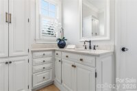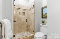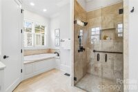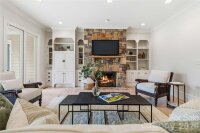 Welcome to a stunning single-family residence on over an acre of land, nestled in the heart of South Charlotte. This expansive home offers a perfect blend of elegance and functionality, ideal for both relaxation and entertaining. At the heart of the home, the kitchen offers ample space for culinary enthusiasts featuring custom wood cabinetry, high-end appliances, large island, and eat-in dining area. The formal dining room is perfect for hosting dinner parties, while the living room features oversized windows and doors out to covered porch overlooking serene and private backyard, a cozy stone wood-burning fireplace with gas igniter, and built-in shelving. The primary suite features large windows overlooking private backyard and entrance to covered porch, dual walk-in closets, a spa-like ensuite bathroom with a separate shower and tub, and a large custom double sink vanity with tons of storage. Dual walk-in closets provide generous storage space, adding to the home's practical design. Additional features include an additional bedroom on main with ensuite bathroom, a detached 3-car garage with huge attic space above for extra storage, workshop, or could become additional finished space. The expansive outdoor spaces are a true delight, with a private patio and yard, beautifully landscaped with a garden and lighting. Enjoy leisurely afternoons on the porch or entertain guests in the spacious backyard, perfect for outdoor gatherings.