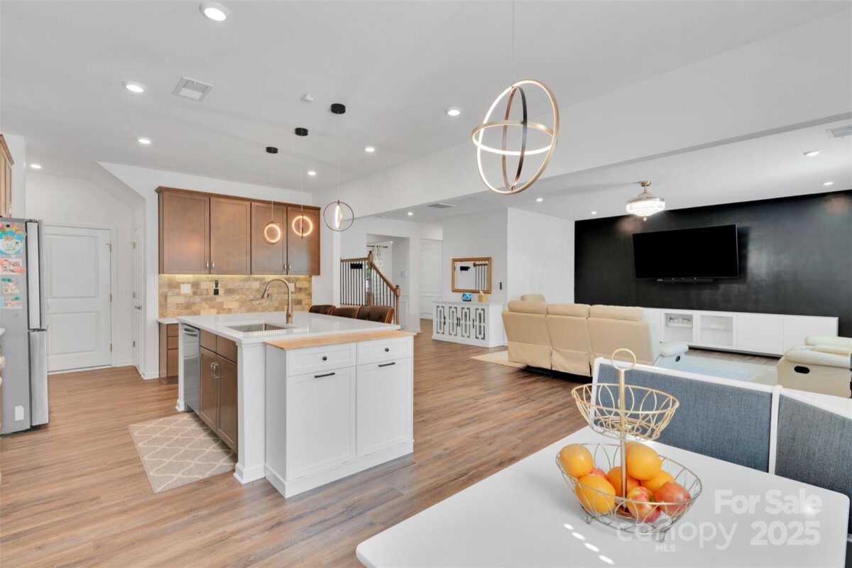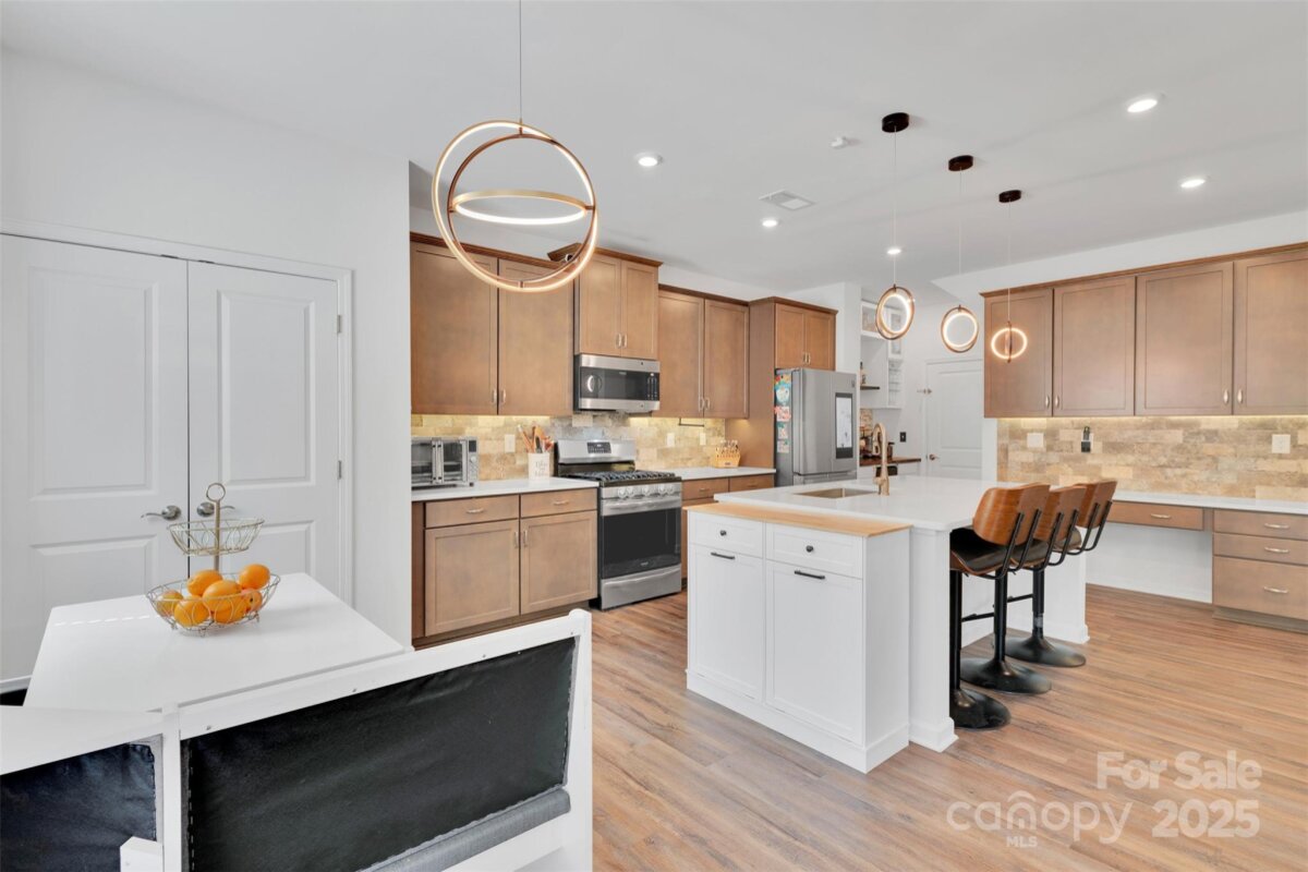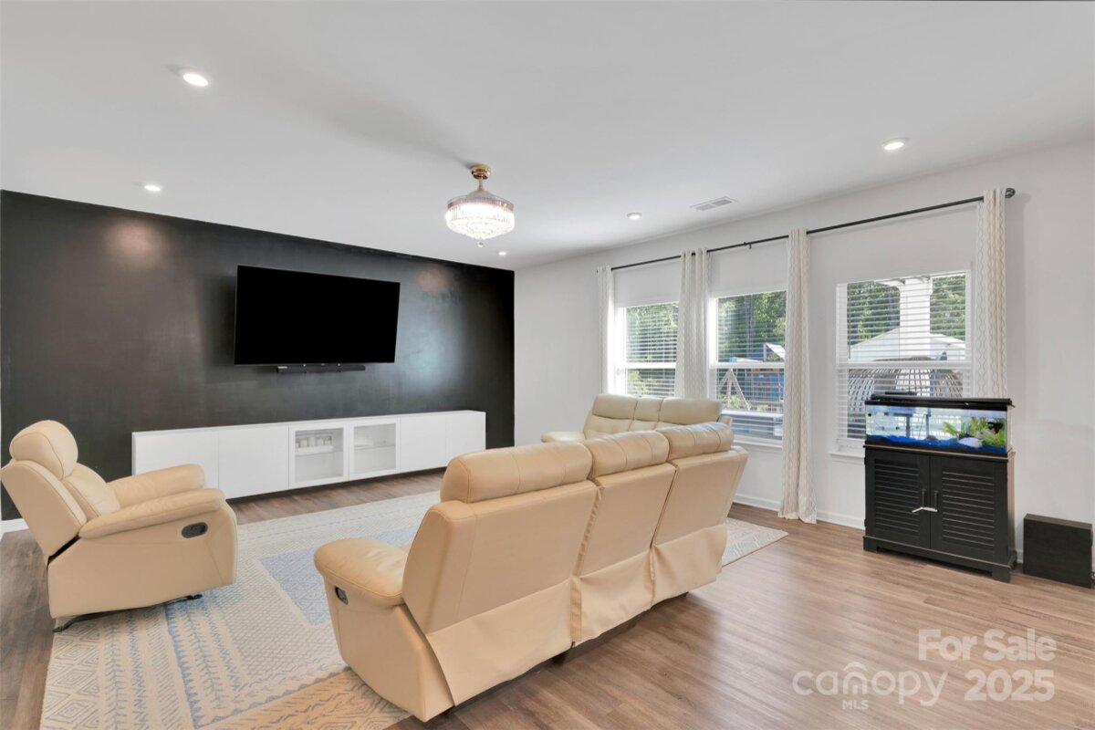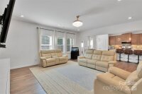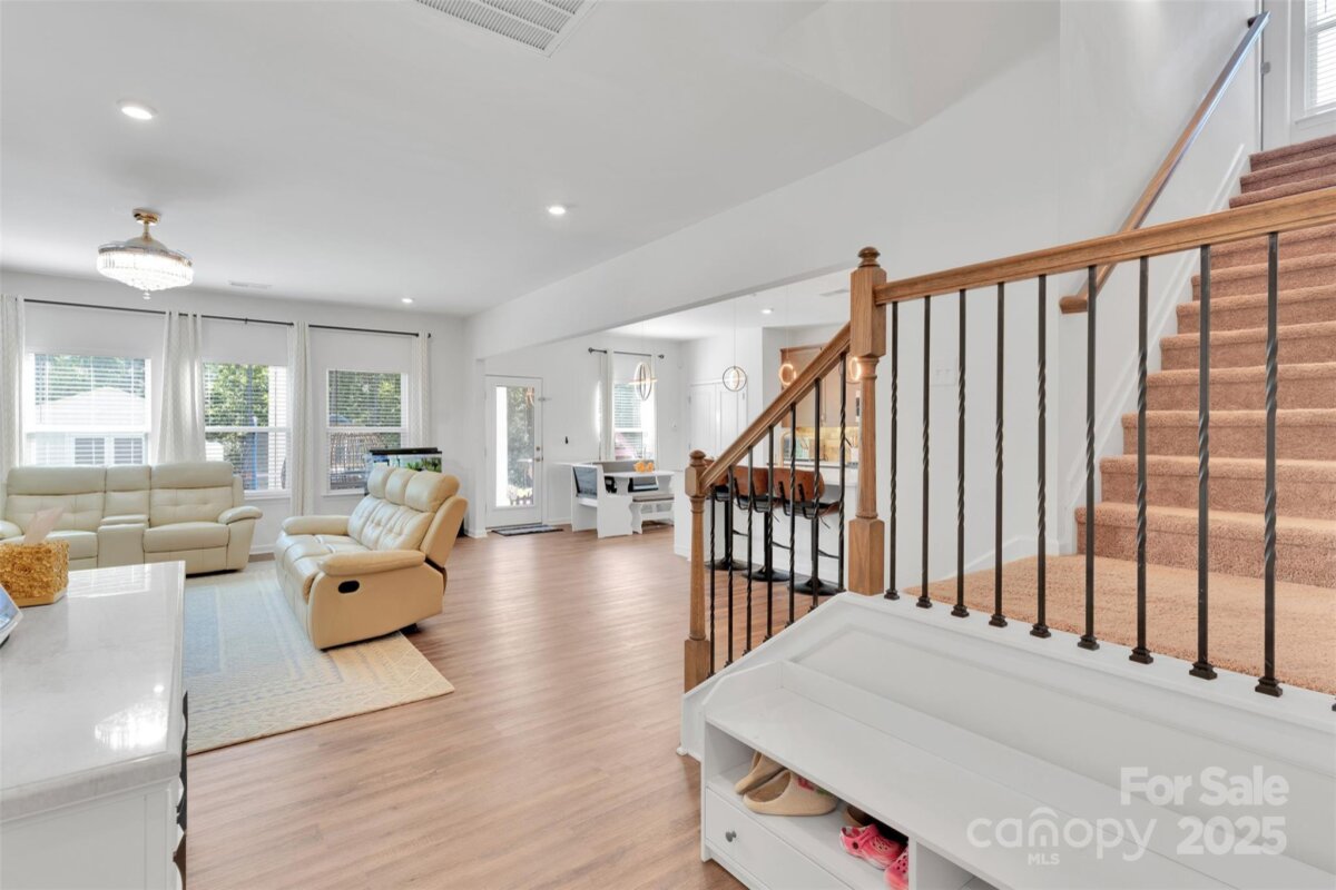 Welcome to this beautifully maintained two-story home in sought-after Trinity Crossing, offering the perfect blend of comfort, function, and style - with 4 bedrooms, 2.5 baths. The main level features durable LVP-hardwood floors, crown molding, and an inviting open-concept layout designed for both everyday living and entertaining. The chef’s kitchen is complete with quartz counter-tops, stone back splash, stainless steel appliances with gas range, expansive island, and a breakfast area. The kitchen flows into the breakfast nook with beautiful views of the backyard. The 2nd level primary luxurious suite is one of the largest in the area with a full bath and wrap around walk in custom closet. You Must See! Step outside to the covered porch and enjoy peaceful views of the wooded lot—perfect for relaxing or entertaining in privacy. Set on a .34-acre lot with extra space between neighbors, this home offers both privacy and convenience, located near Afton Village, dining, shopping, and I-85.